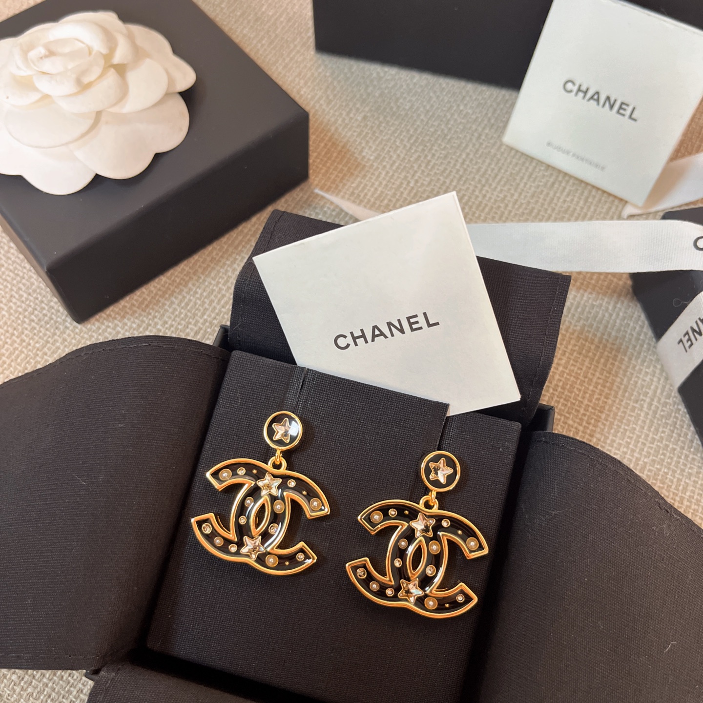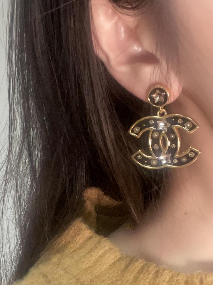黑金配色低調卻充滿氣場,帶點復古港風的味道,上耳立刻有「富家千金」的質感氛圍,既時髦又精緻,完全是那種越看越耐看的精品級飾品。