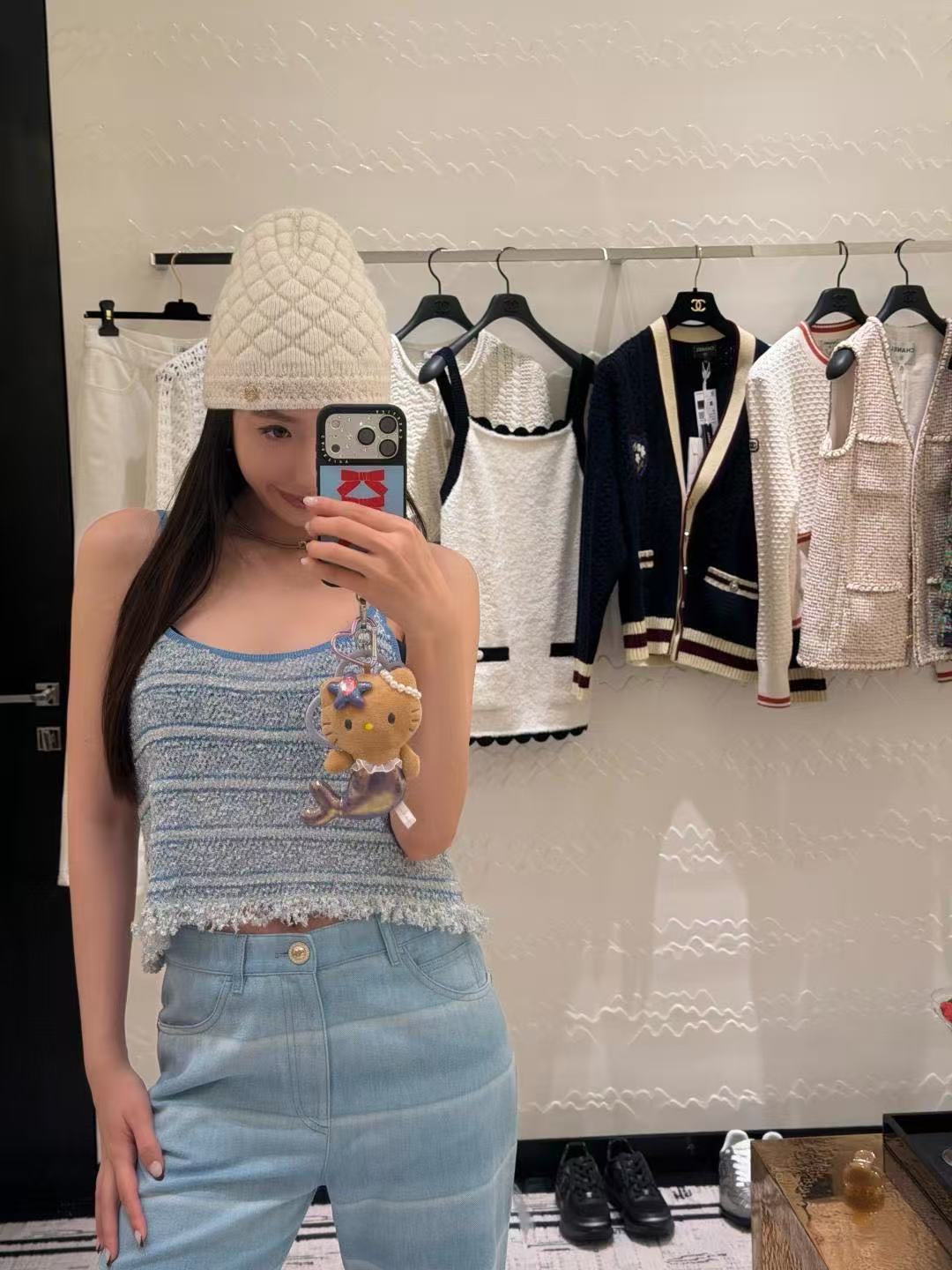 版型是寬鬆短款,肩帶稍微偏長,有些姐妹可能需要自行調整長度。下擺特別加入流蘇細節,增添精緻時髦感,無論搭配牛仔褲還是半裙,都能輕鬆穿出亮眼造型。
