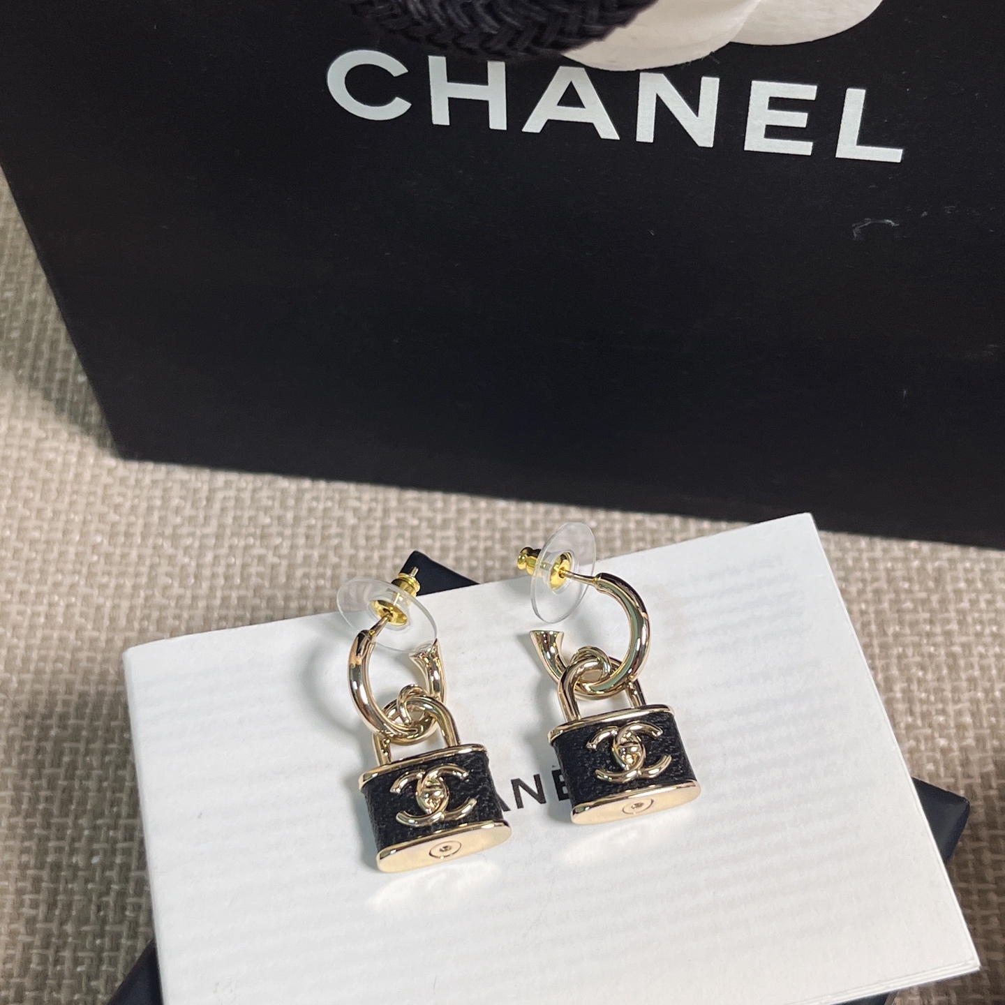 黑色小羊皮與鎖頭元素的結合,完美展現出一貫的高級質感與時髦氛圍。小巧尺寸不挑臉型,戴上耳間既可以甜美可人,也能酷帥有型。