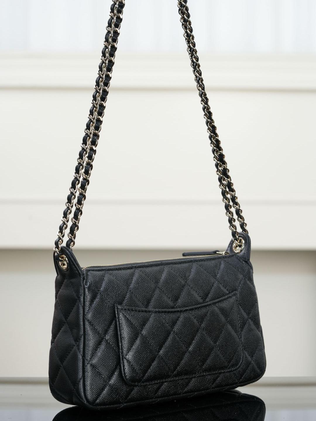 這款包包的鏈條可以自由調整長度,單肩、斜背、手提或腋下背法都能輕鬆切換,靈活百搭。