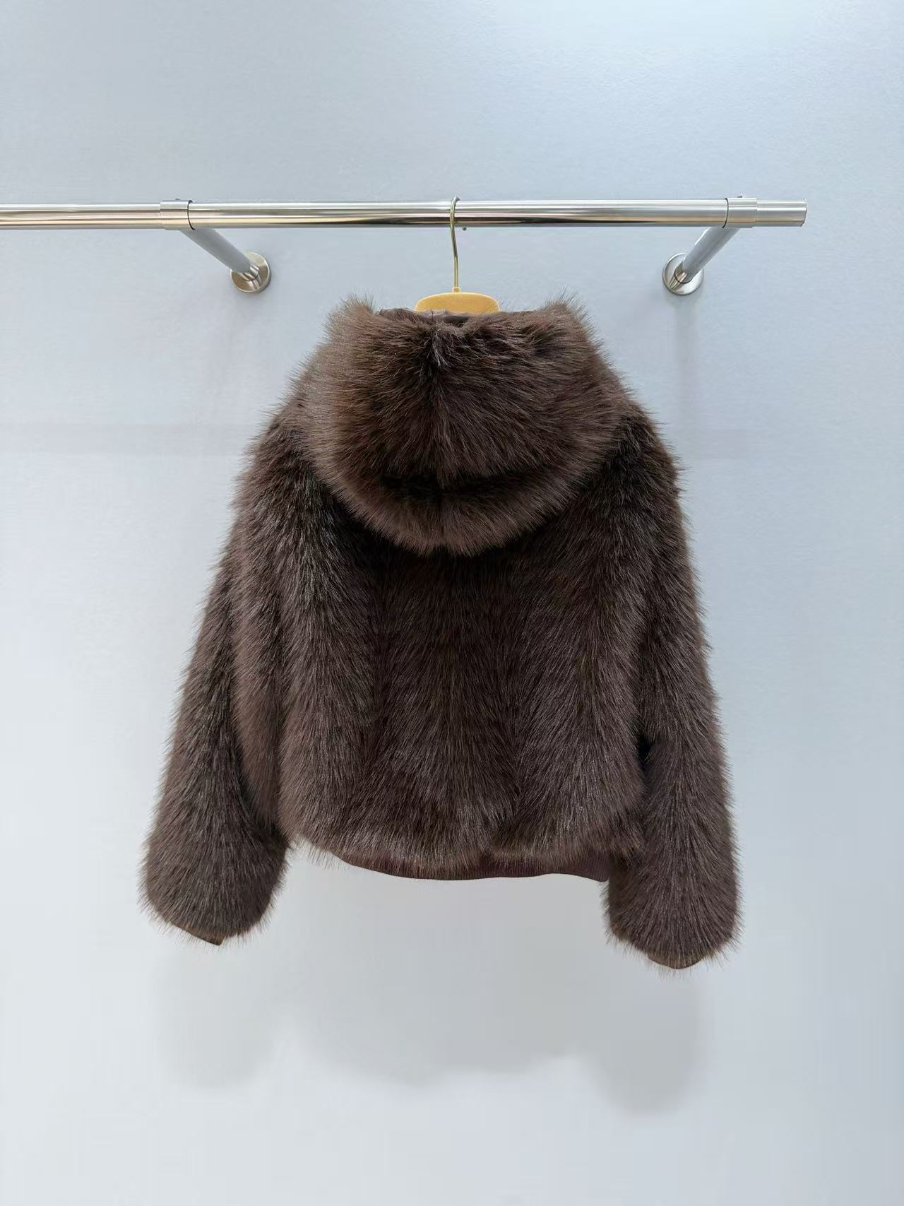 超級濃密又蓬鬆的焦糖棕色毛毛,連帽子、門襟、袖口全部都是毛茸茸設計,