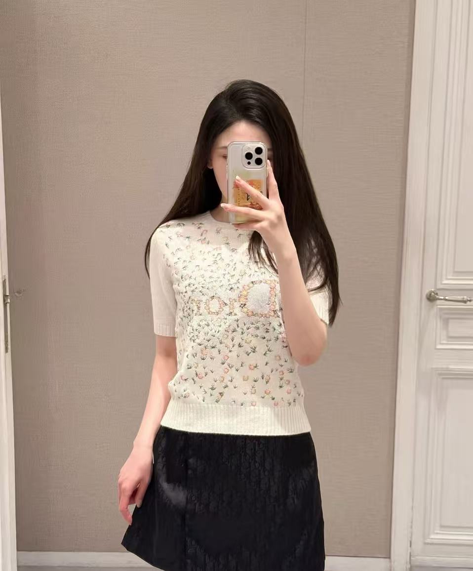 2026早春 D家 滿幅花卉刺繡羊絨短袖