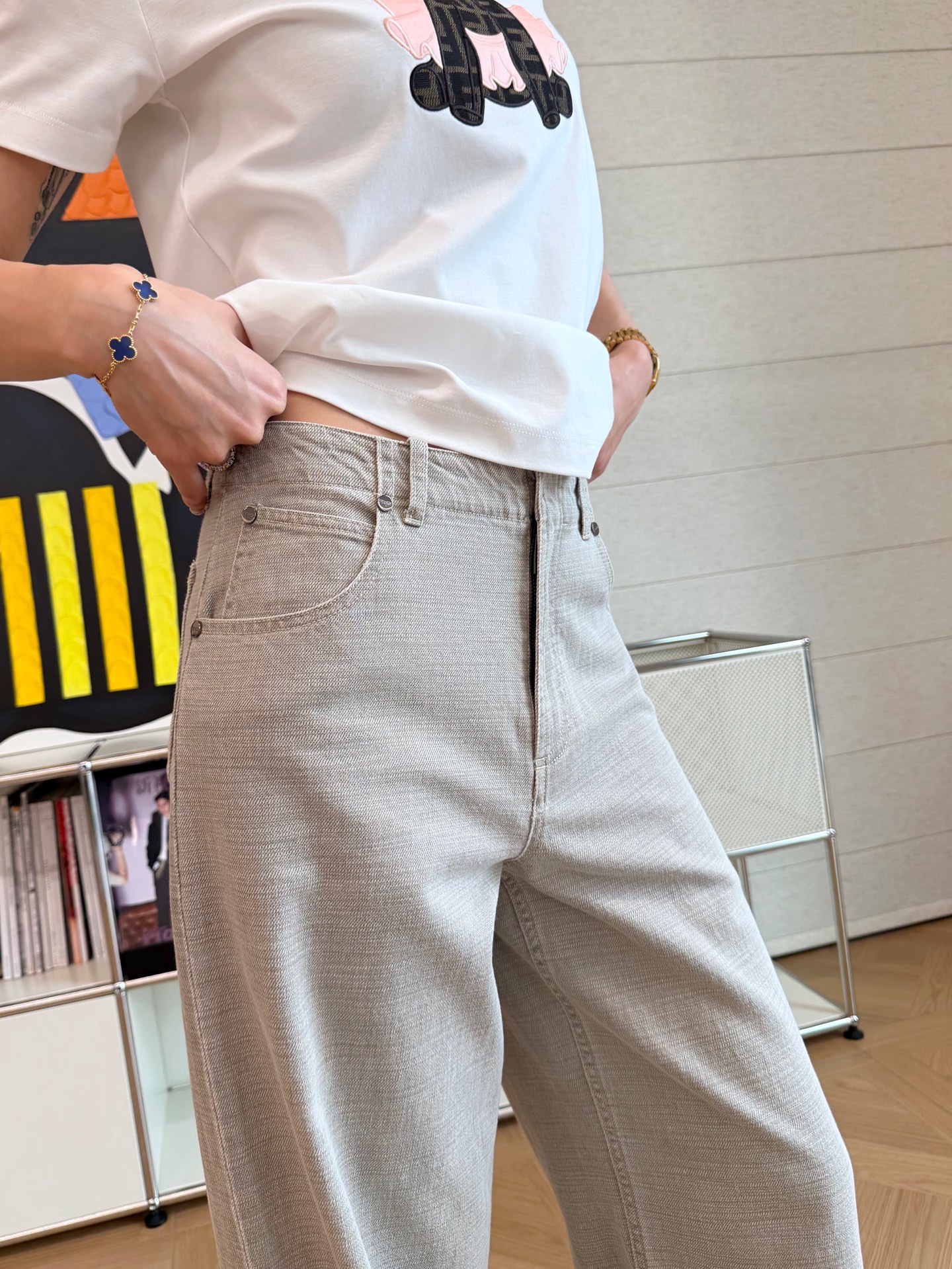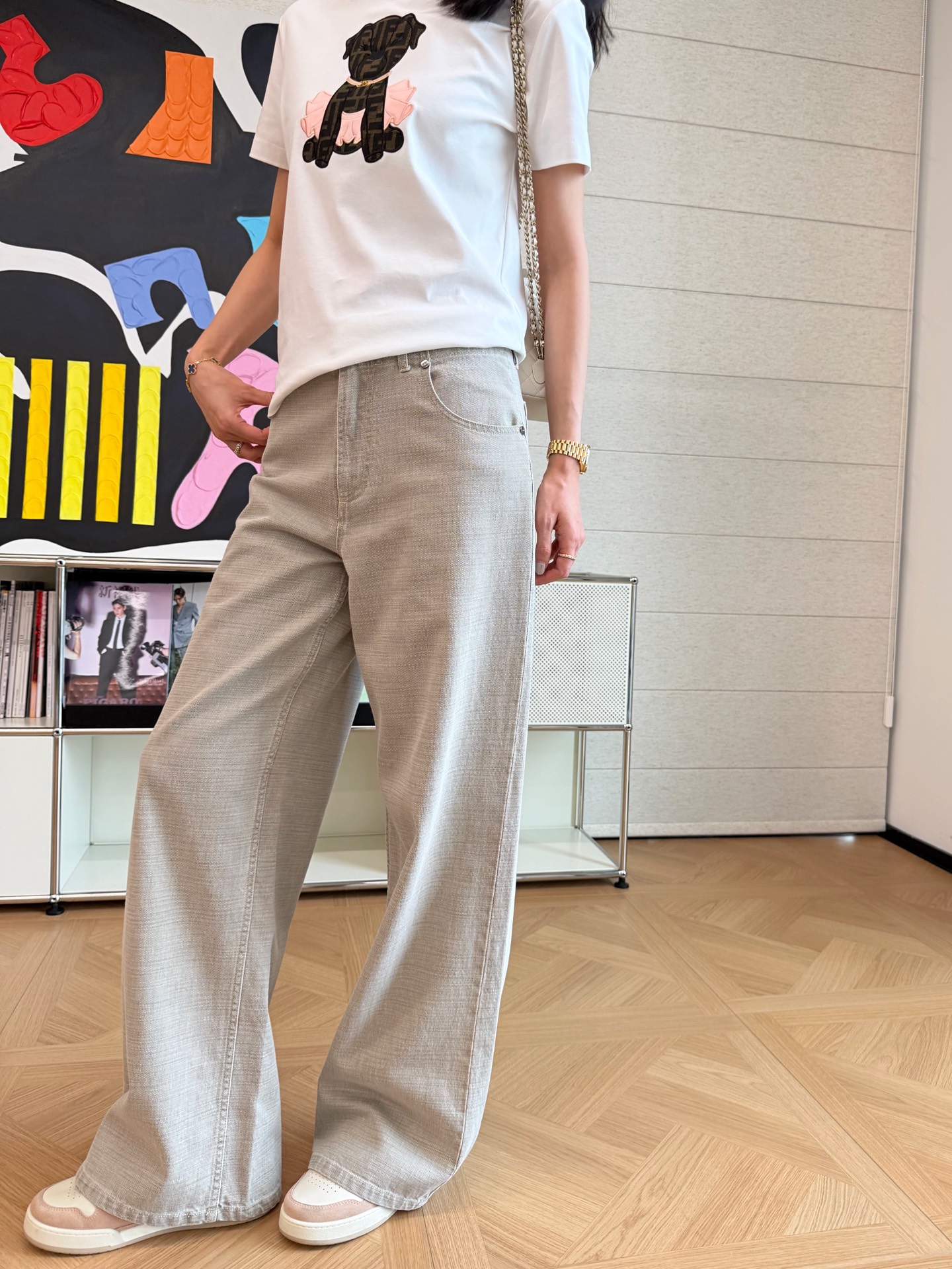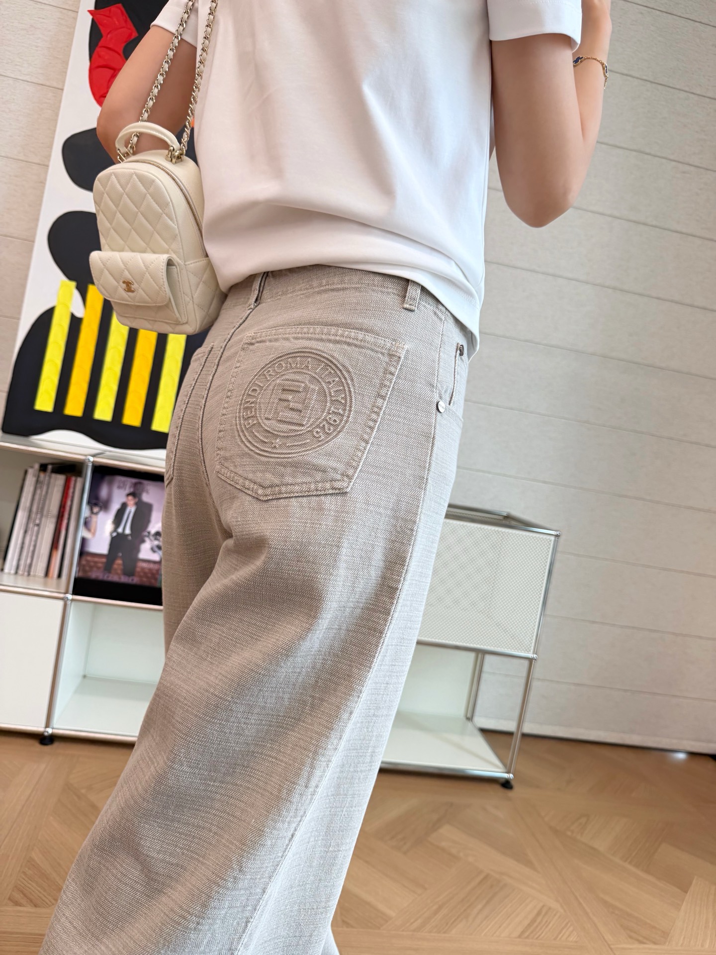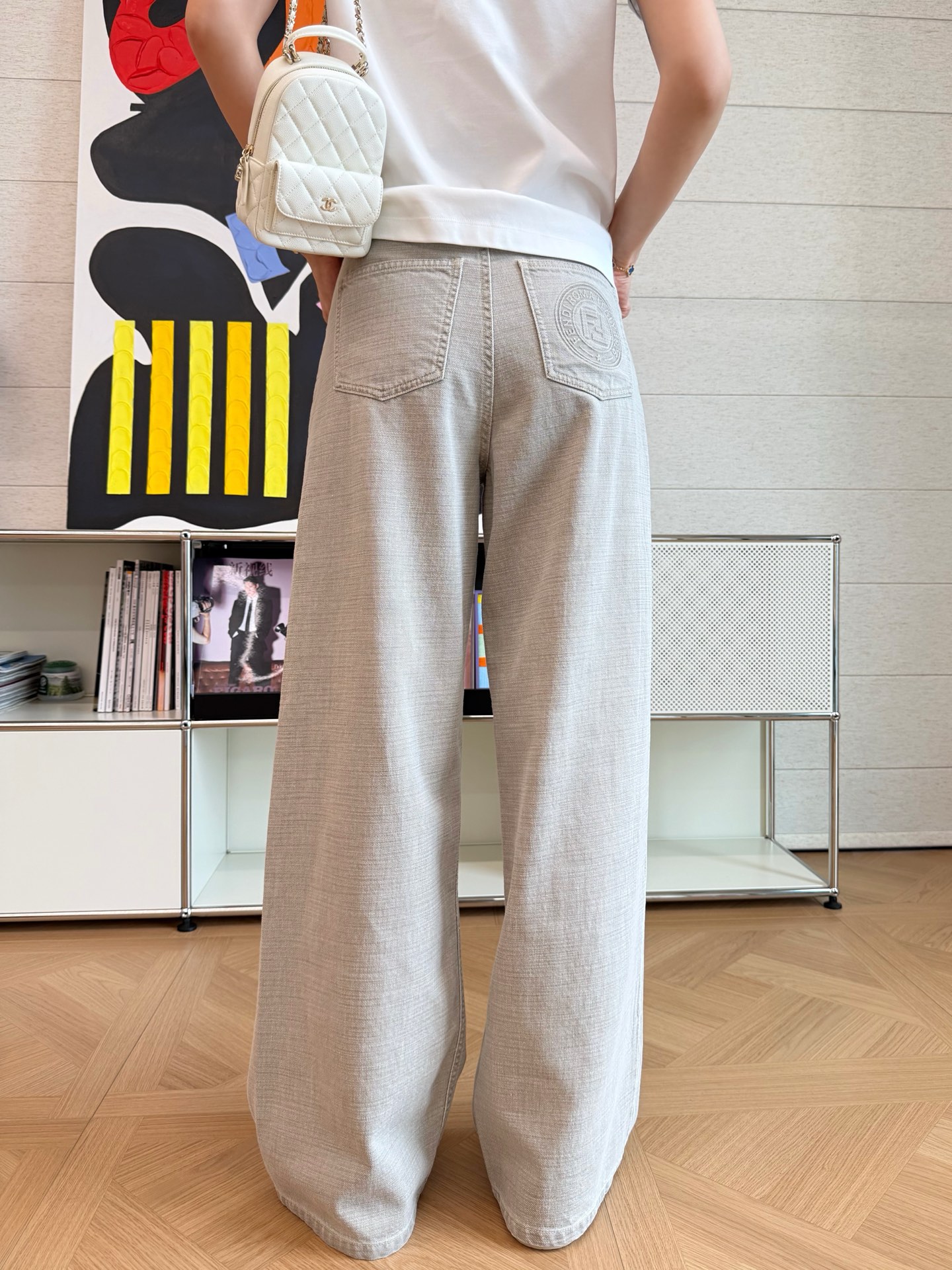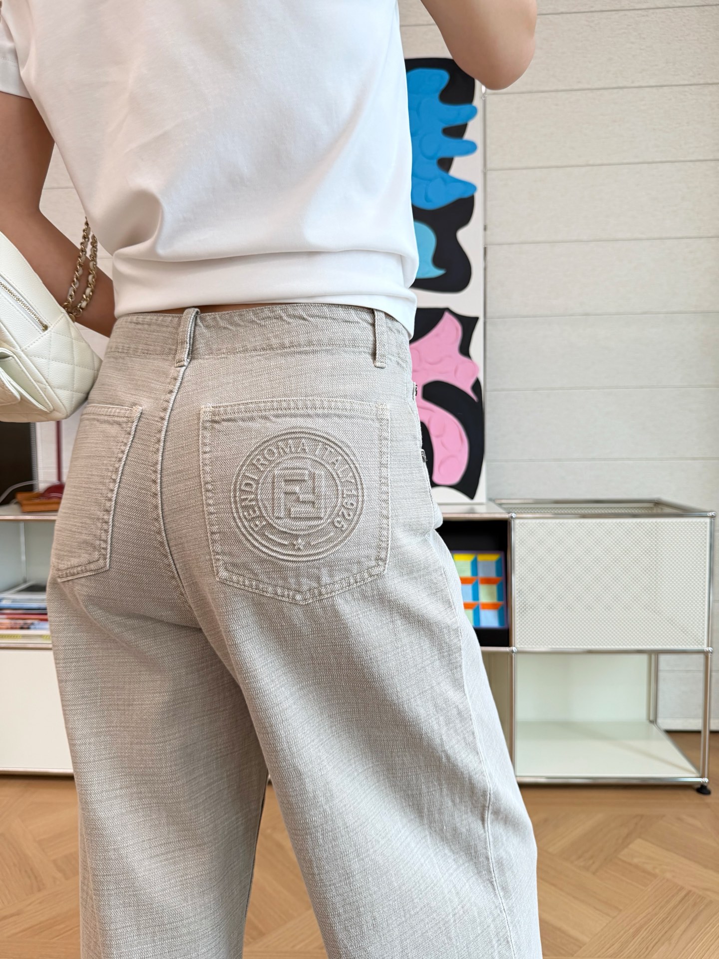 2025秋冬新品 F家 重工裸灰色牛仔褲