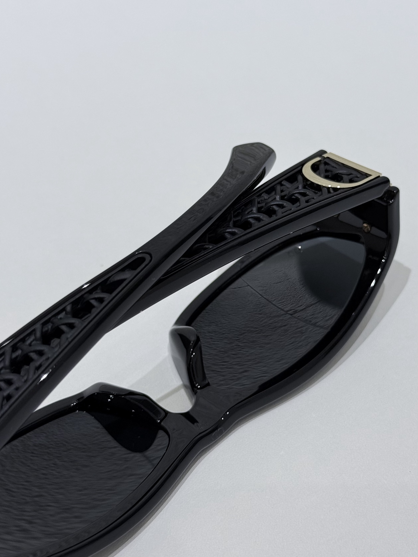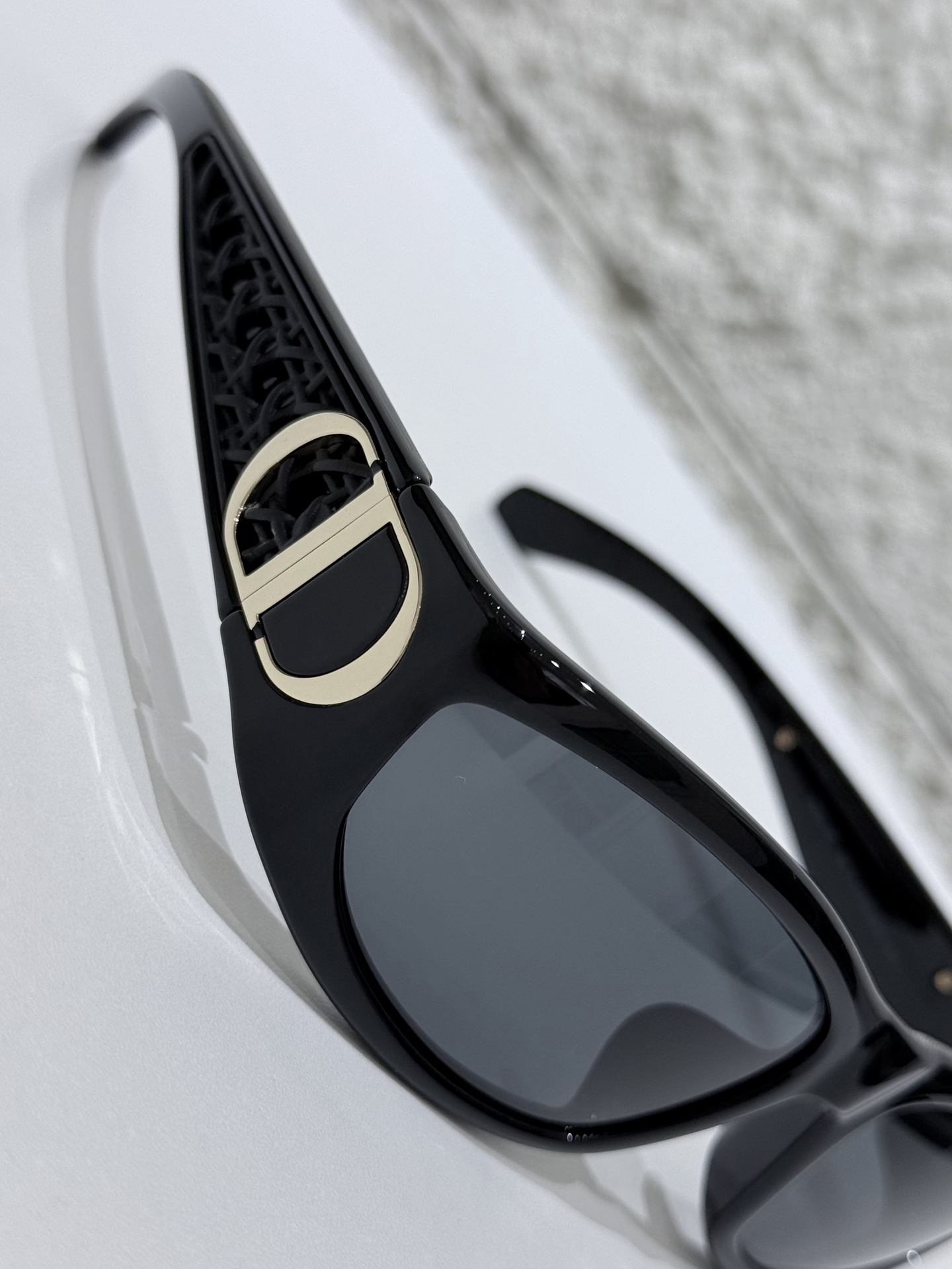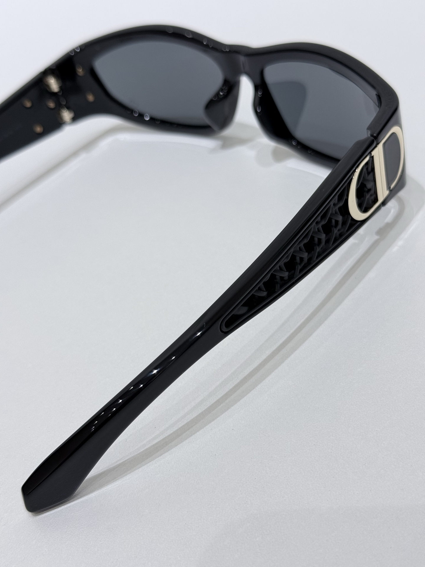 鏡臂:金屬精密鍛造,結合經典 Dior 標誌與扭索雕紋,細節層次豐富,金屬與醋酸纖維的材質對比,讓整體更顯高級。