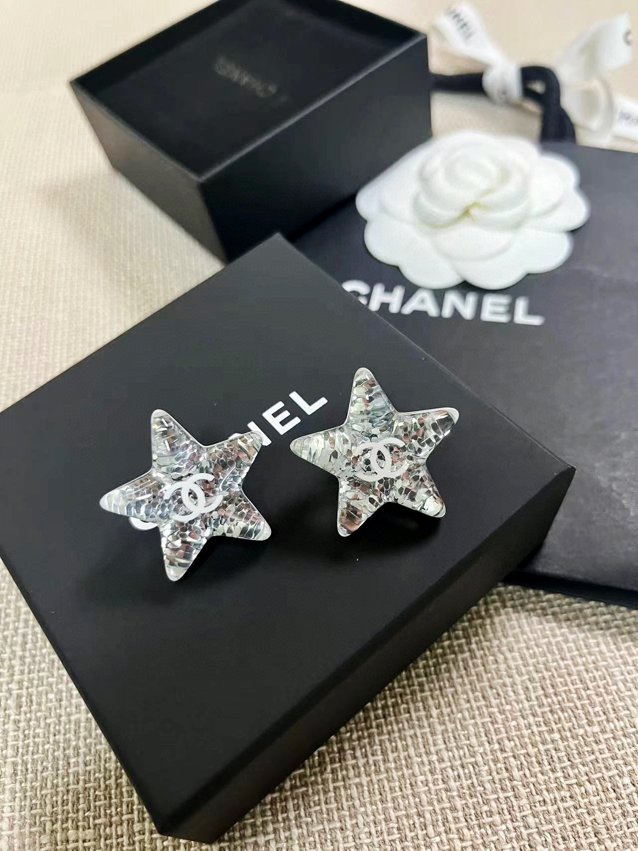 2025早春新品 C家星星亮片壓克力耳環