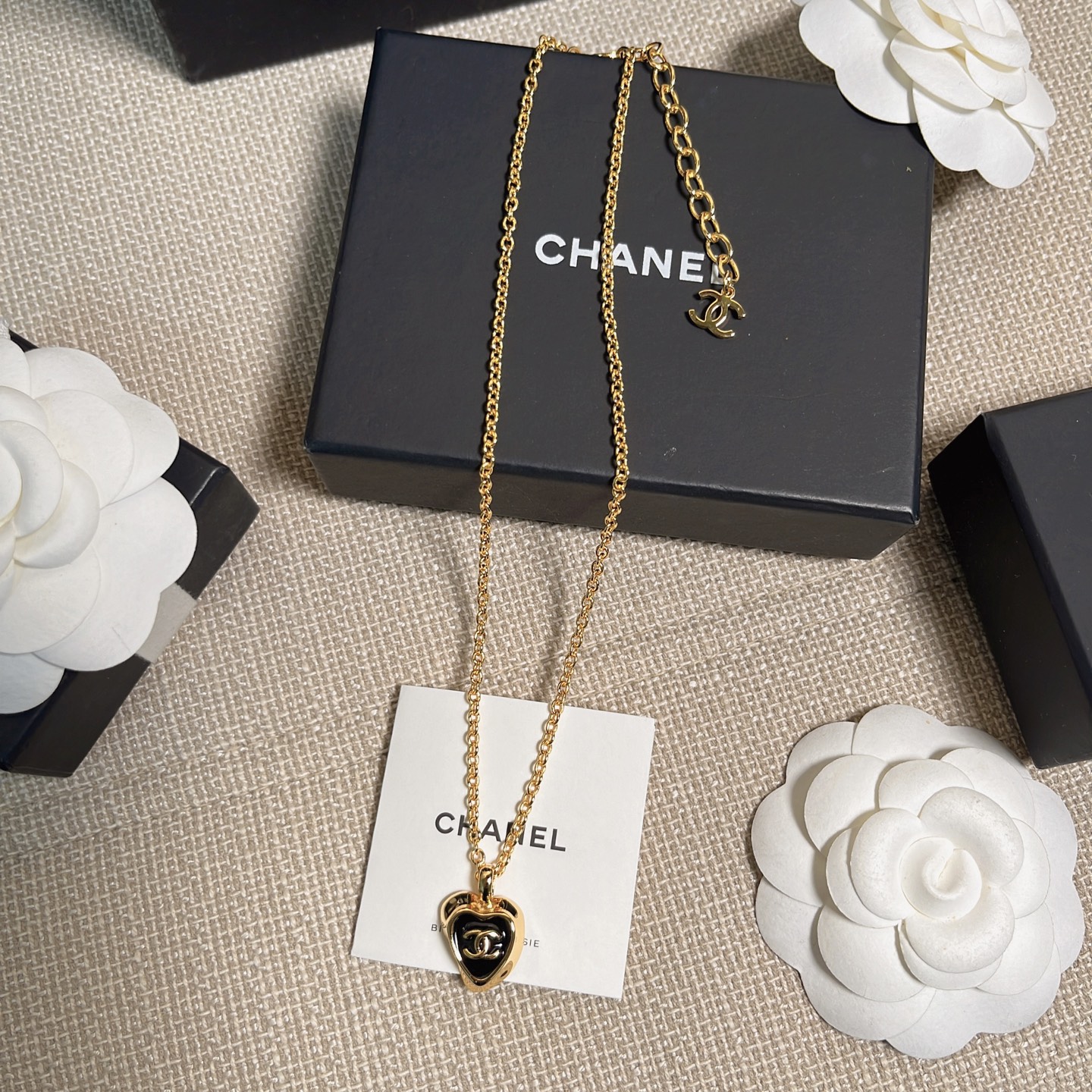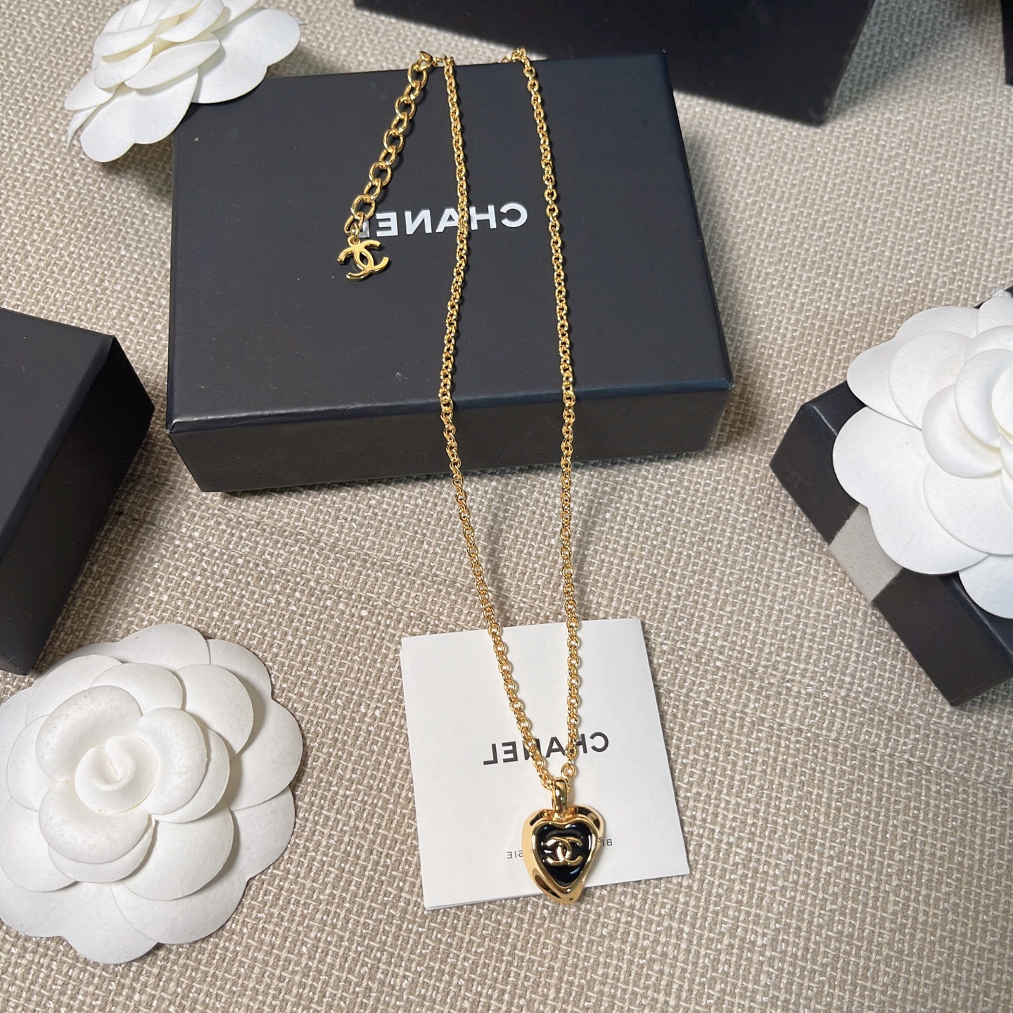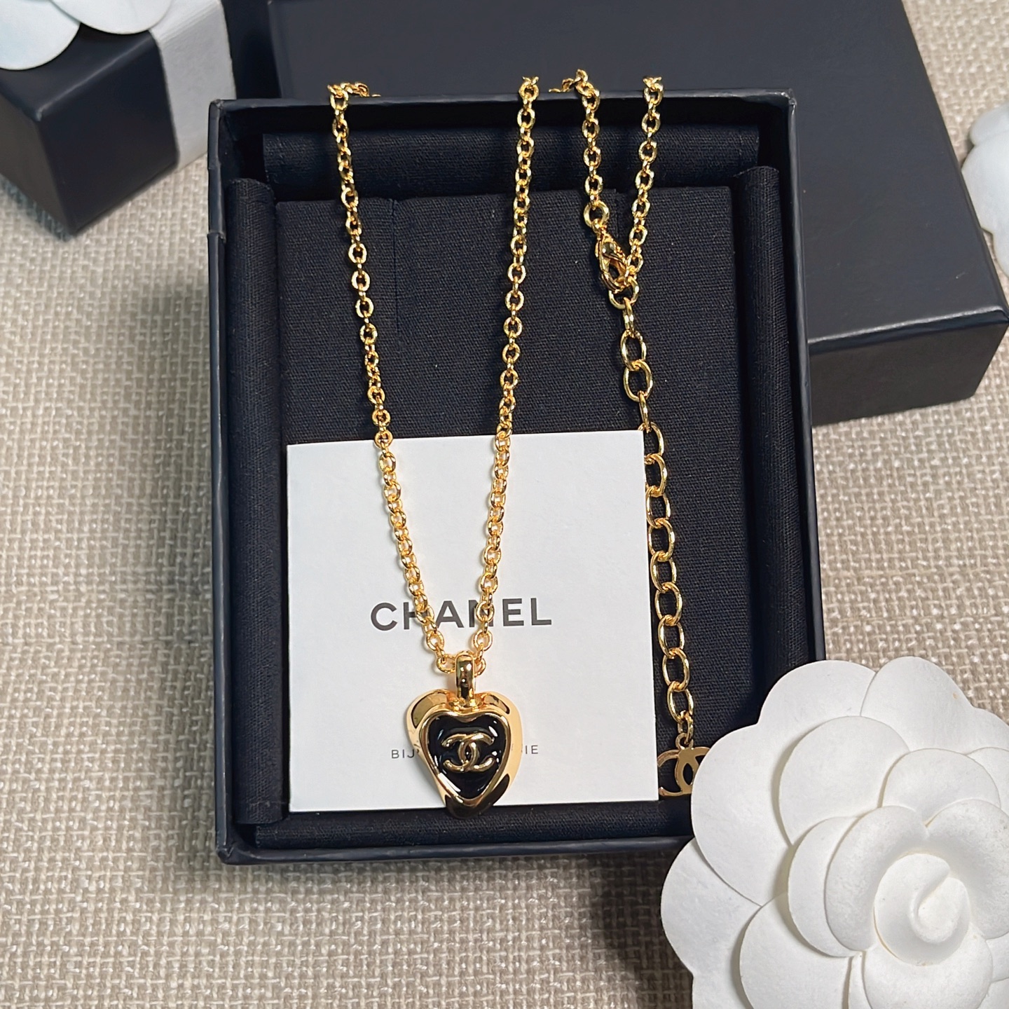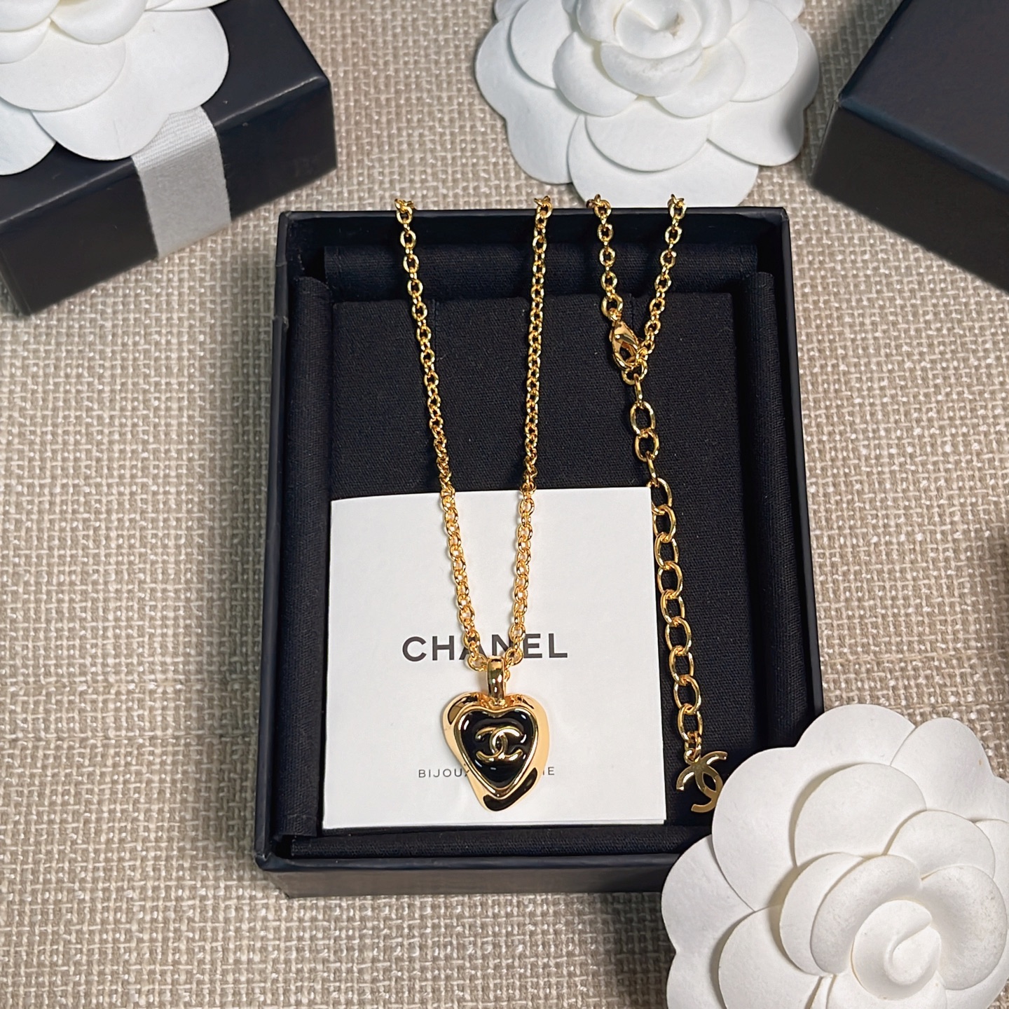 經典黑金配色搭配愛心造型,低調又優雅,既有份量感又不失女人味。無論是搭配簡約白T,還是優雅襯衫,都能讓整體造型瞬間提升一個層次,是一條既能日常配戴、又能出席正式場合的百搭首飾。