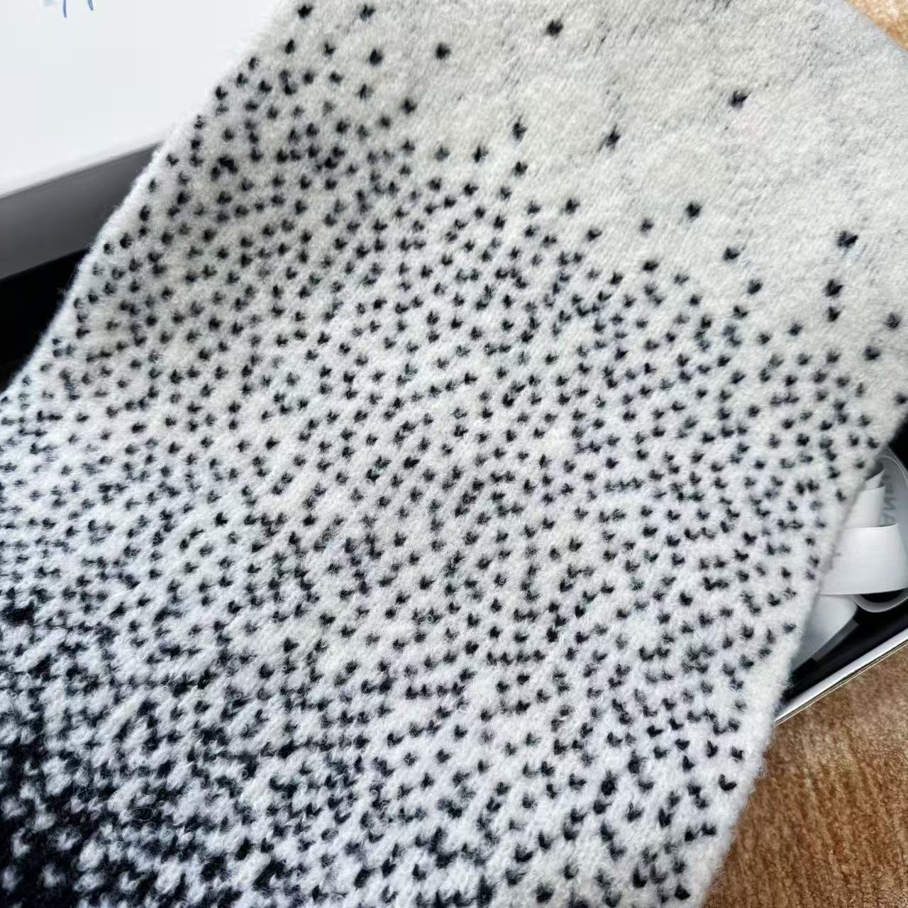 這條根本是「把雪山貴婦直接圍在脖子上」的夢幻單品,遠看就是黑白經典配色,近看才發現整條是立體7針拔花+凹凸格紋+漸變雙C若隱若現,隨便一圍整個氣場從台北變阿爾卑斯山頂,貴到讓路人自動幫你讓路~