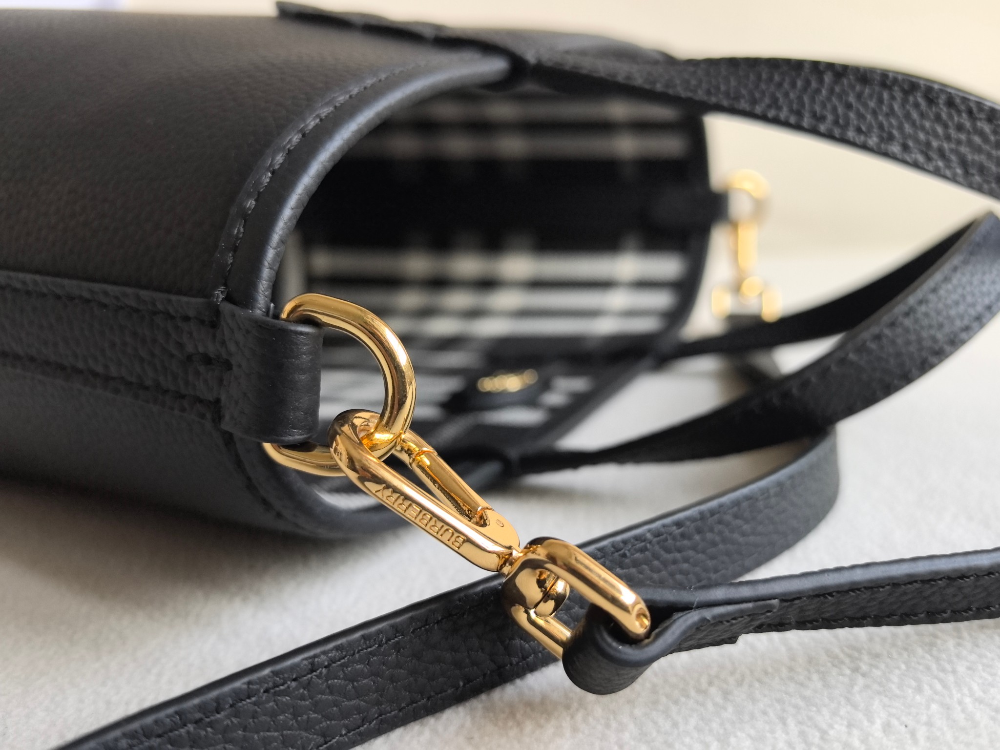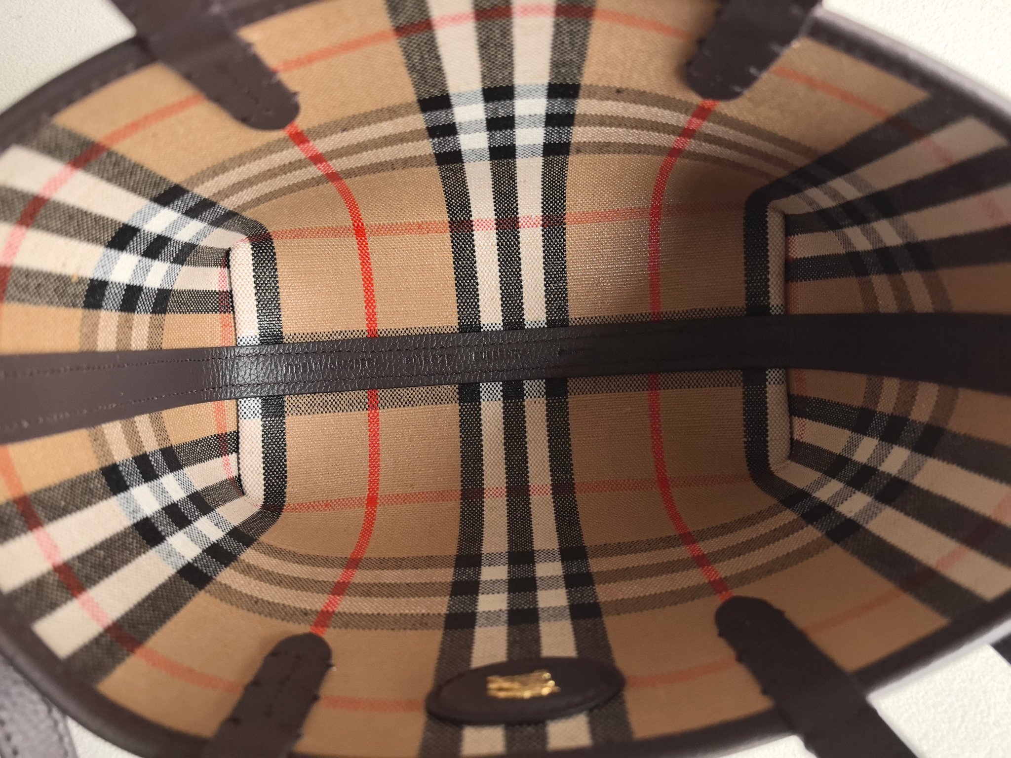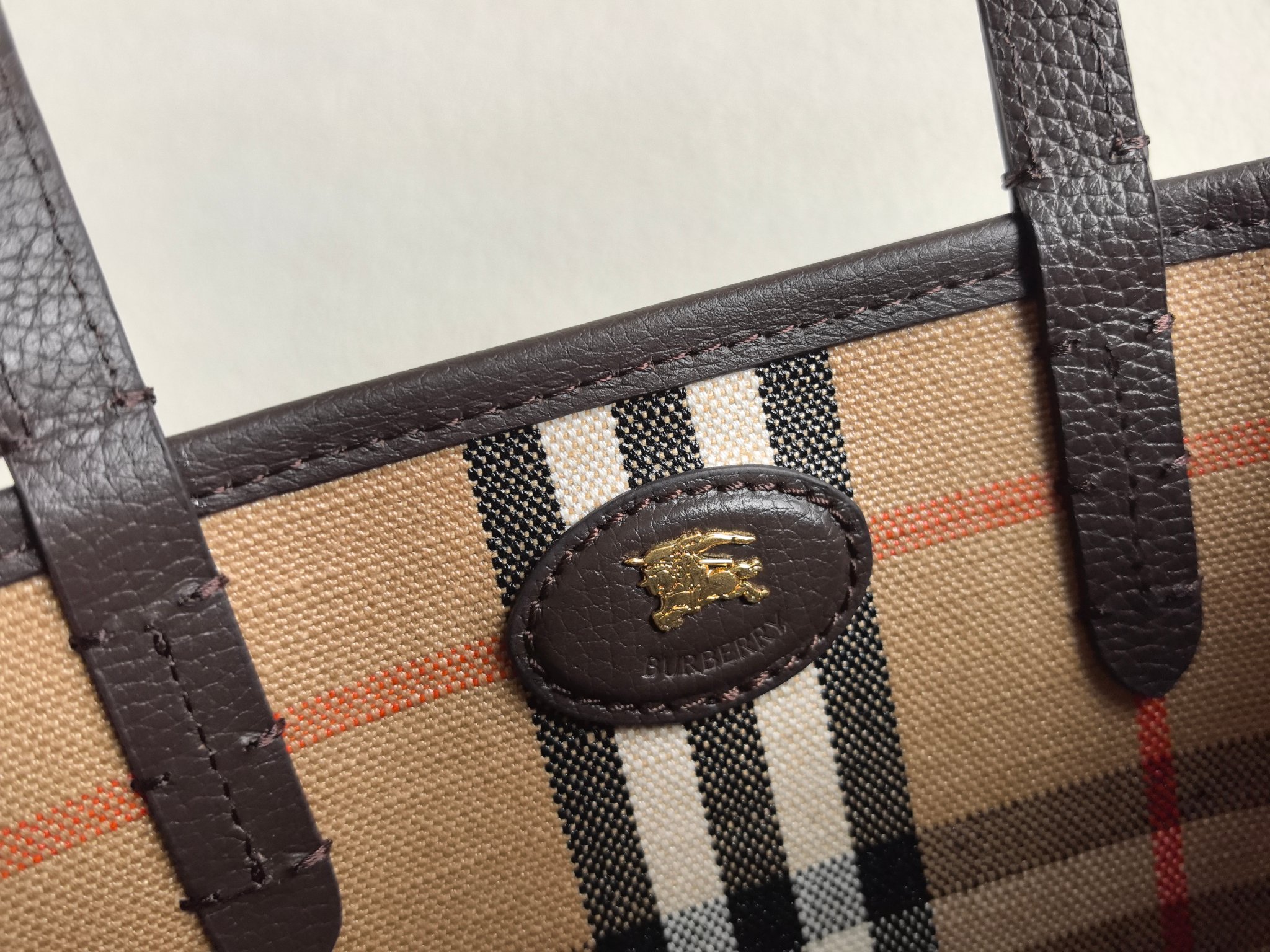 最加分的是它的雙面設計,一面是質感滿滿的粒紋皮革,另一面則是經典格紋拼接,等於一顆包直接擁有兩種風格,隨心情或穿搭切換,實用度真的很高。