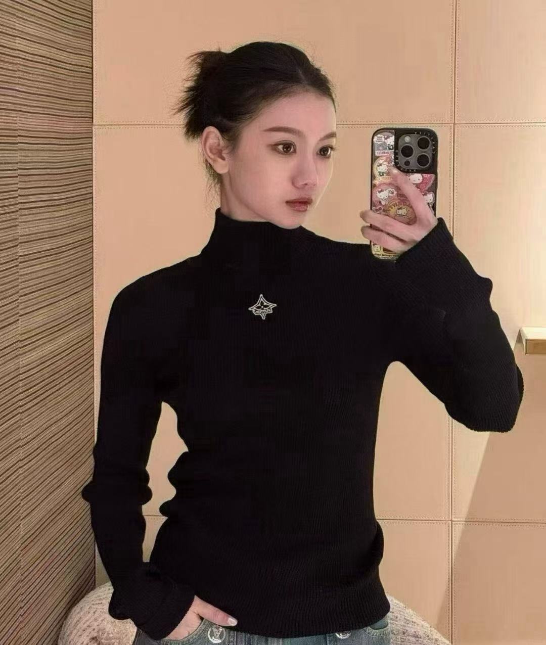 胸前低調星形刺繡,修身羅紋針織+貼合脖頸的高領版型,自帶細膩彈性,貼膚不扎還能勾勒身材曲線。