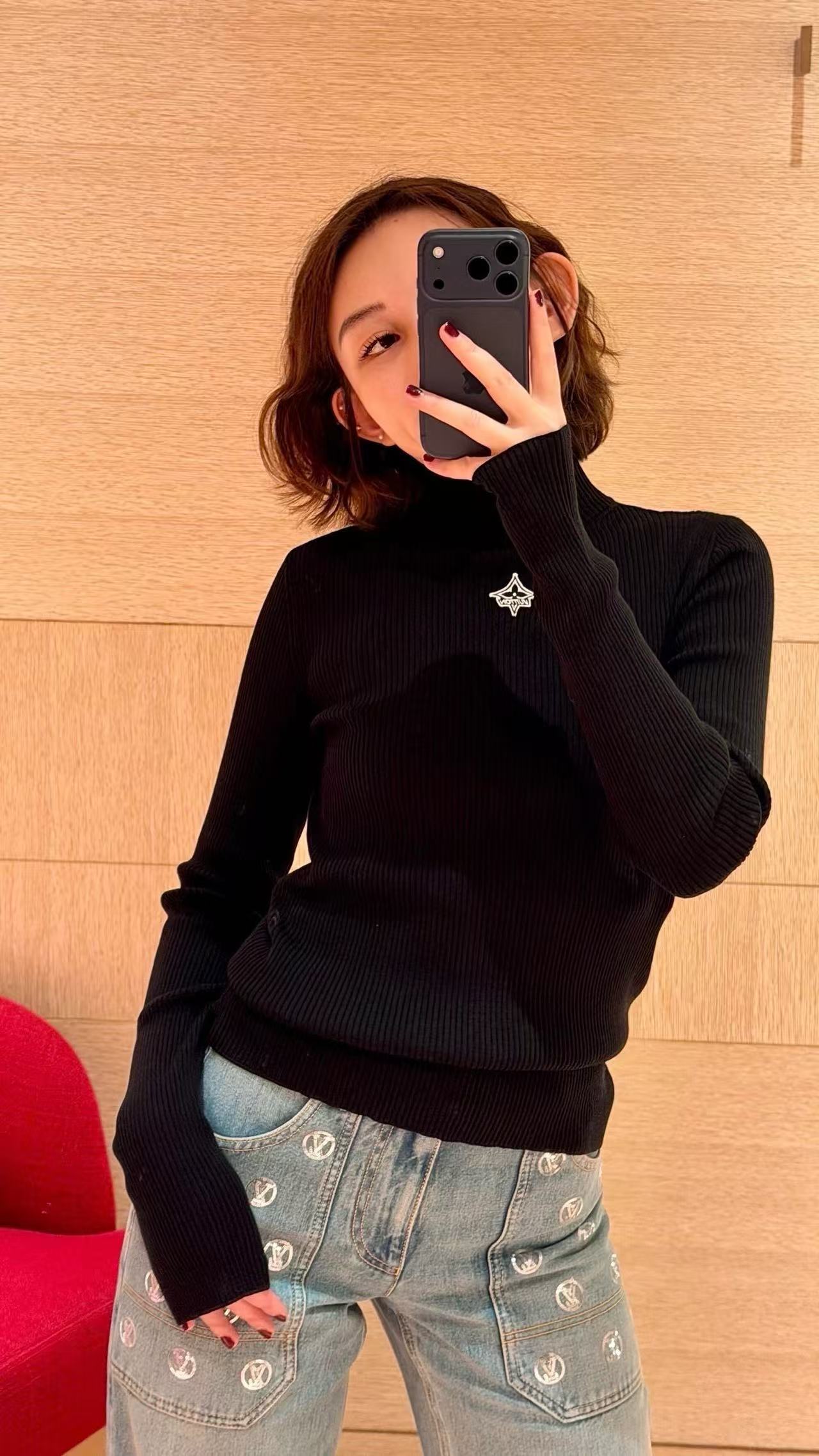 2025早秋 L家 標誌刺繡黑高領針織衫