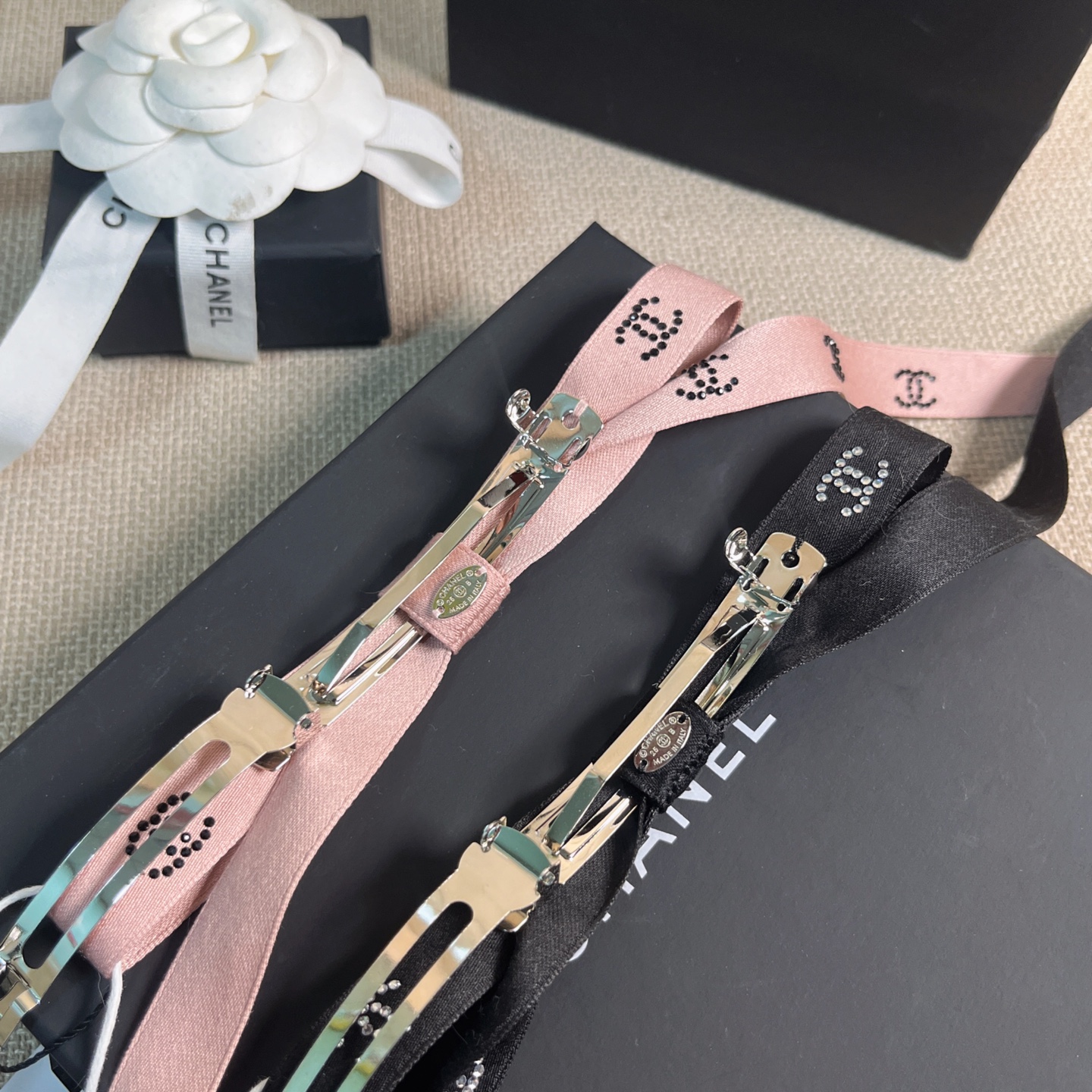 2025秋冬新品 C家 絲帶多鑽C蝴蝶結髮夾
