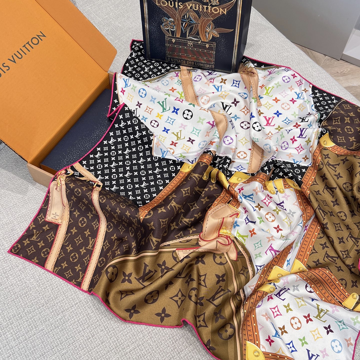 當標誌性的 Monogram 老花圖案,遇上日本藝術家村上隆充滿童趣與鮮豔色彩的創作風格,誕生出的不只是一條絲巾,更像是一件可以穿戴的藝術作品。