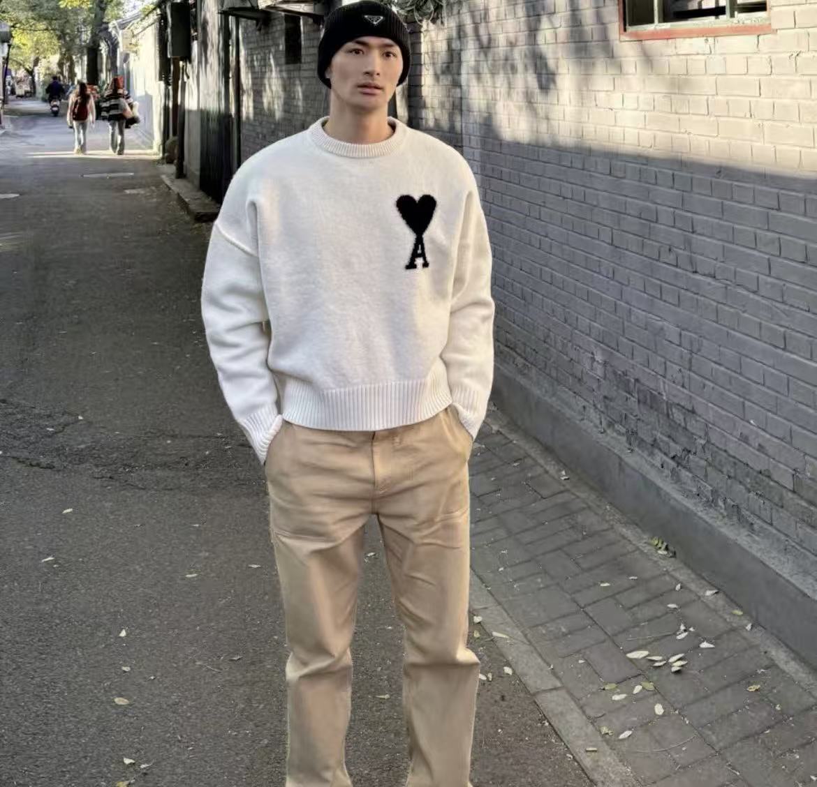 oversize寬鬆版型+肩部外翻拼接,胸前編織愛心黑色A鏈刺繡,從居家懶洋到街頭約會,一件搞定男女同款的溫暖時髦!快來一起探索這件毛衣的無限魅力吧!