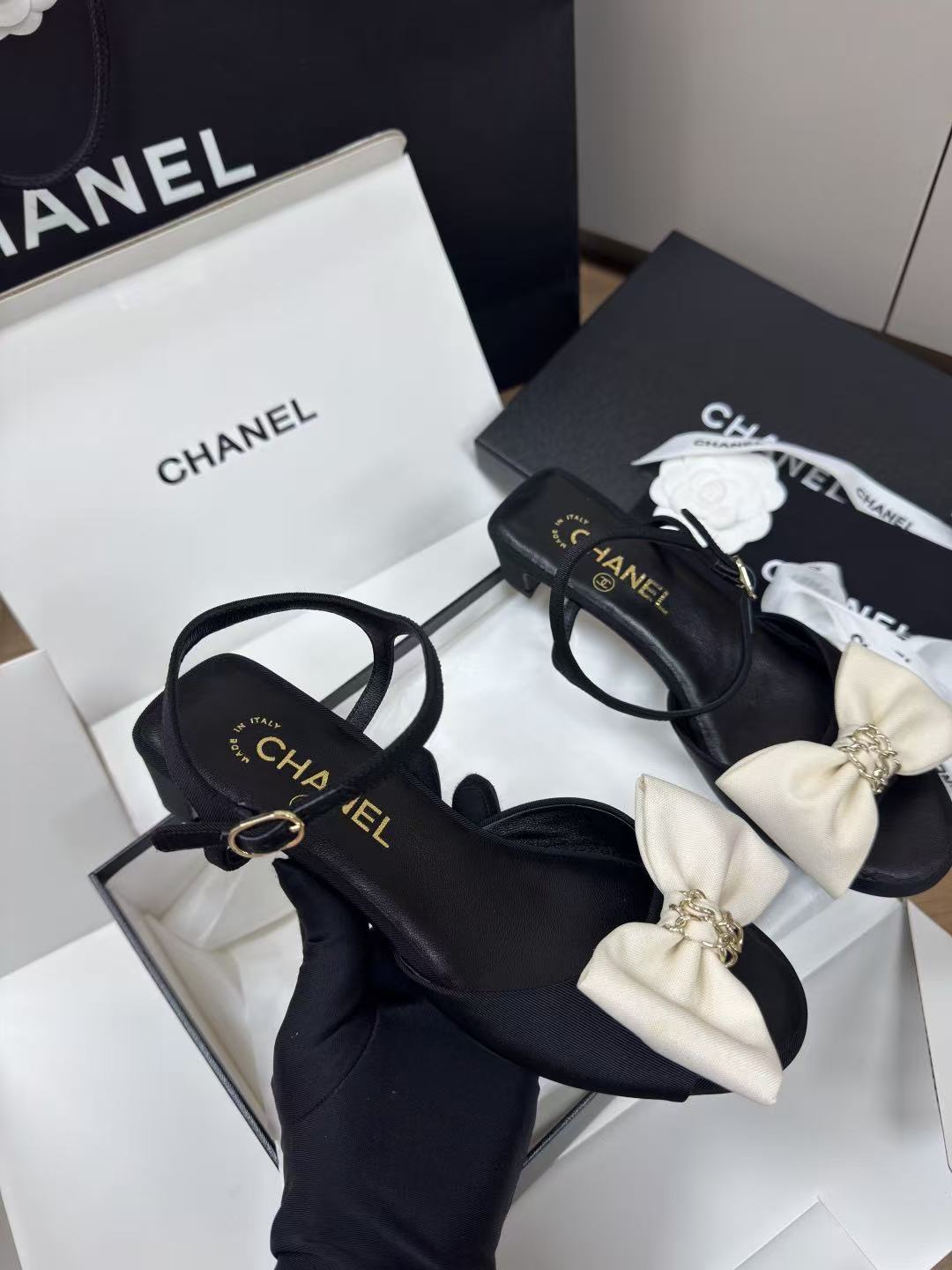 蝴蝶結不僅是裝飾,更是跨越時代的女性化符碼。這次分享的 2025 早春(25K)黑色圓頭低跟涼鞋,完美定義了何謂「精品級的甜美」。