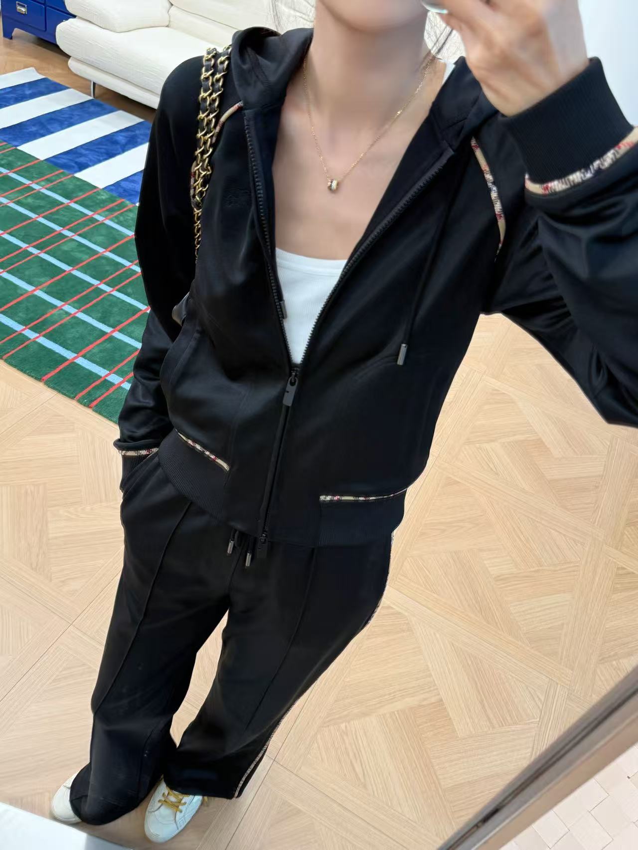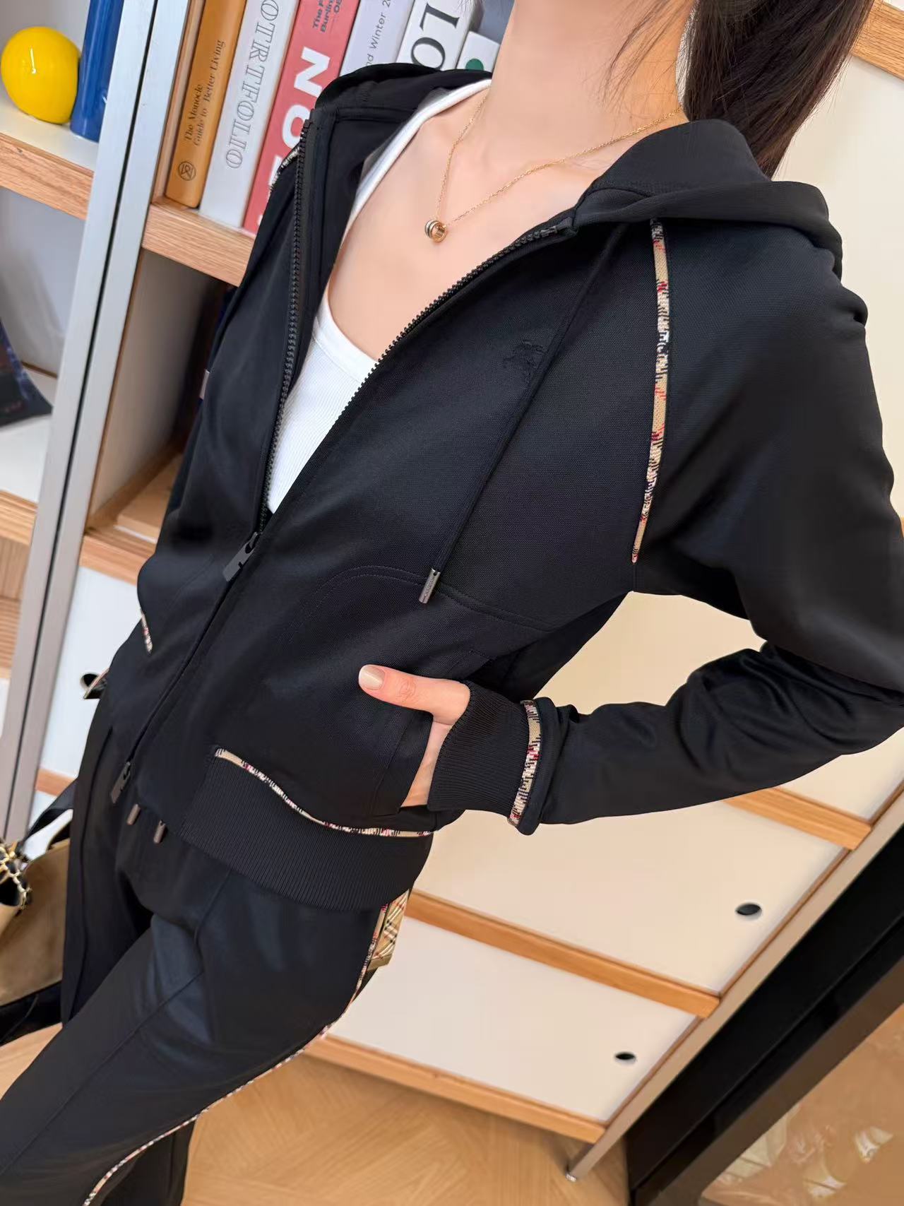 2025秋冬 BBR家 格紋滾邊拉鍊外套