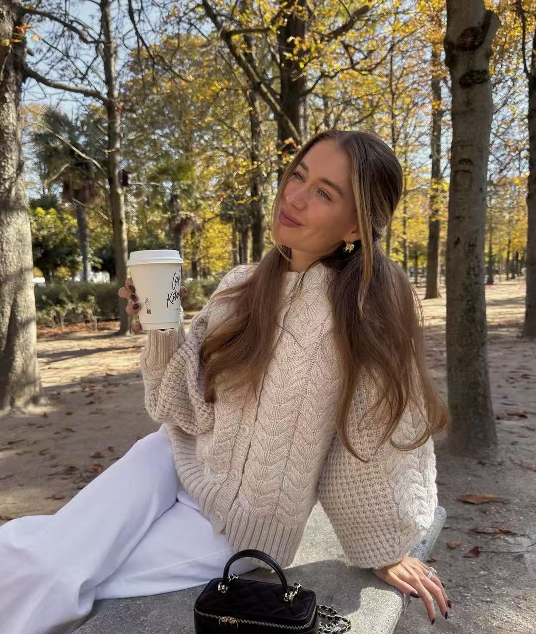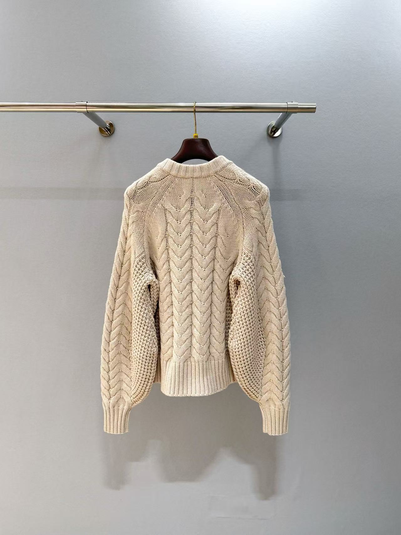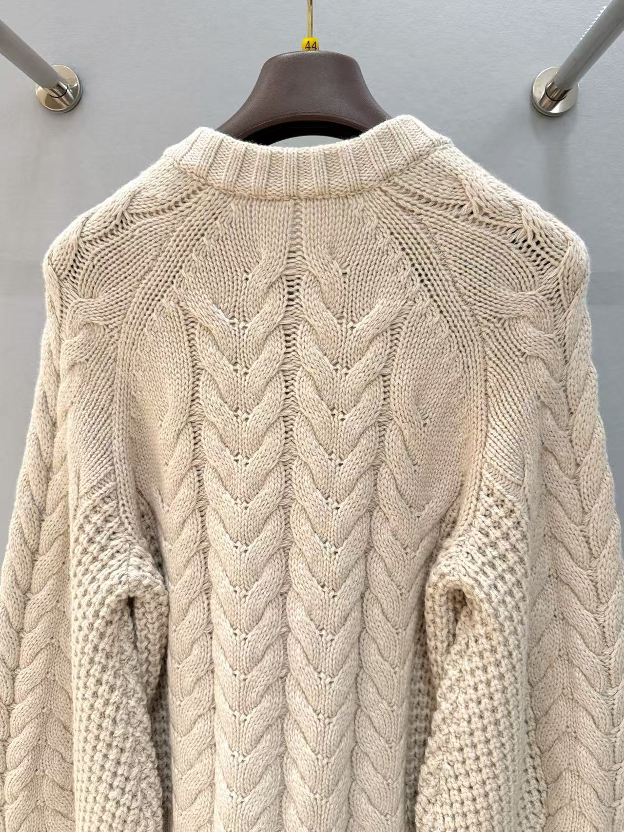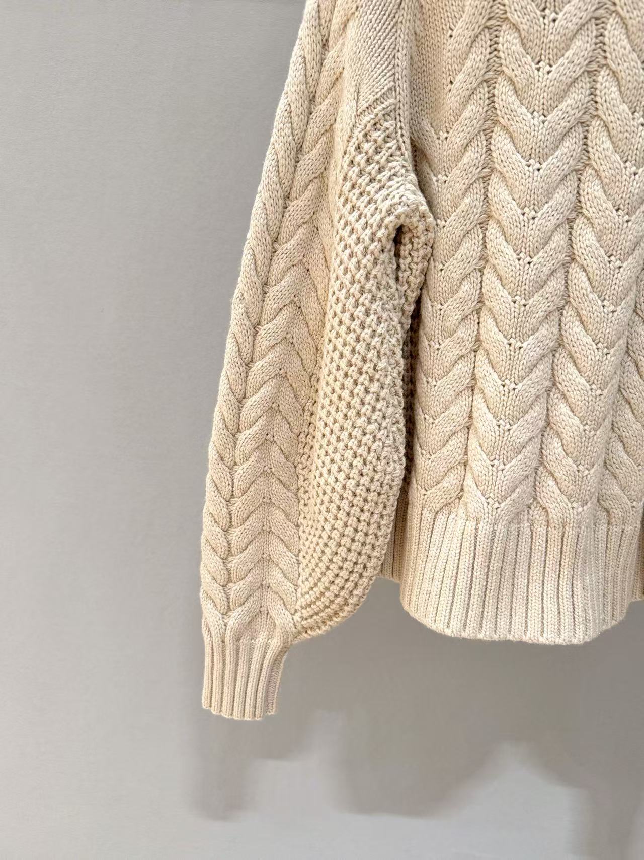麻花織紋立體精緻,弧形袖口增添隨性優雅;版型寬鬆不緊繃,輕鬆營造休閒氛圍。