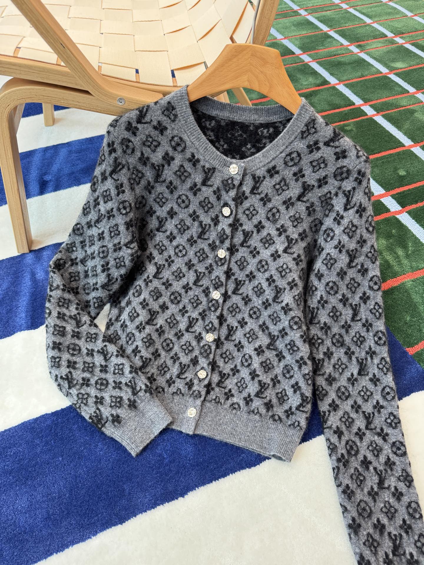 2025秋冬新品 L家 老花馬海毛針織衫