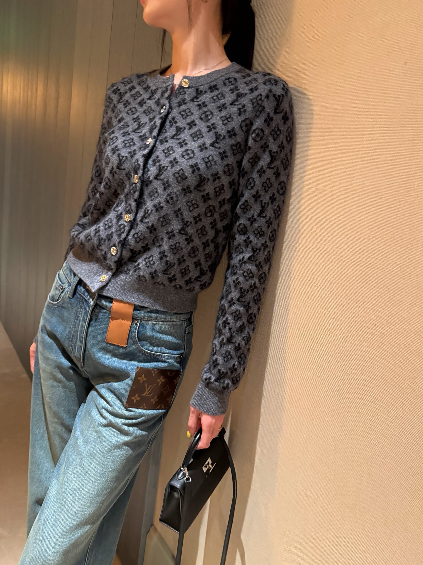 整體設計低調中帶點復古韻味,老花圖案結合細緻的編織紋理,讓整件針織衫不只保暖,更充滿質感。這種「不費力的時髦感」,真的會讓人越看越喜歡。