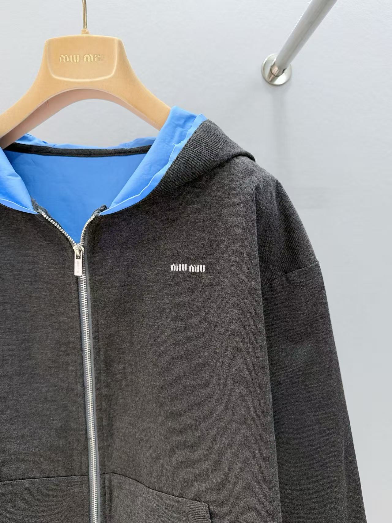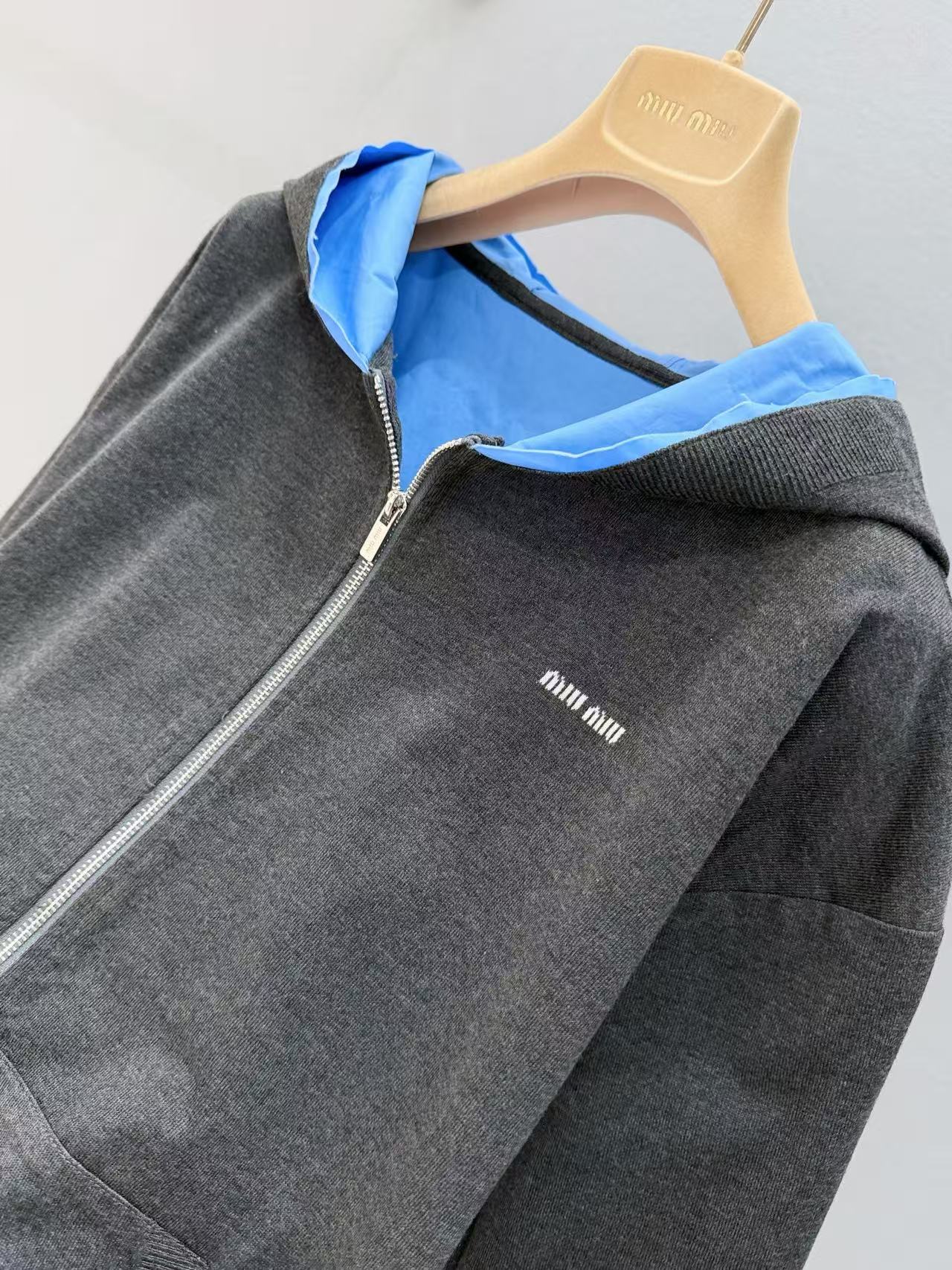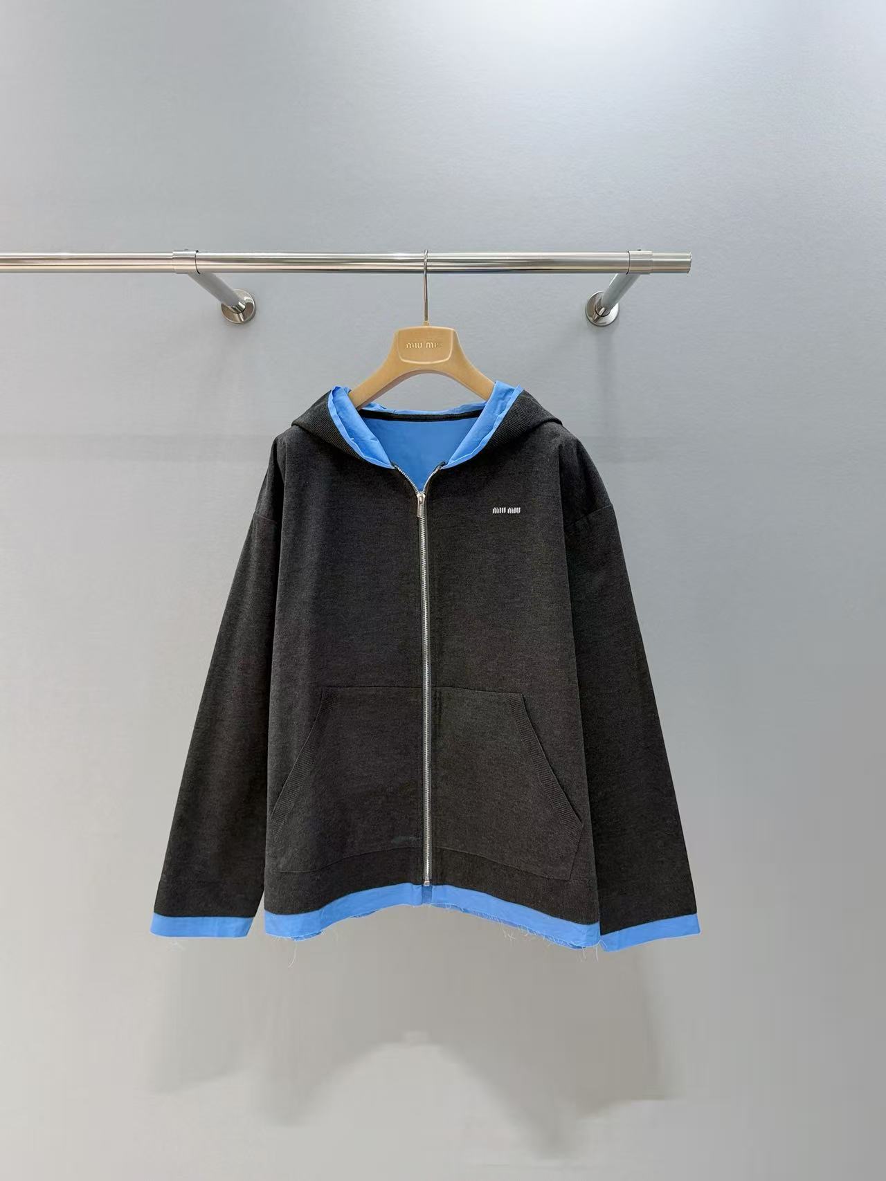 2025早秋 Miu家 藍灰拼接連帽拉鍊外套