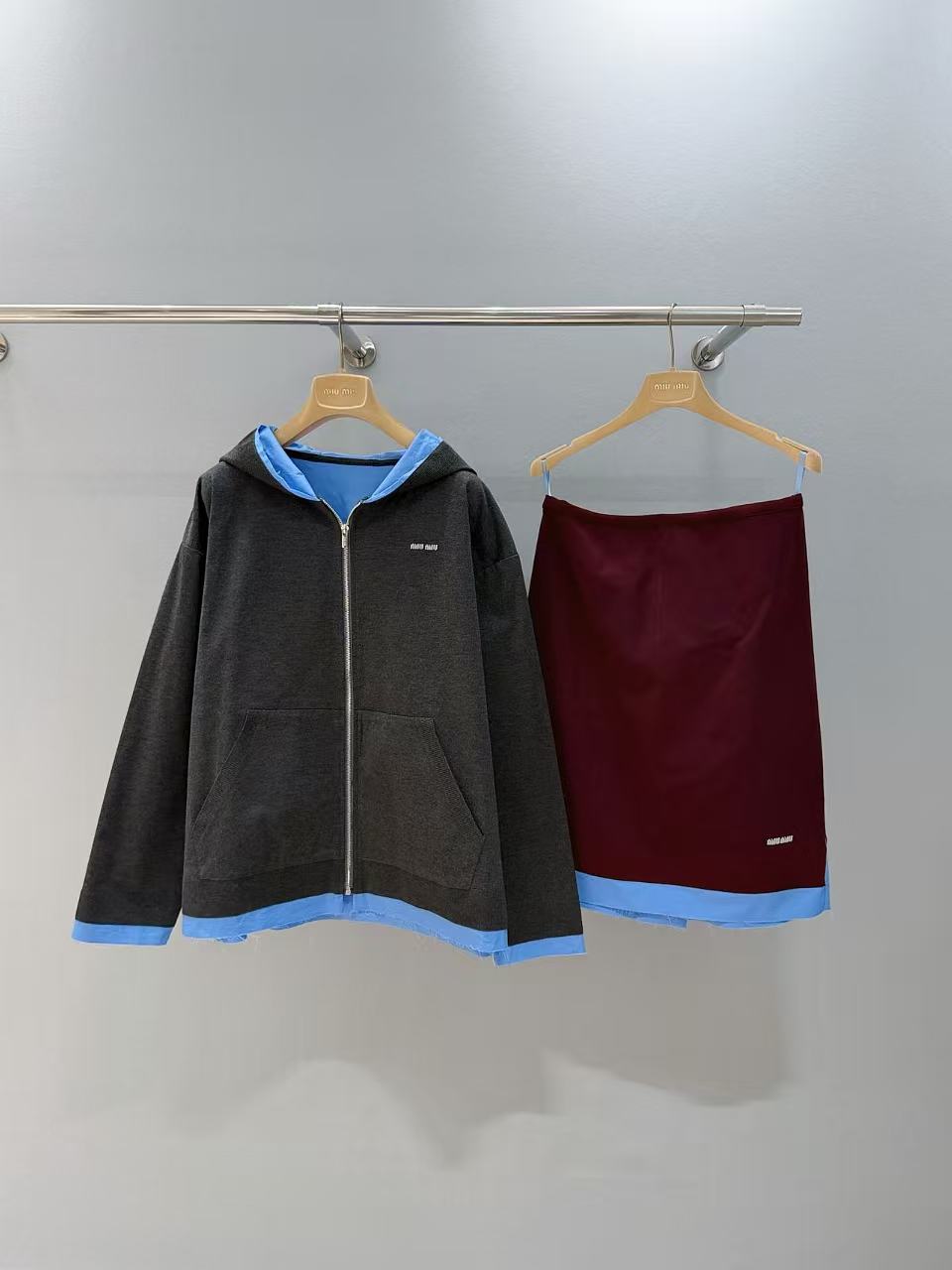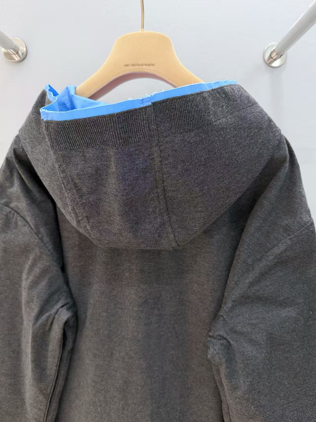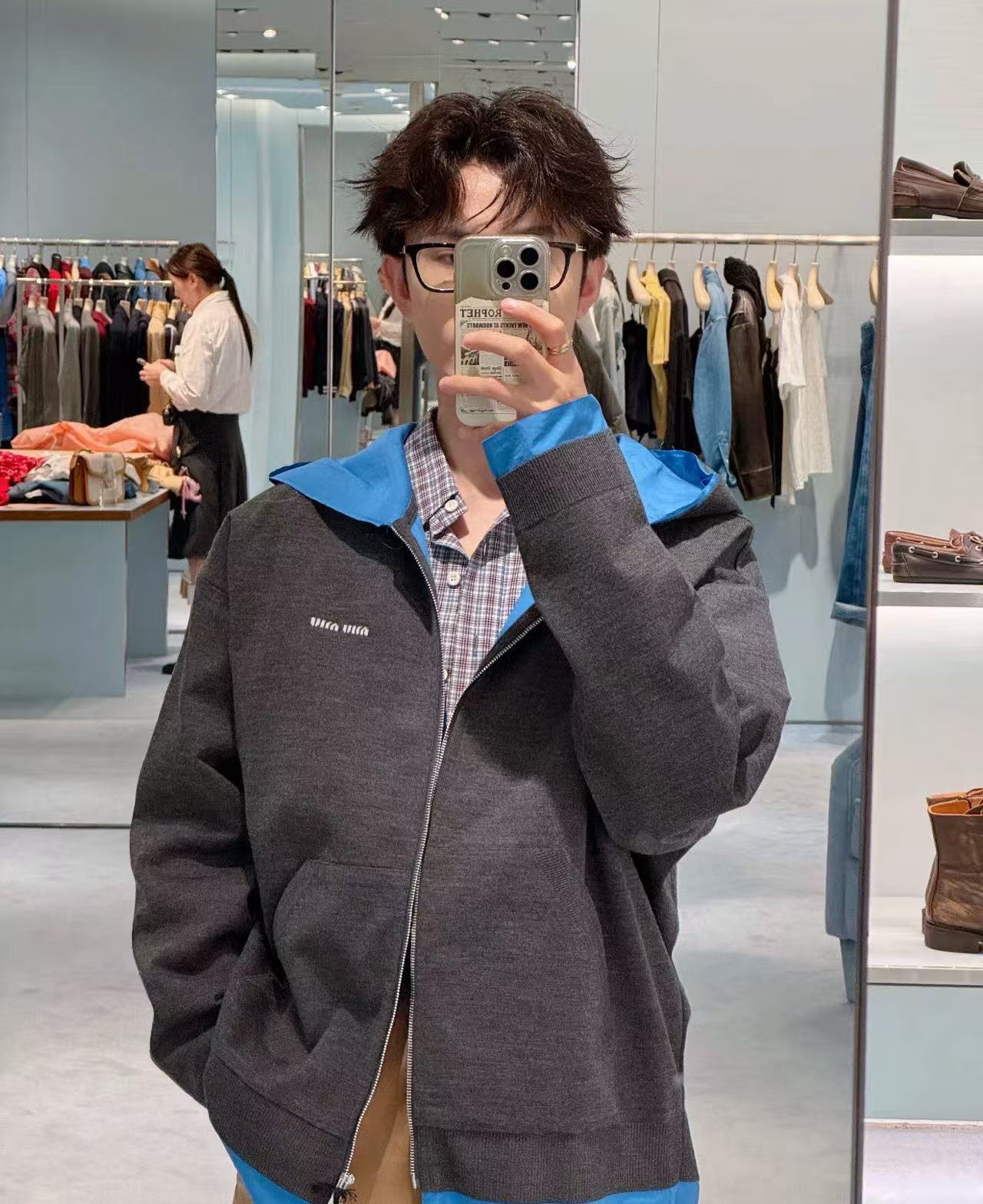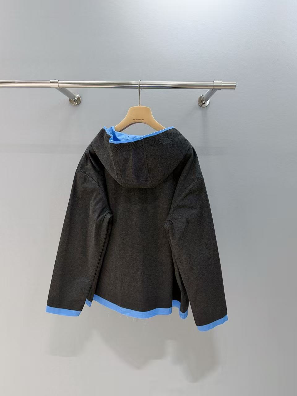 2025早秋 Miu家 藍灰拼接連帽拉鍊外套