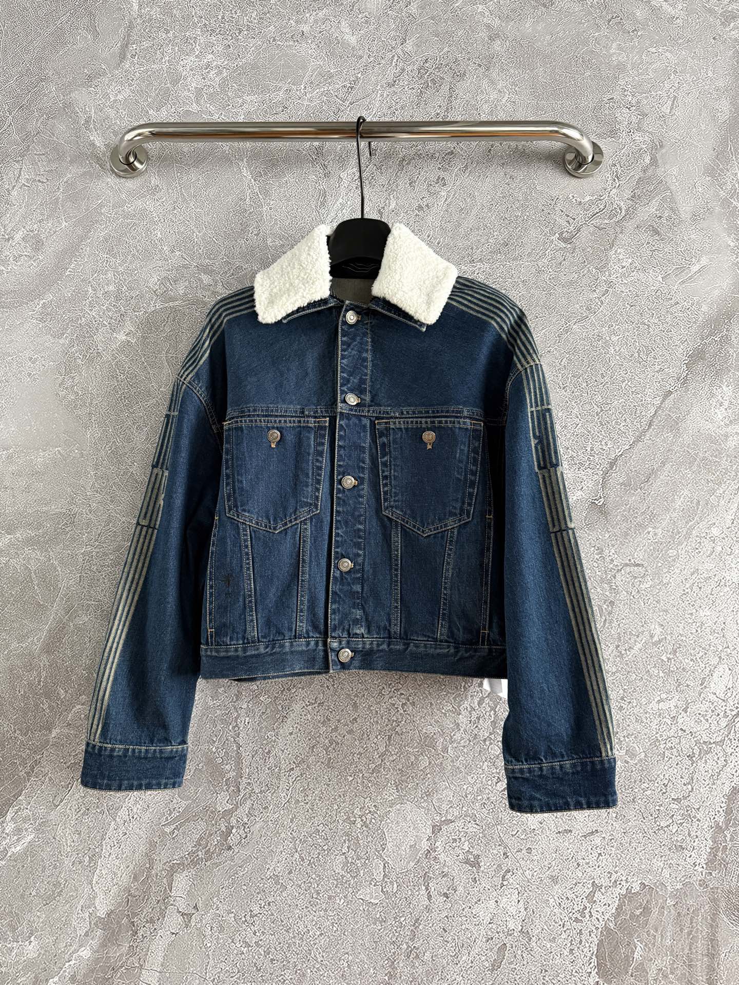 牛仔布經過精準水洗處理,顏色乾淨透亮、布面柔軟卻帶著筋骨,穿起來挺度剛剛好,有精神又不呆板,是那種一穿上氣場直接升級的版型。