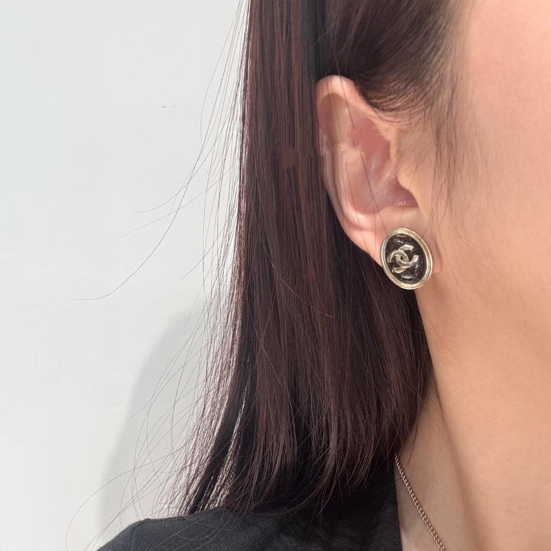 2025春夏新品 C家 流晶橢圓黑石耳釘