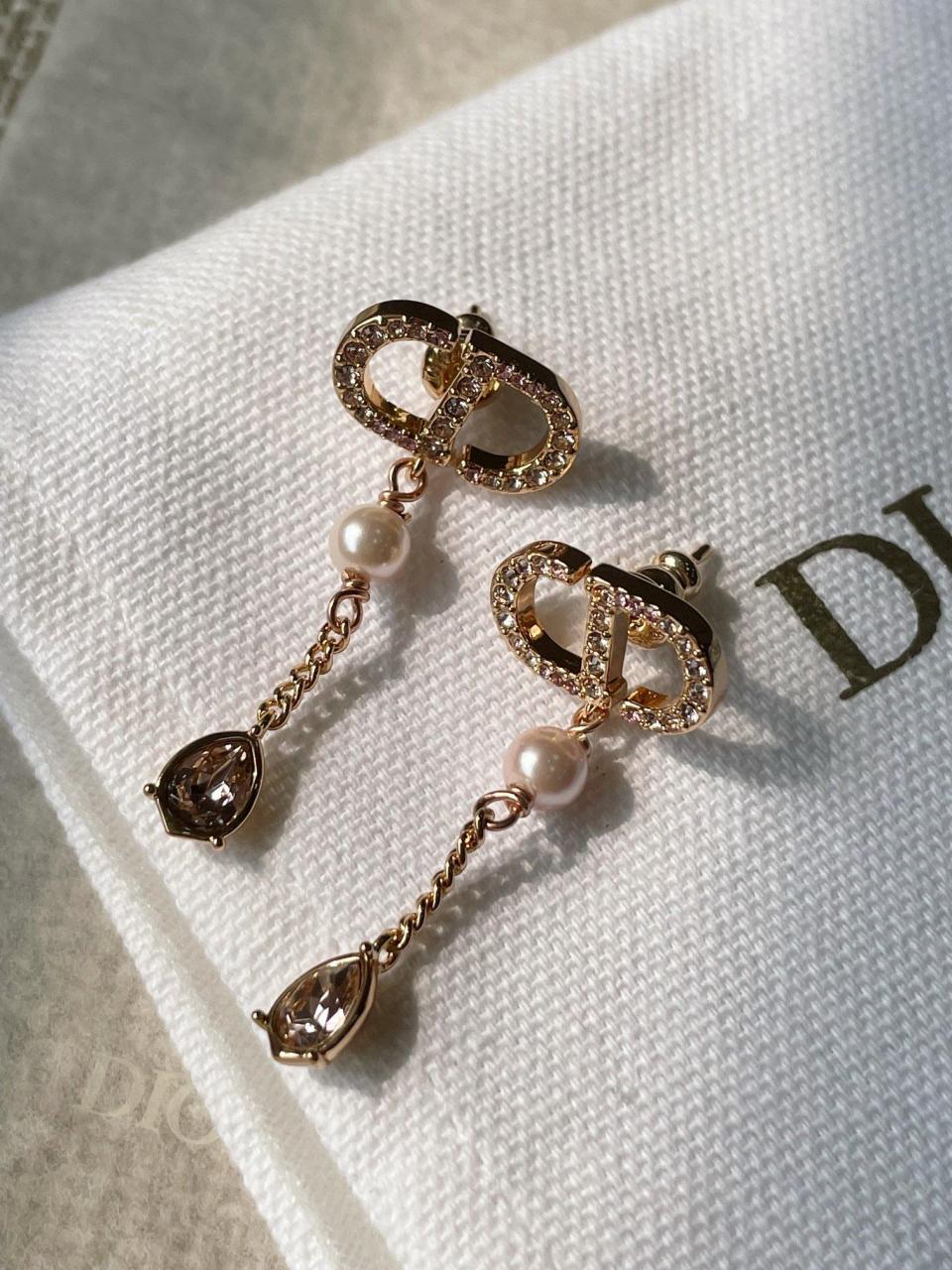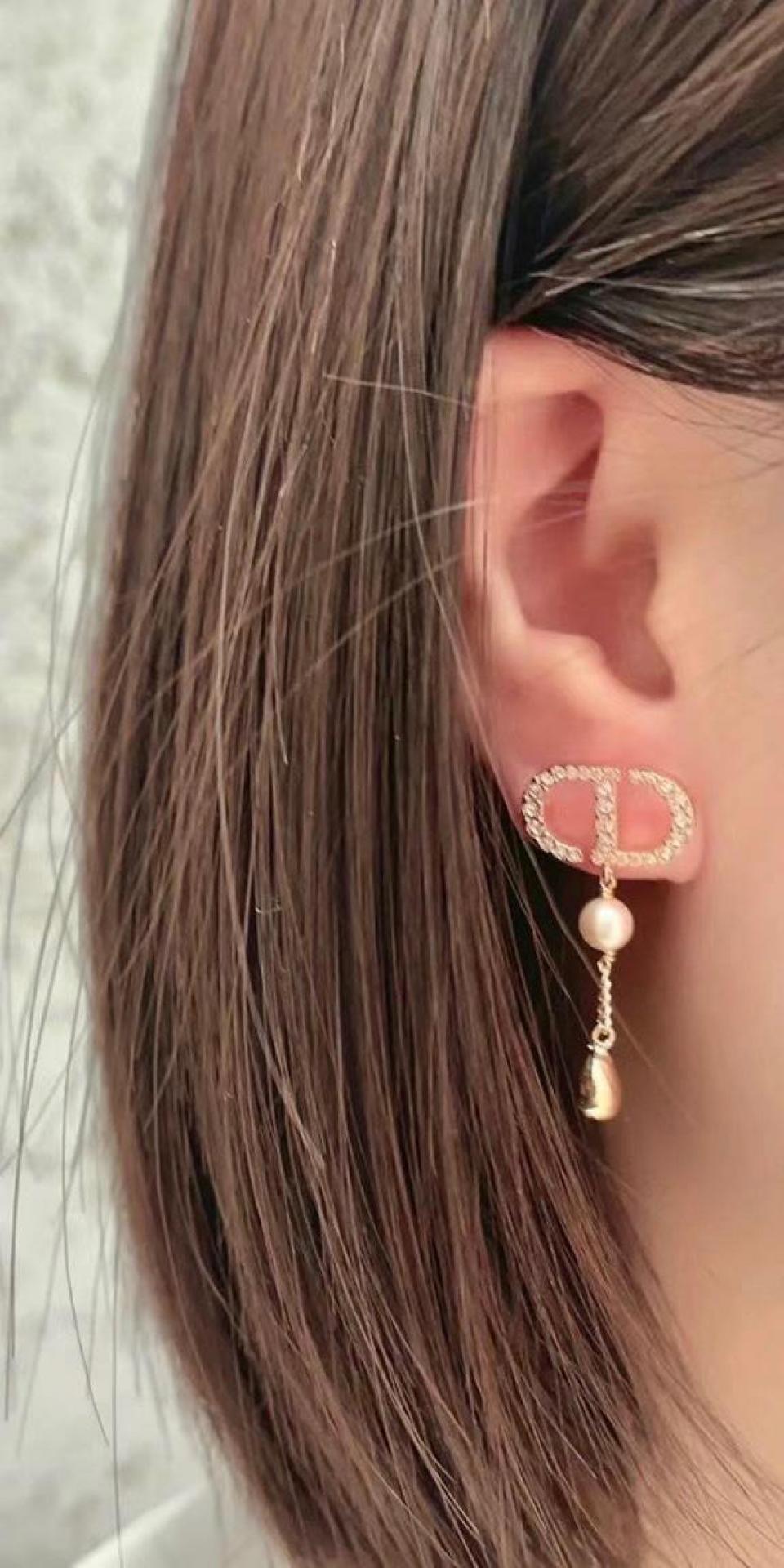 經典的CD+施華洛珍珠+水滴鑽設計,特別訂製的玫瑰金色,不是那種很發紅的顏色,非常的高級!上邊採用施華洛鑽!上耳非常靈動大方,簡約細膩實物更加的驚艷!