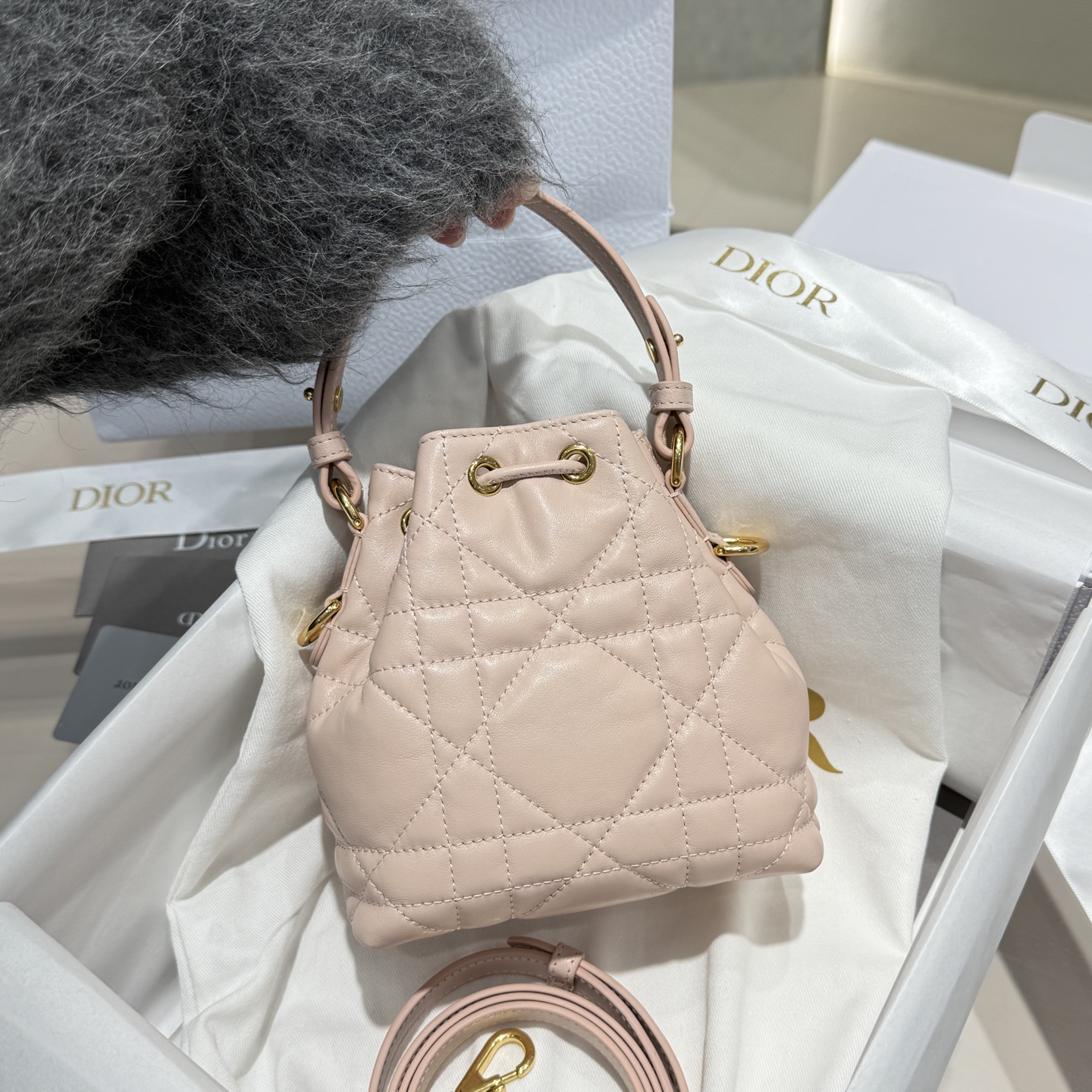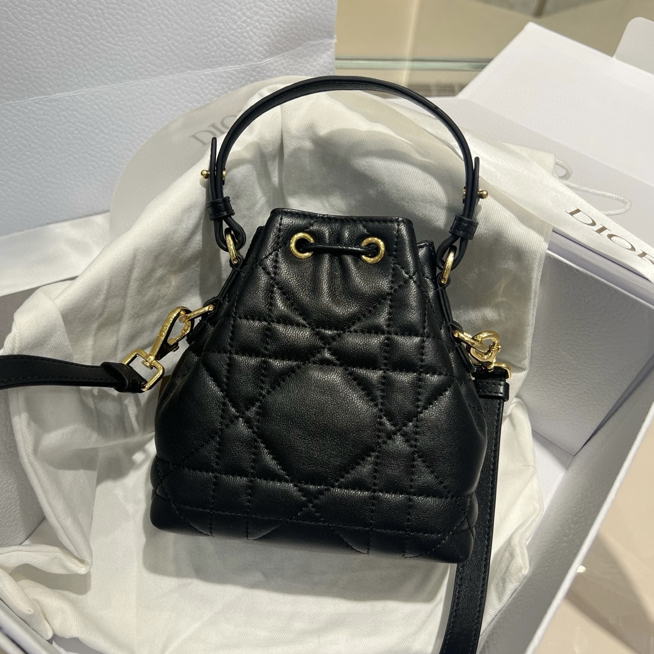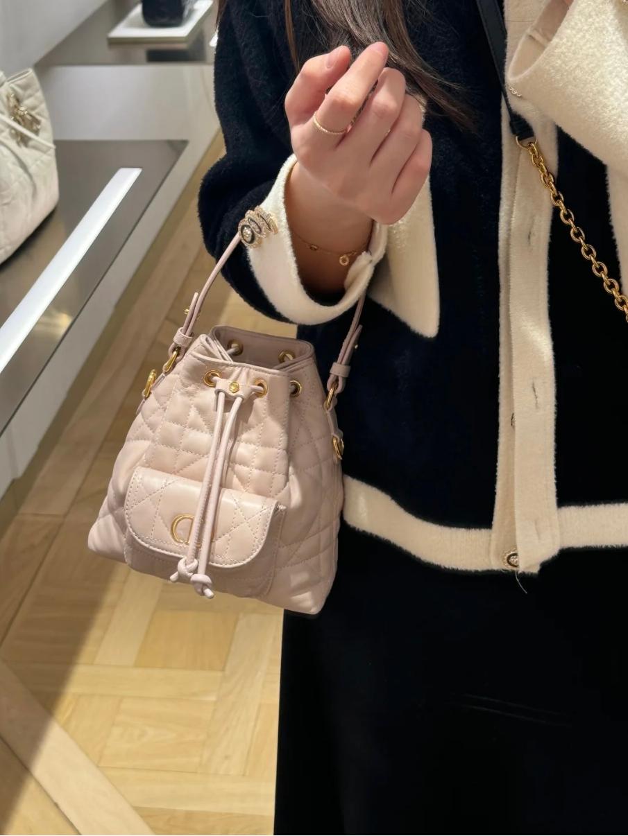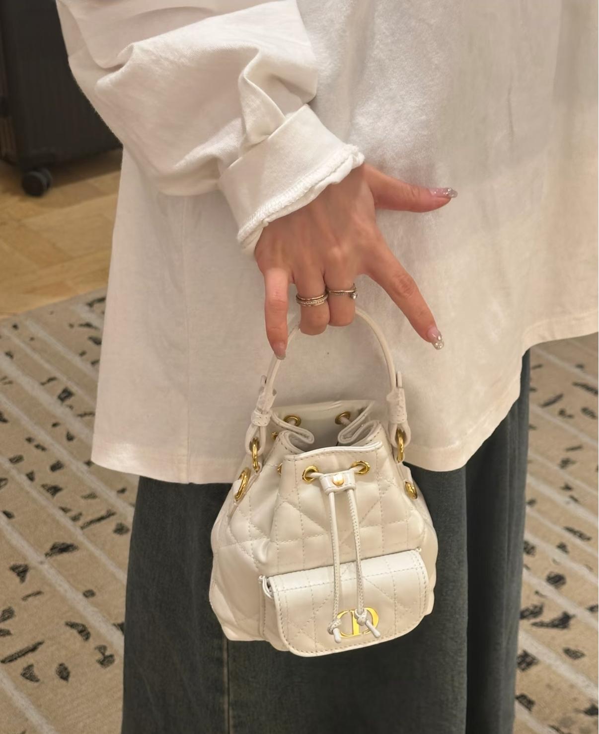 包型圓潤可愛,容量雖是迷你尺寸,但日常必備的手機、卡夾、口紅、小物件都能輕鬆收納。桶包的結構設計讓拿取物品方便不費力,不論是日常出門、週末逛街還是旅行拍照,都能展現出高級又隨性的時髦感。