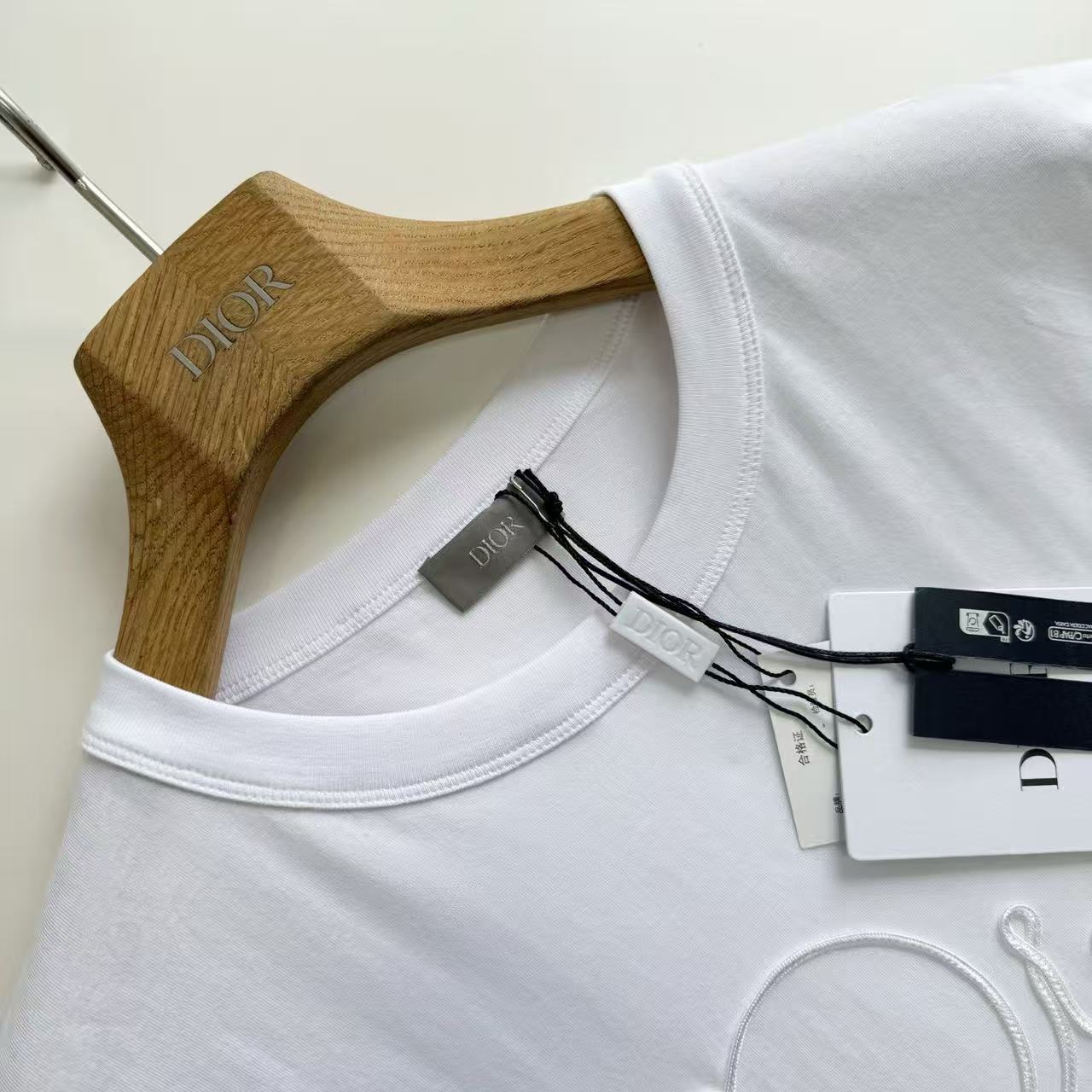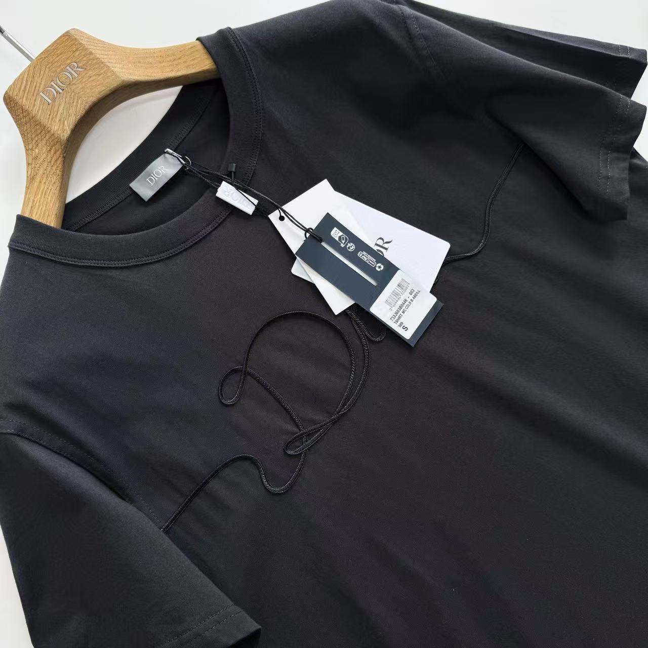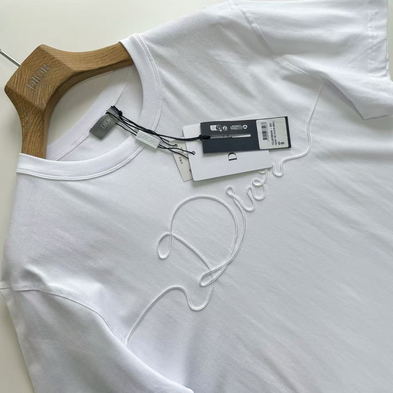 最犯規的還是那滿版的「織緞徽章」設計!一樣是用帶絲質光澤的緞帶織出來,再用特殊工藝完美固定在衣服上~緞面滑順會發光+T恤本身的霧面棉感形成超強對比,陽光一照整個衣服都在閃,卻又不會太誇張,真的高級到讓人想尖叫!