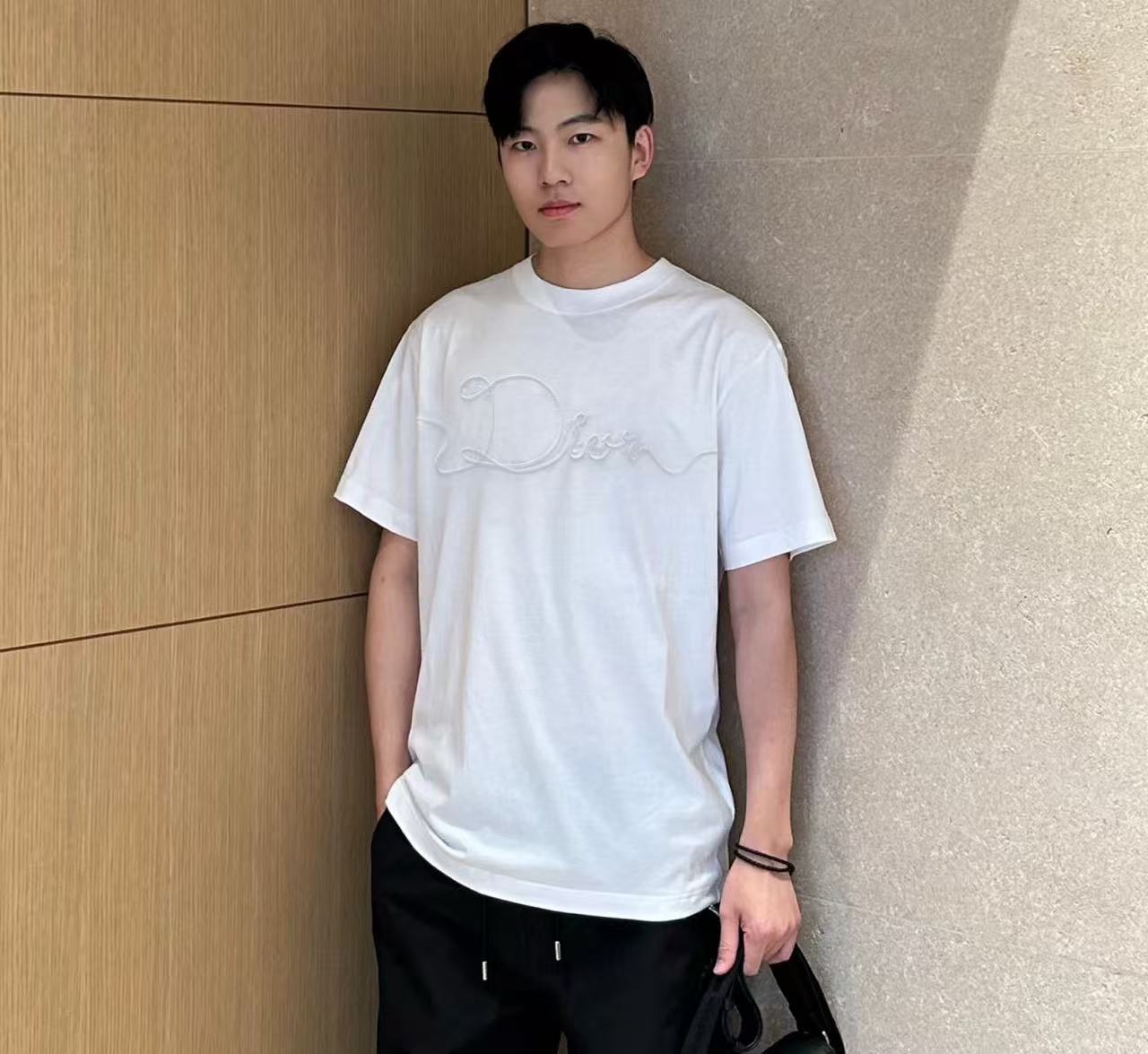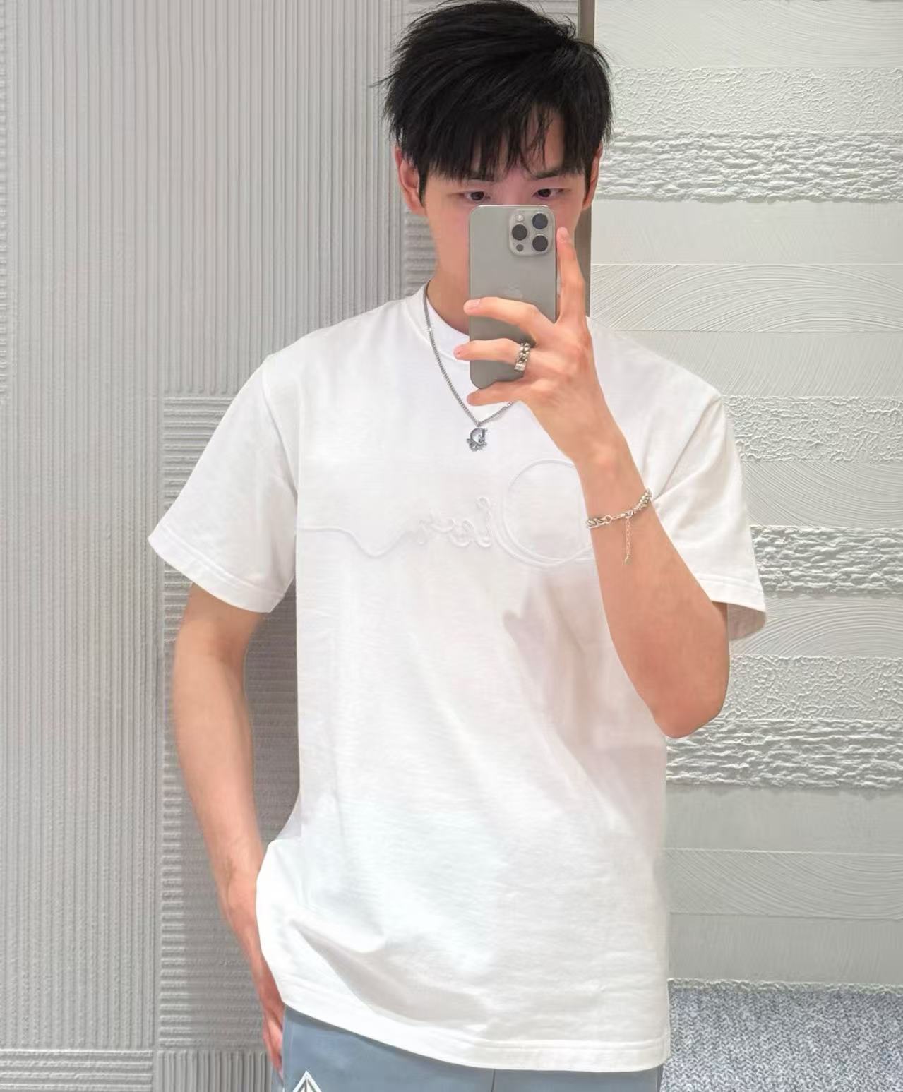 老實說,這種織緞徽章+輕薄純棉+完美光澤對比的短袖,一出就知道會變成2025夏天的爆款⋯