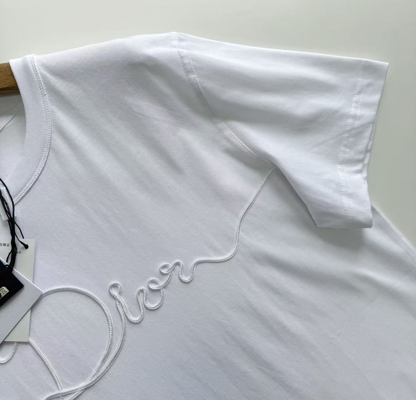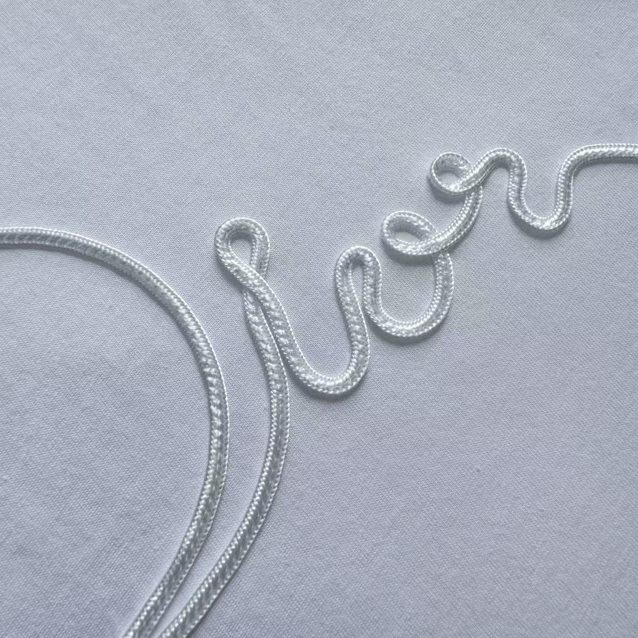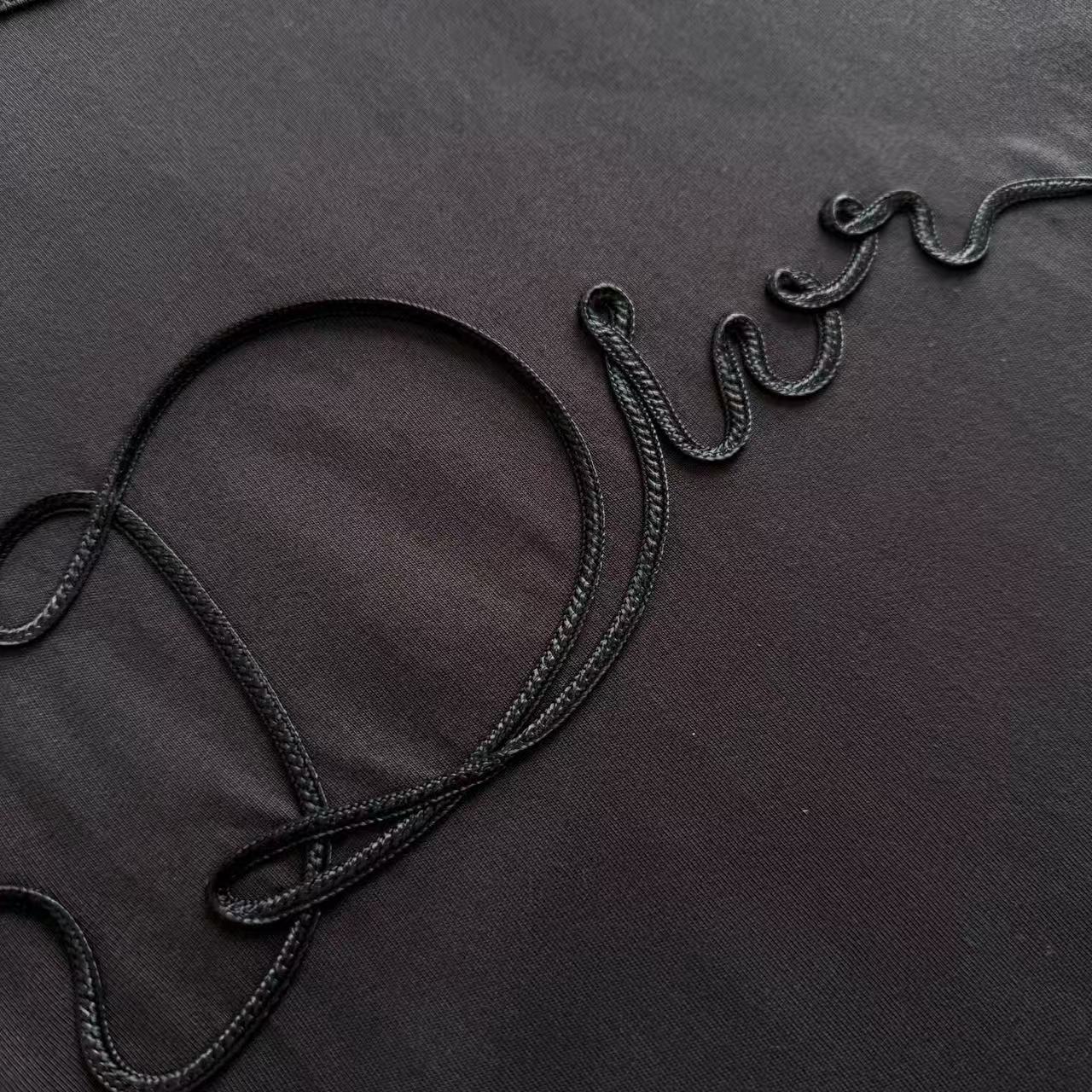 ・緞帶刺繡工藝:滿版緞帶字母+徽章裝飾,緞帶自帶絲質光澤+滑順觸感,與T恤霧面質感形成極致高級對比
