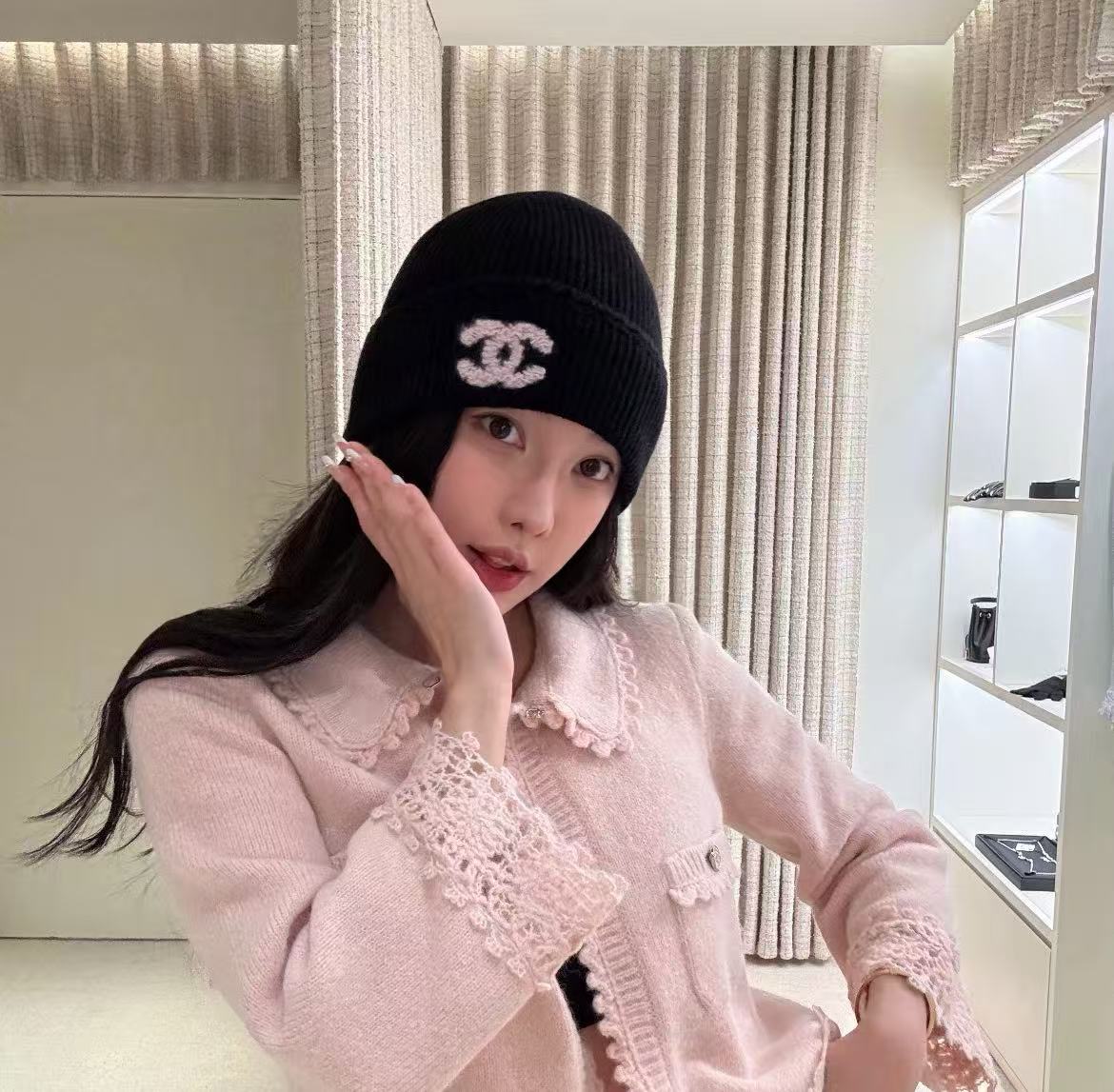 2025秋冬新品 C家 25b雙C標誌羊絨針織冷帽