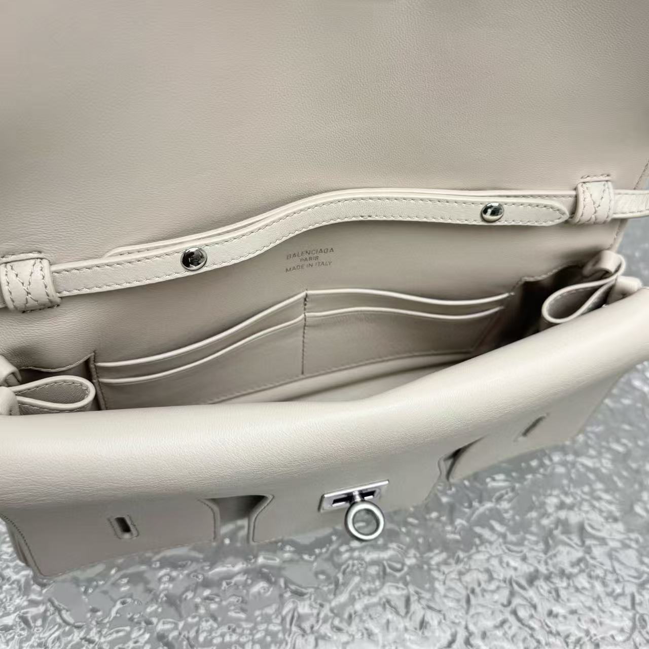 內裡:柔軟羊皮襯裡,內設卡槽與拉鍊小袋,收納井井有條。
