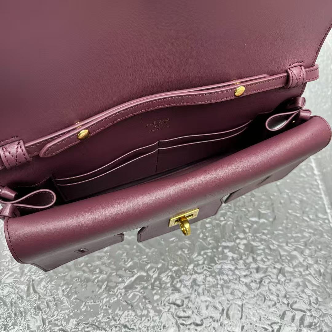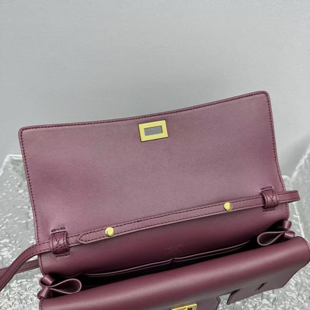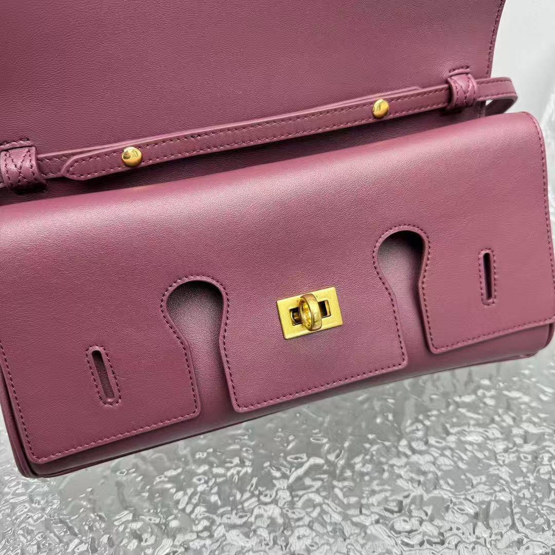材質外層:平紋小牛皮,酒紅染色飽滿,耐磨帶細膩光澤。