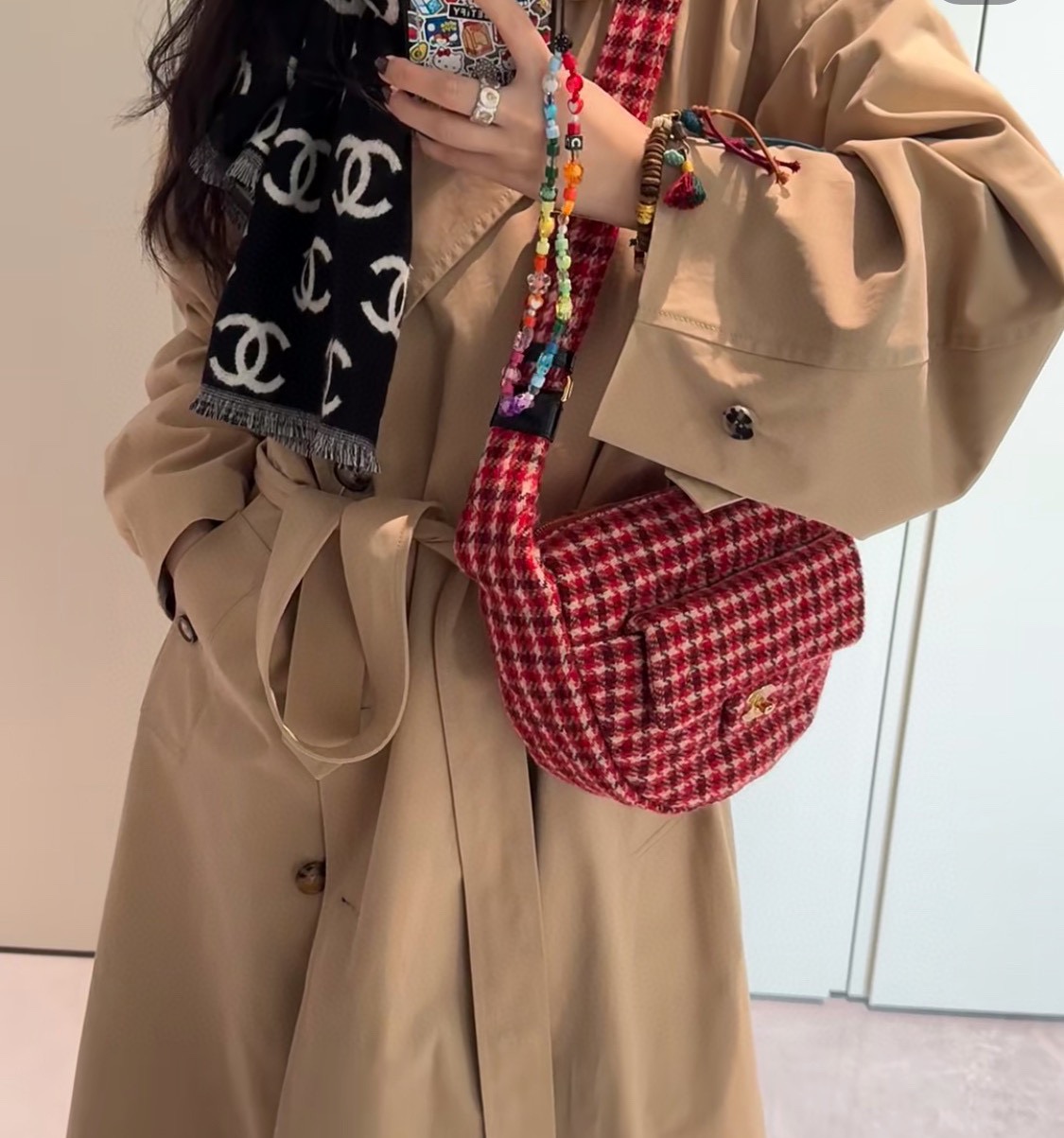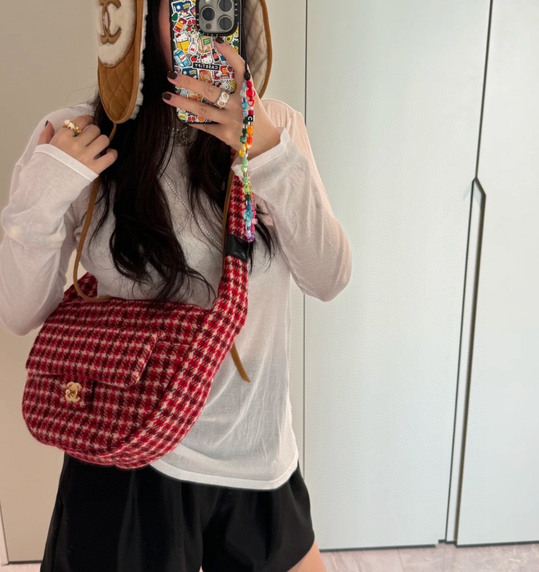 2024秋冬新品 C家24N coco neige 滑雪系列紅千鳥格hobo半月包