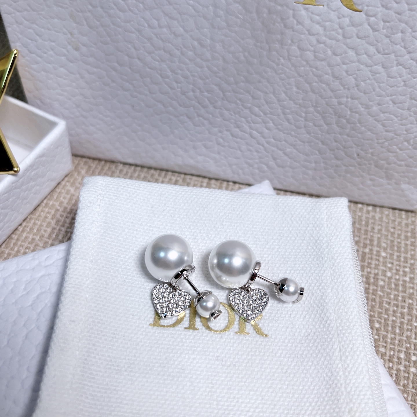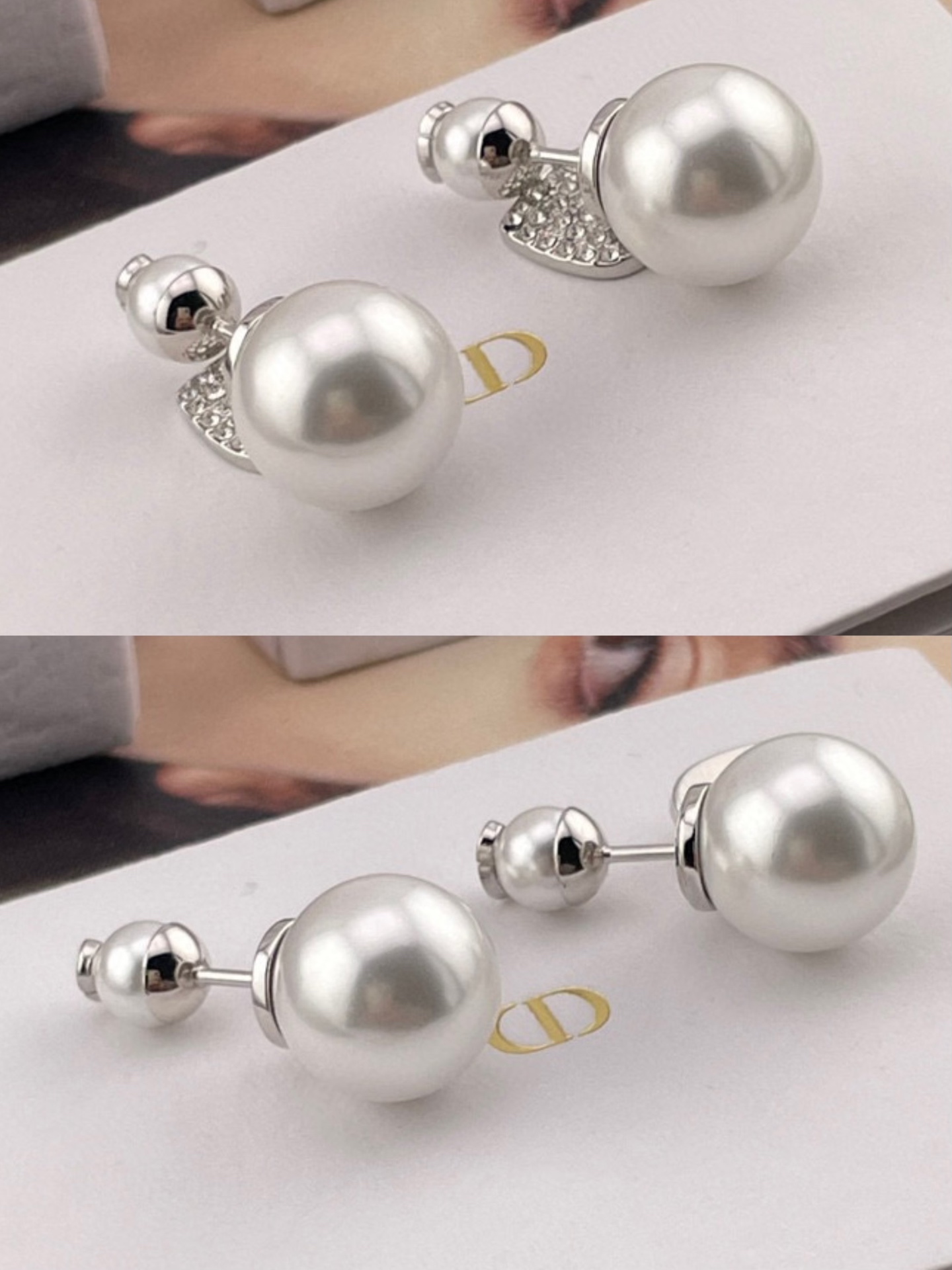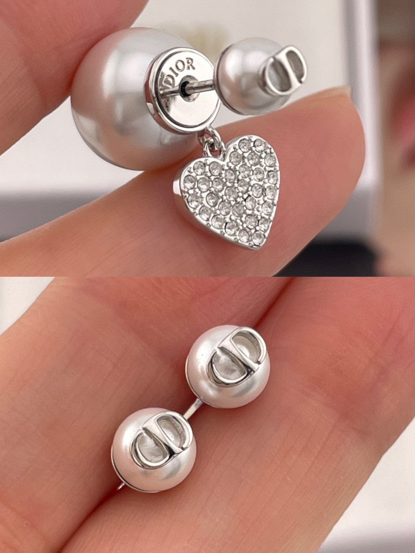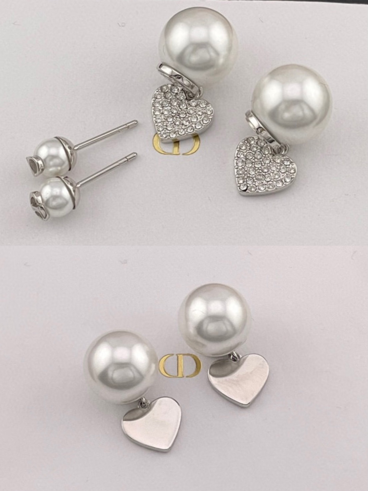 2025早秋新品 D家 滿鑽愛心雙珠耳釘