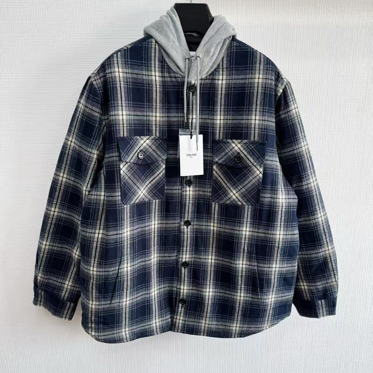 2025早秋新品 CE家 格紋羊絨連帽外套