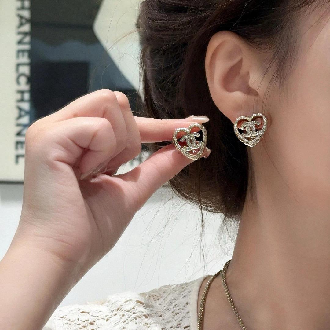 2025春夏新品 C家 菱格鏤空愛心耳釘