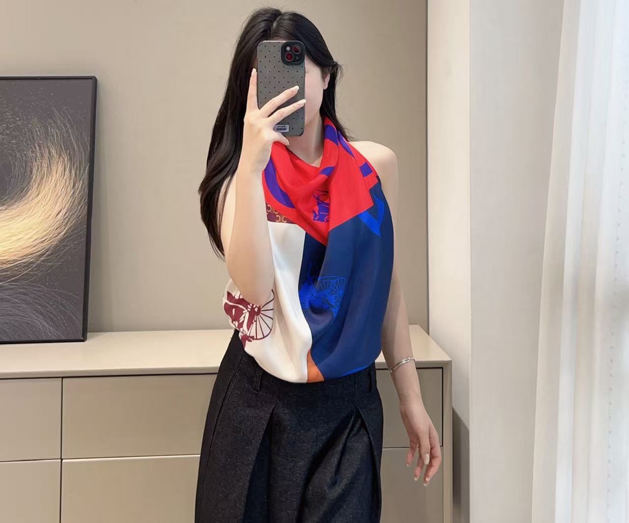 設計核心聚焦於如同旗幟般颯爽的拼接構圖,鮮明卻不失靜謐,完美還原了法式布爾喬亞式的隨性與詩意。這不僅是一件配飾,更是將品牌標誌性的馬術元素串連復古與現代的當代美學作品。