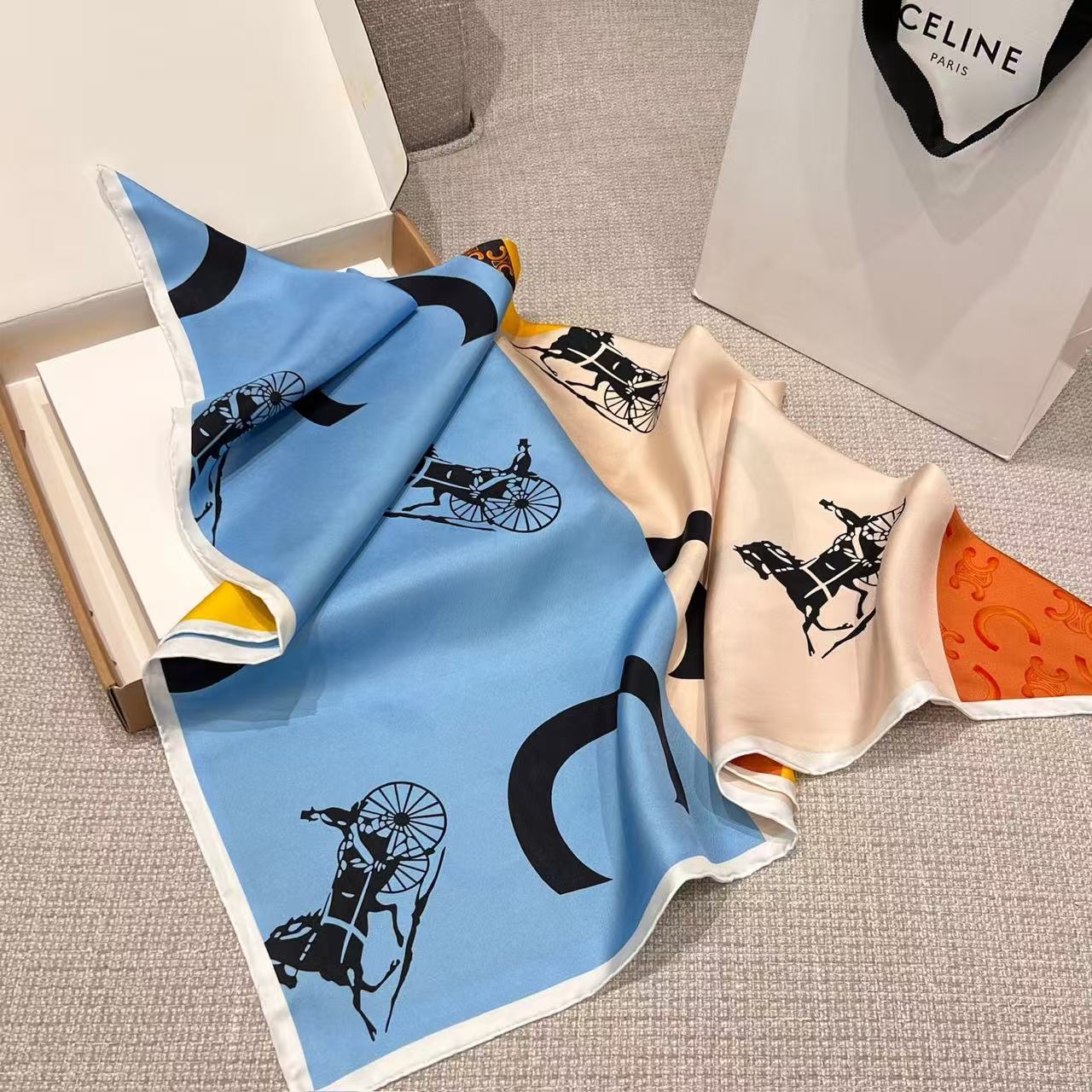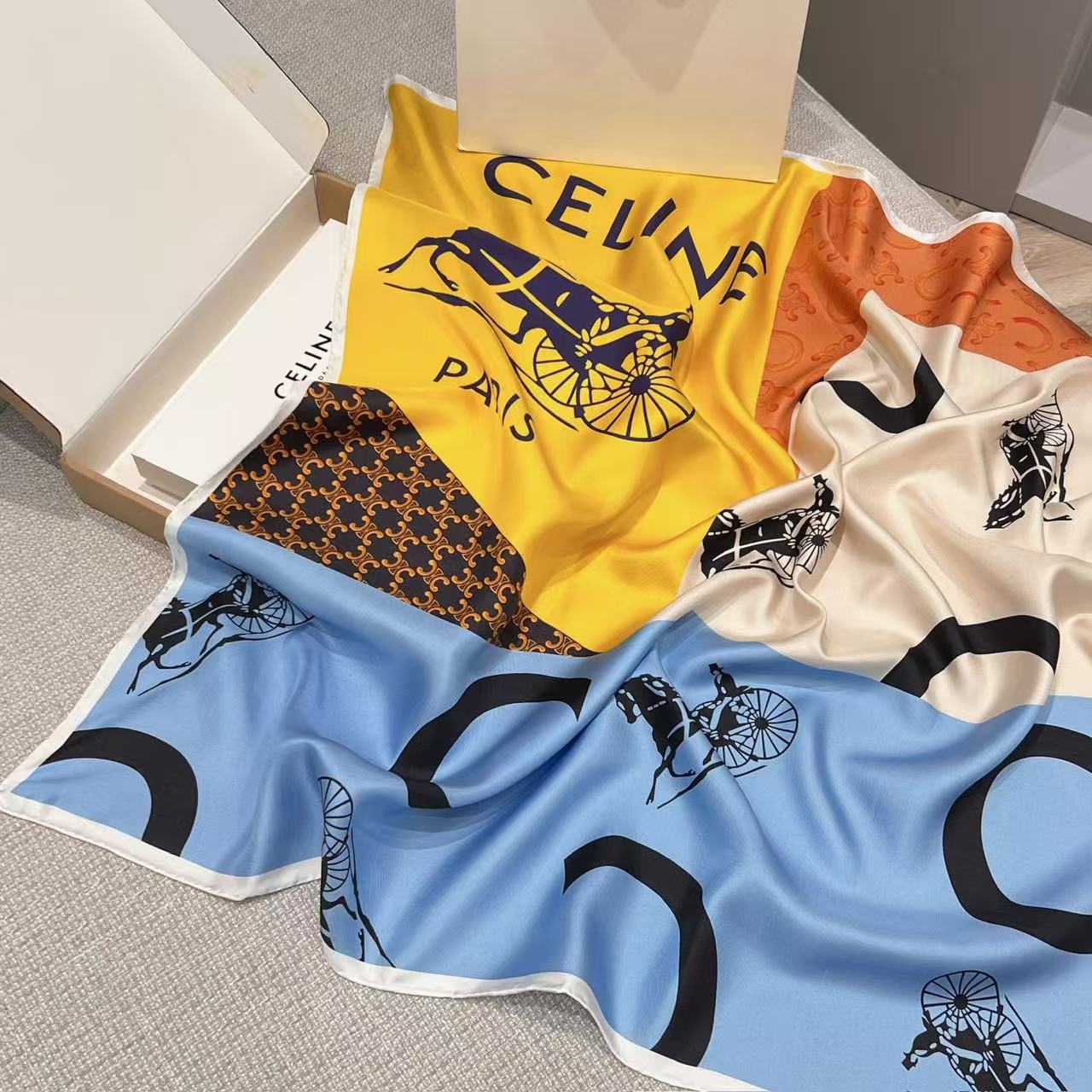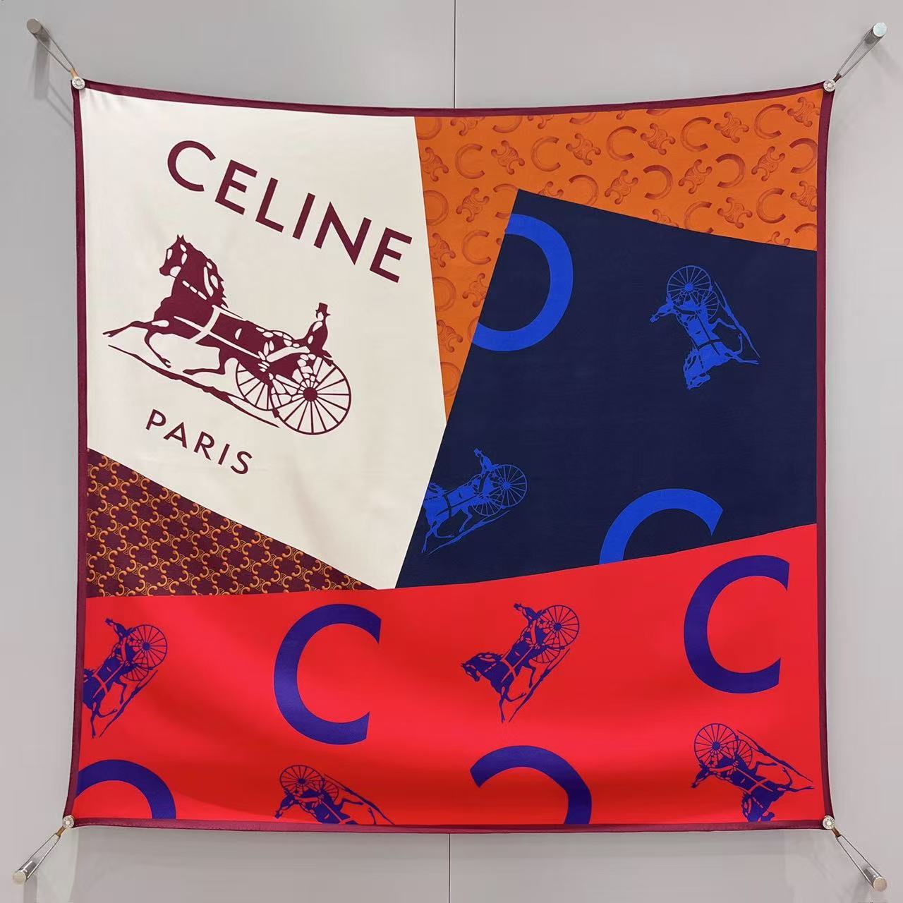 2026早春新品 CE家 旗幟拼接斜紋真絲大方巾