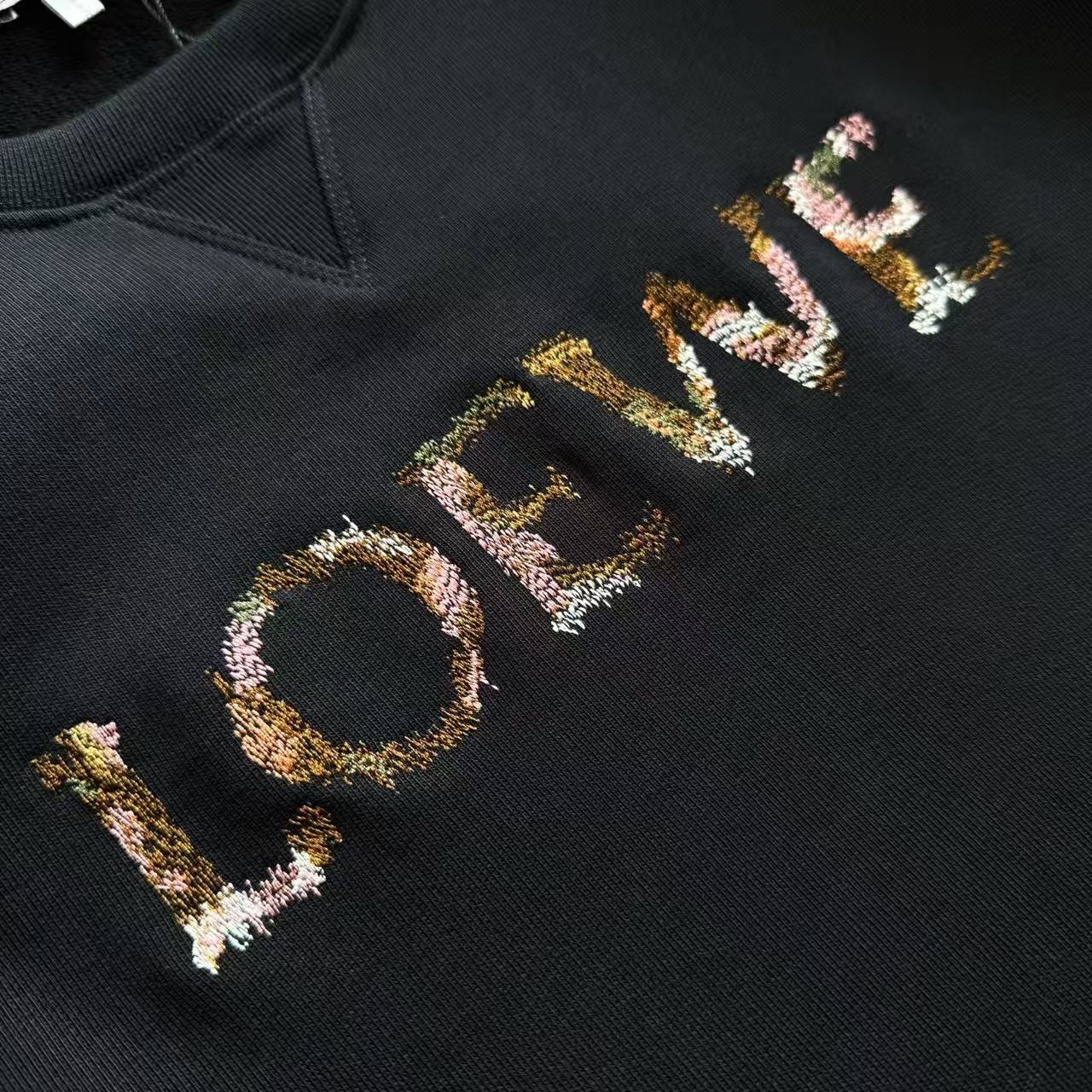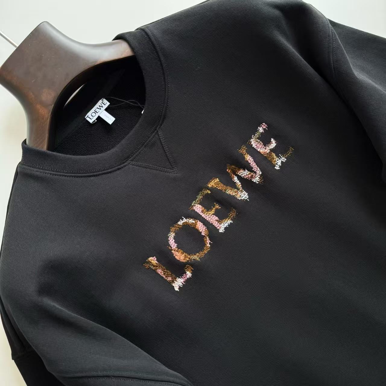 這件衛衣最吸引人的地方就是它胸前的彩色刺繡!這個刺繡以榻榻米繡工藝製成,讓刺繡看起來立體又飽滿。此外,還使用了獨家訂製的絲光材質繡線,讓刺繡呈現出高級的光澤感,這種對細節的執著,完美還原了專櫃的品質。