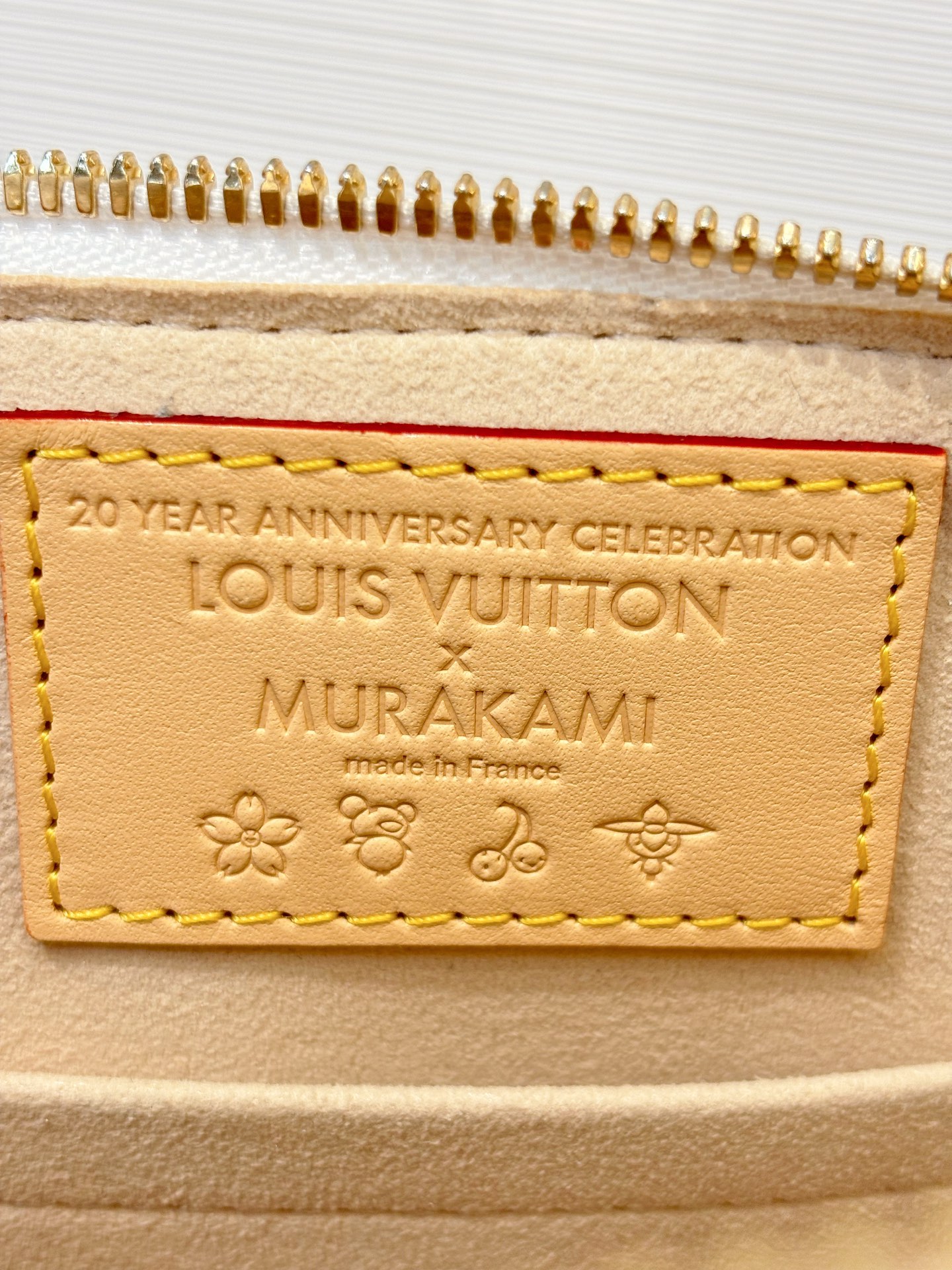 擁有細緻塗層處理的帆布材質,耐磨抗刮,維持包體硬挺有型,即使長時間使用也不易變形。圖案印刷清晰、色彩飽和,經典 Monogram 搭配村上隆白三彩塗鴉圖騰,辨識度極高。