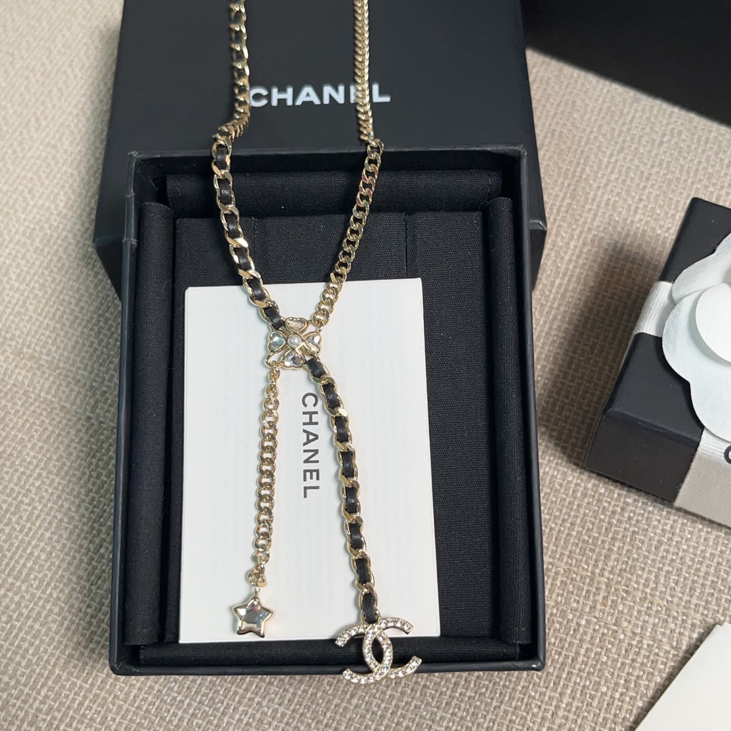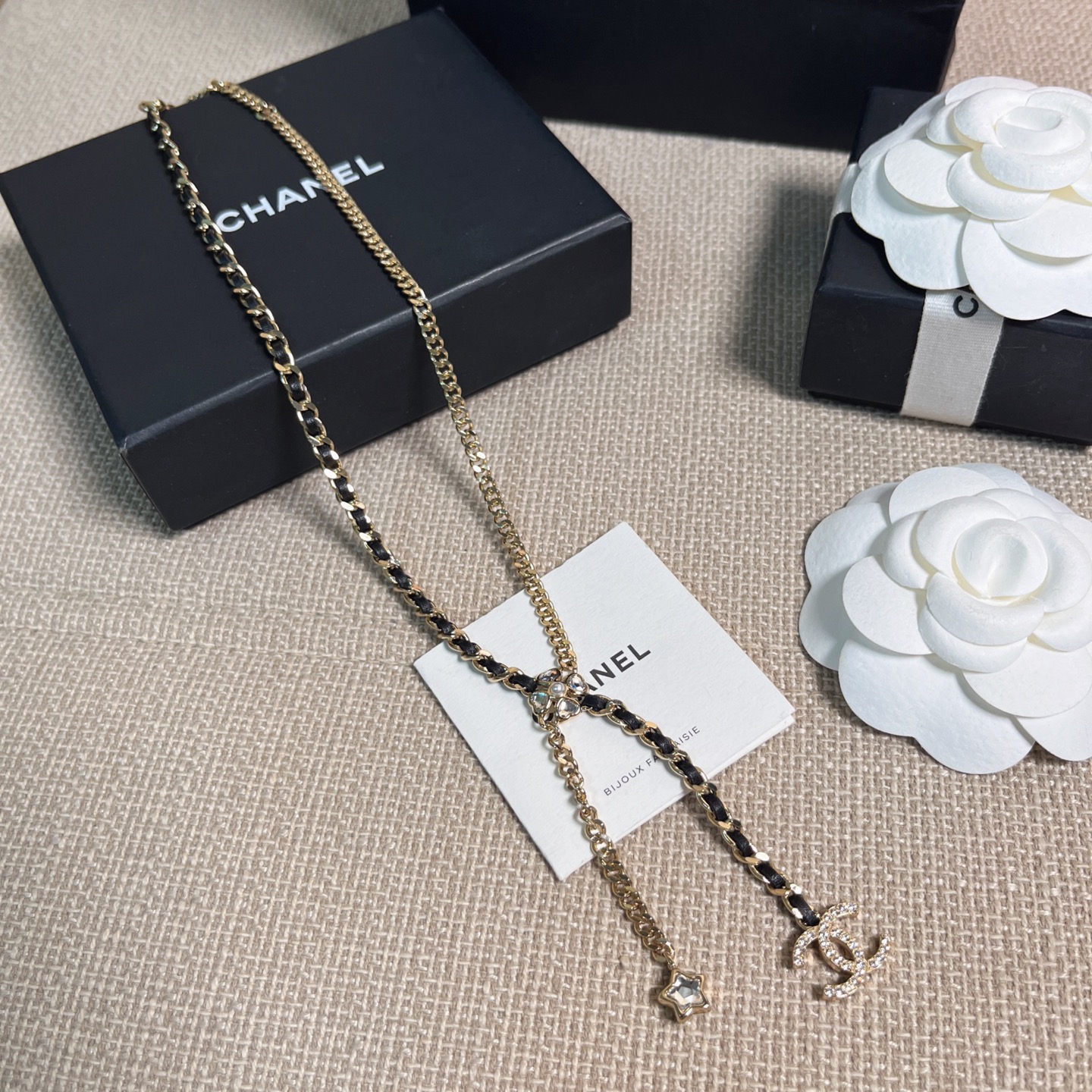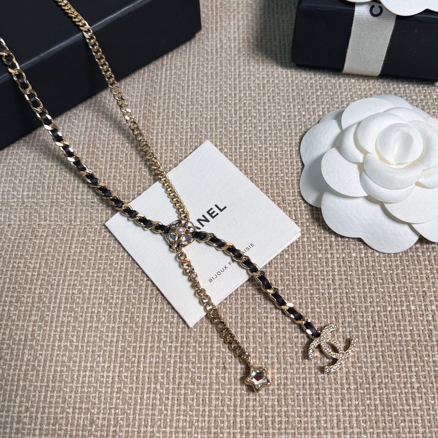 長度可自由調節,戴上後會隨著光線閃耀出不同層次的光芒。設計上結合了星星、四葉草、雙 C 以及皮穿鏈等經典元素,再搭配特別定制的愛心與星星形狀水晶,整體靈動俏麗又帶點甜颯感。