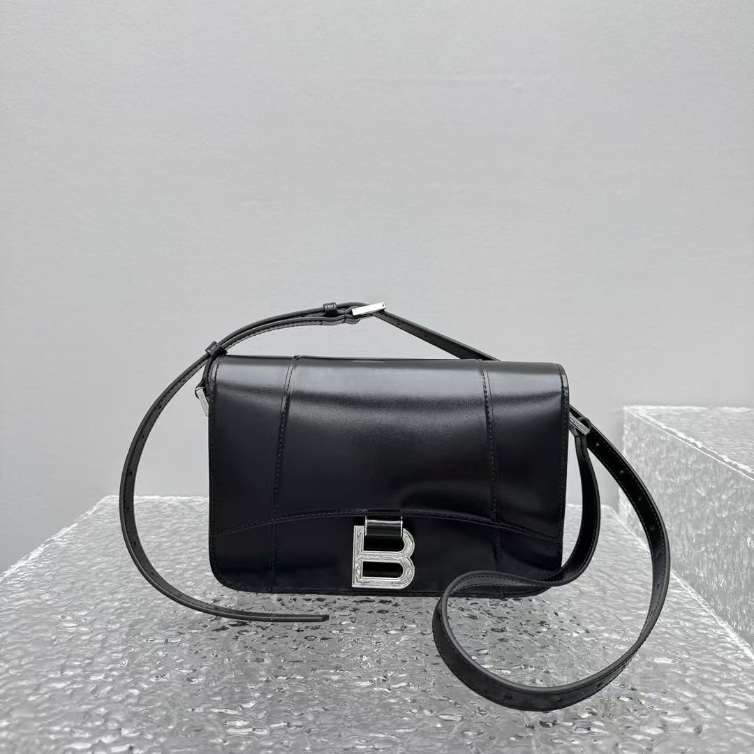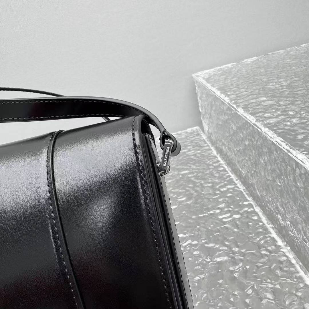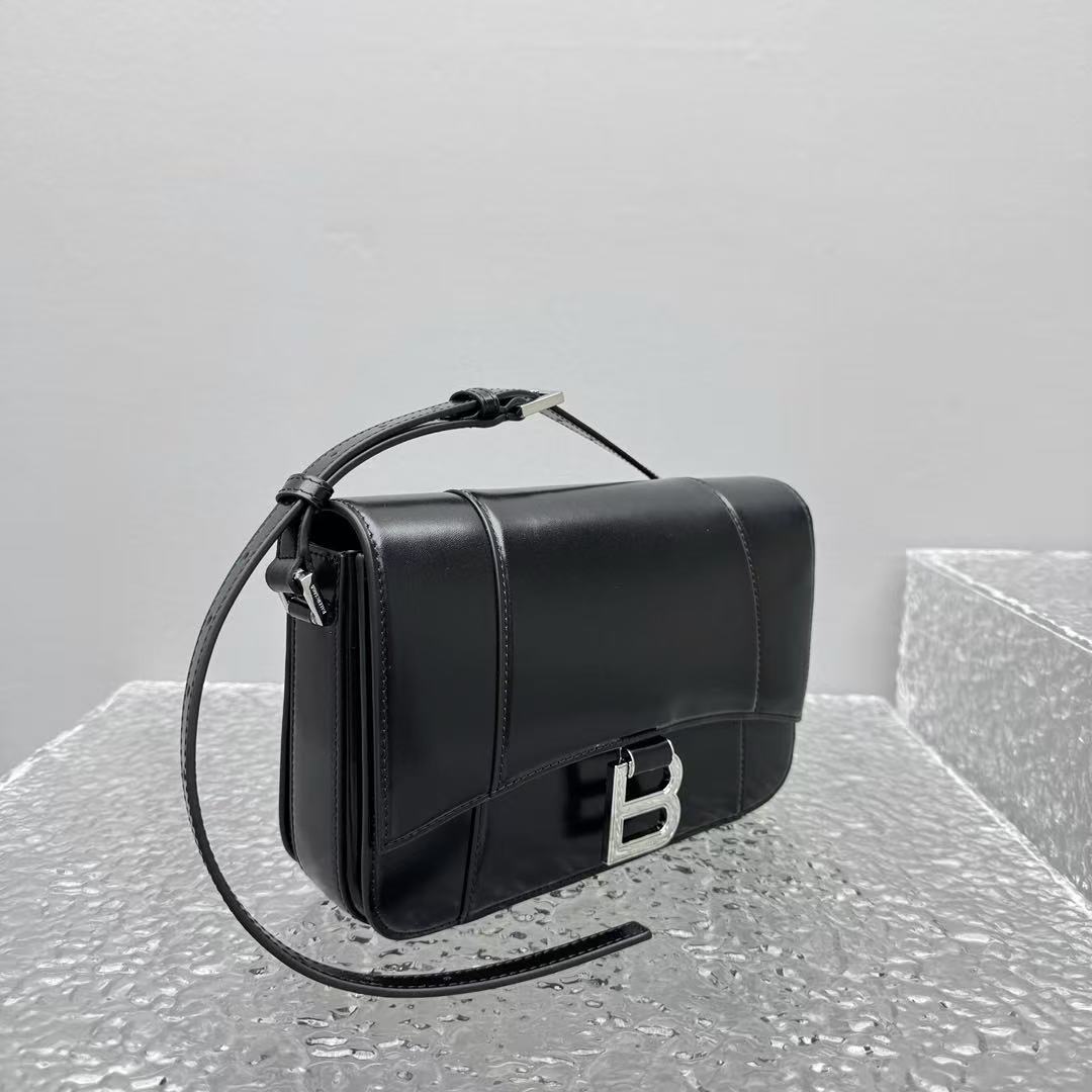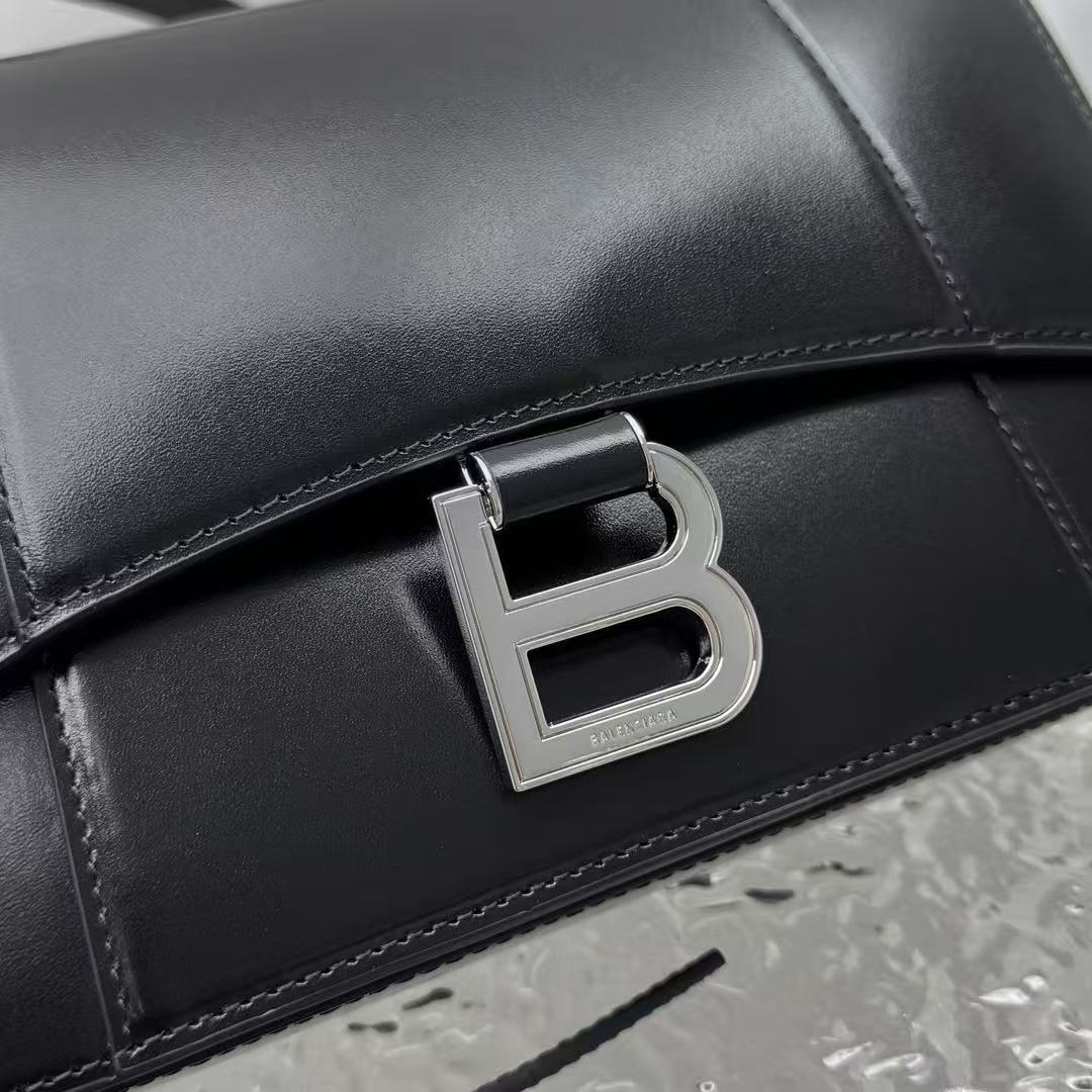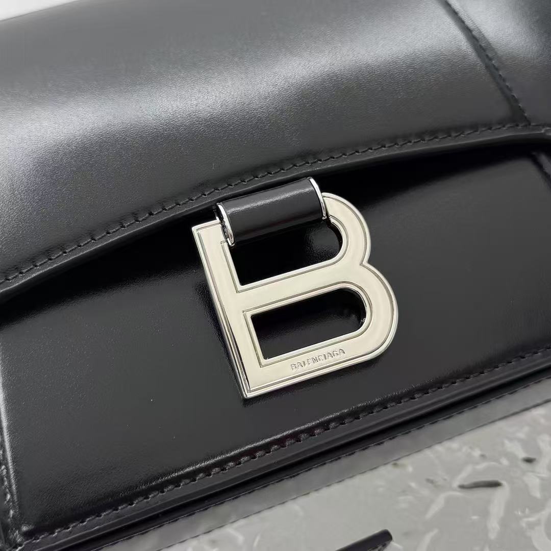 這款 Hourglass 斜挎包的設計細節充滿了 Balenciaga 的標誌性風格: