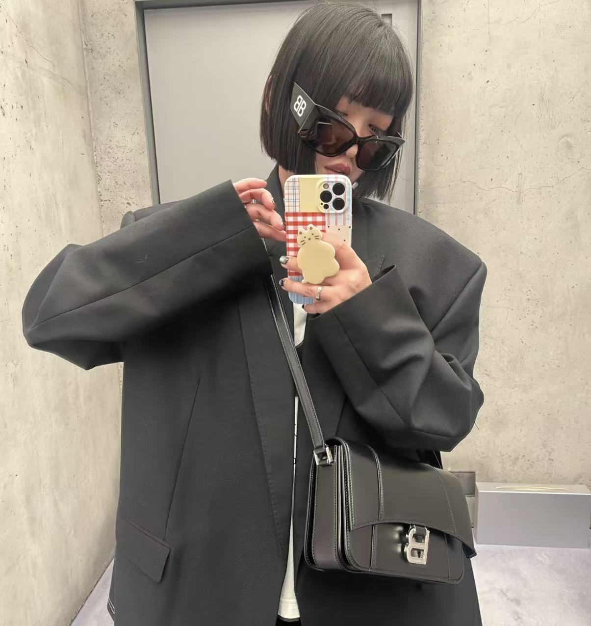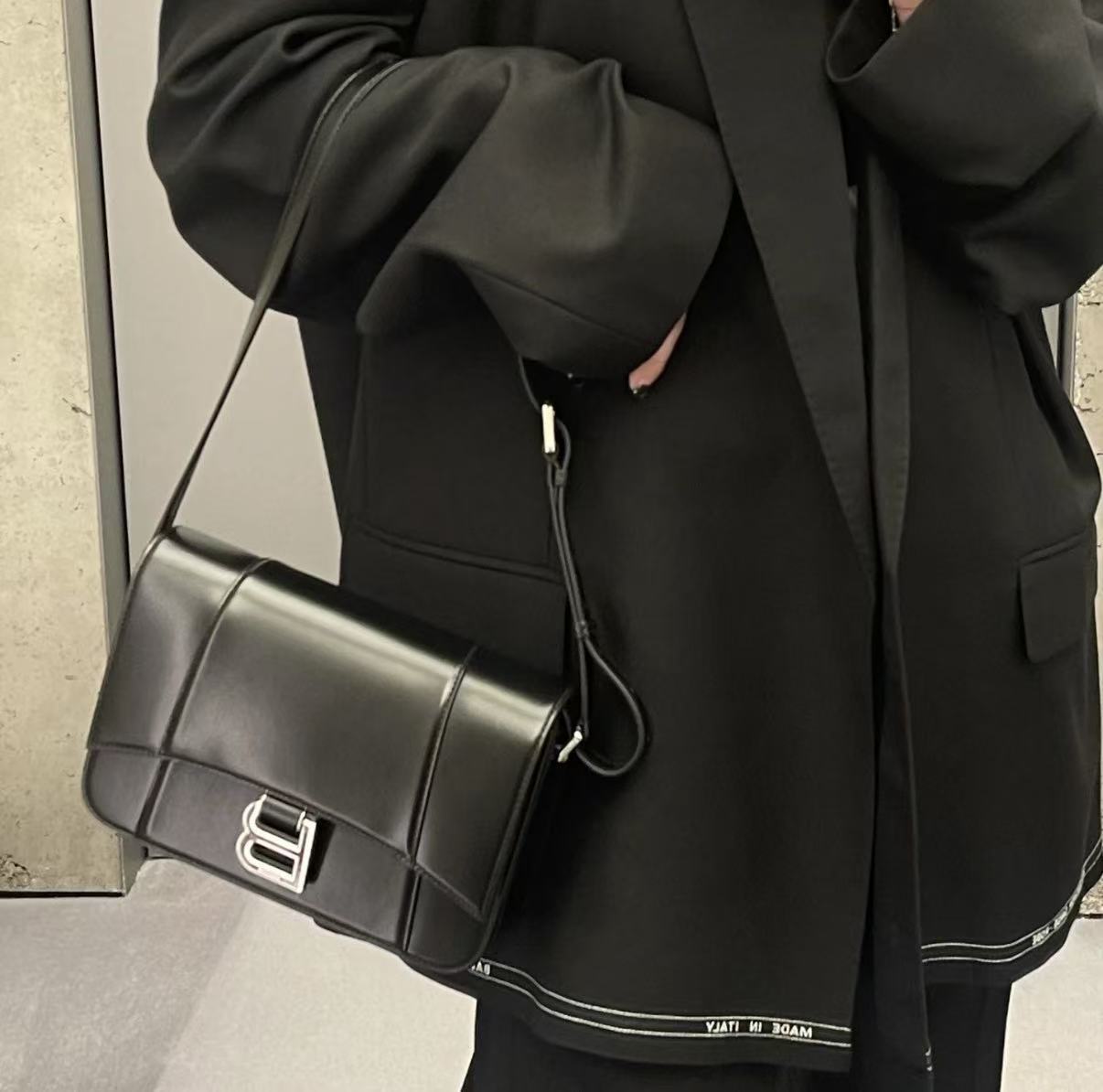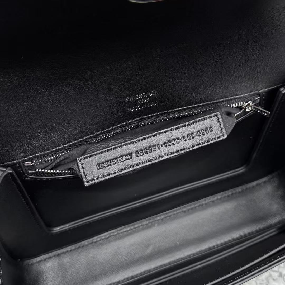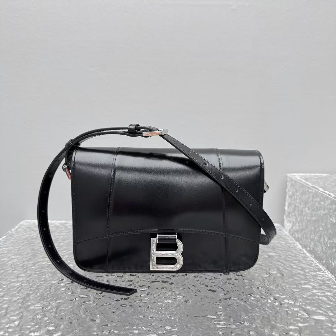 這款 Hourglass 斜挎包的設計細節充滿了 Balenciaga 的標誌性風格: