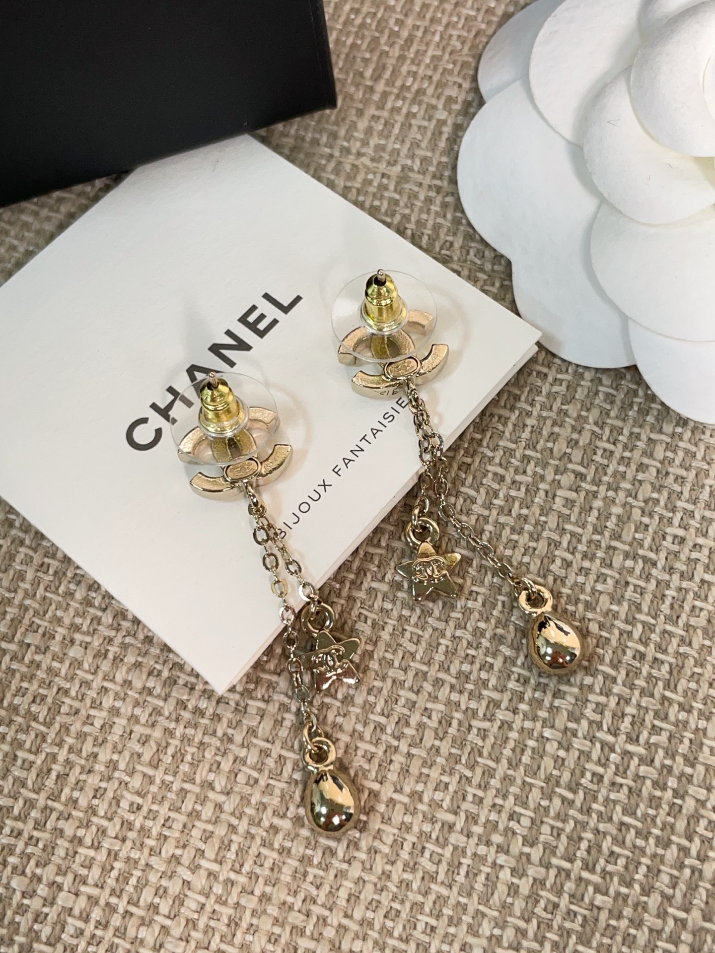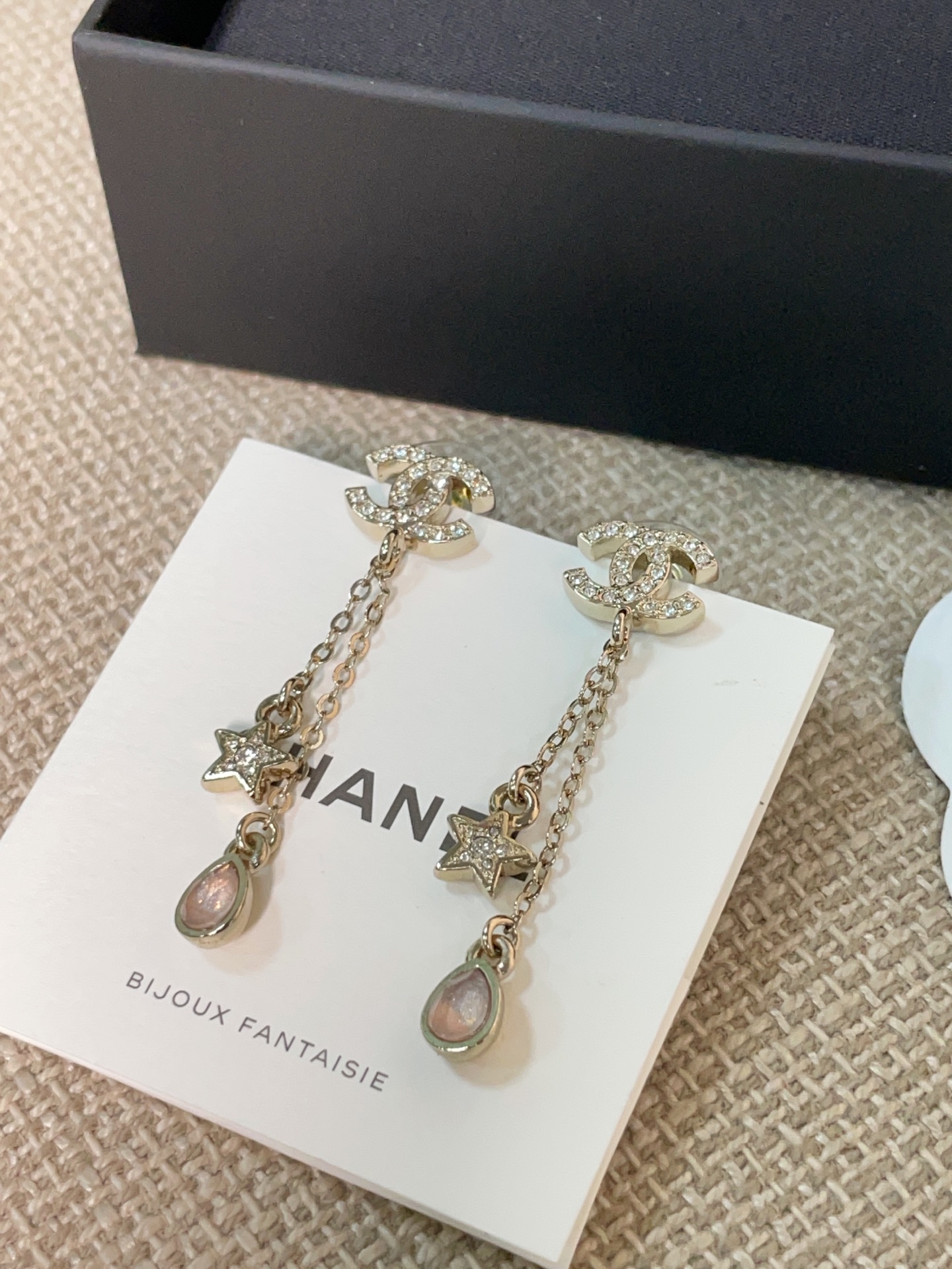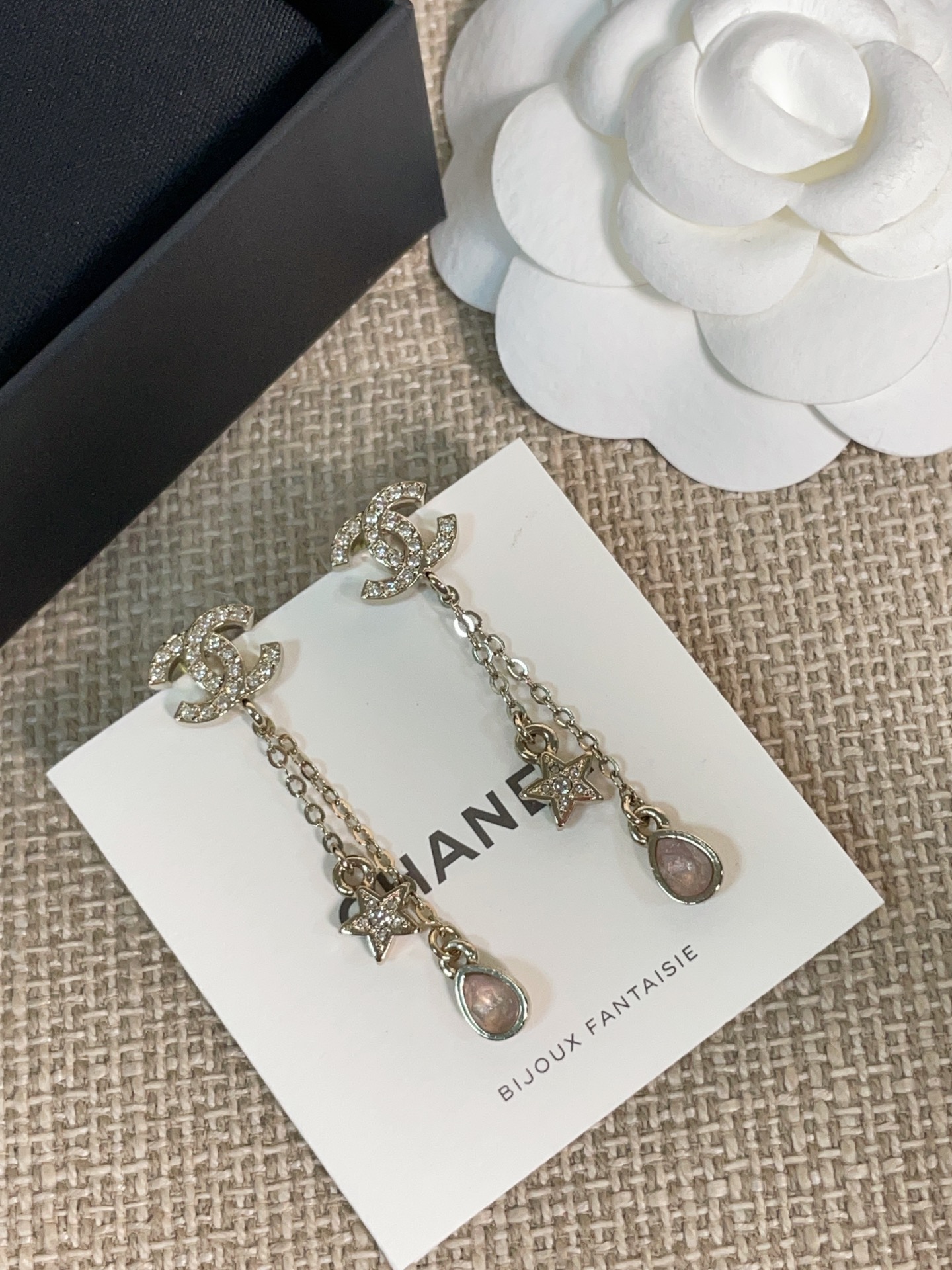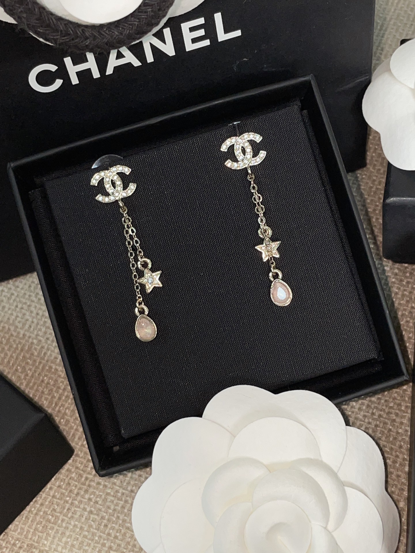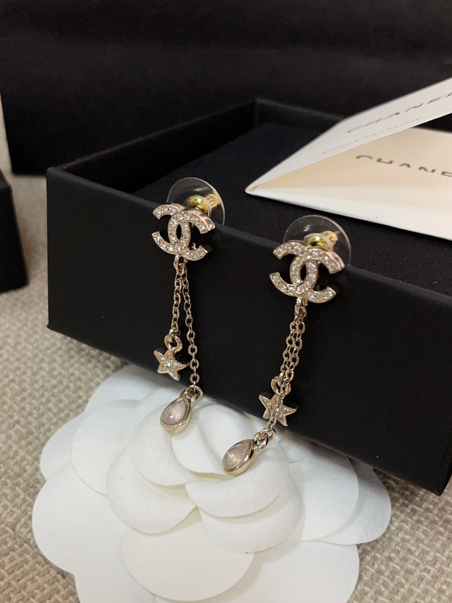 這款是讓人一眼沦陷的存在,真的會讓女生看到直接心動。五角星、雙 C Logo、細緻水滴鑽的組合,優雅又帶點甜美,戴上立刻散發「富家千金」般的精緻氣質。