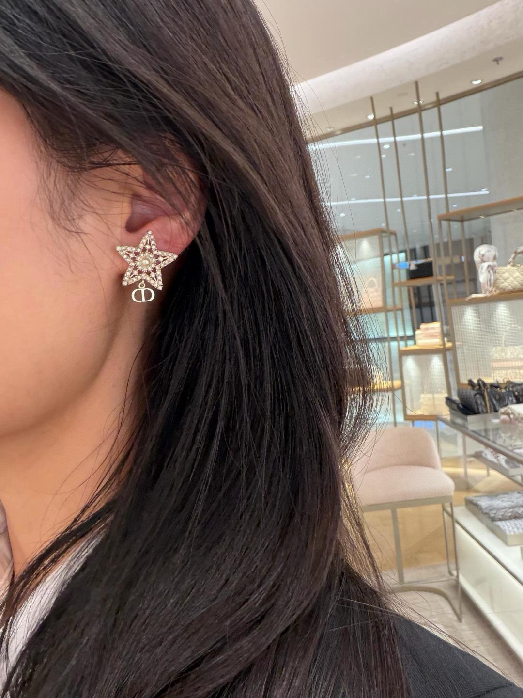 2026早春新品 D家 滿鑽鏤空星吊CD珠耳釘