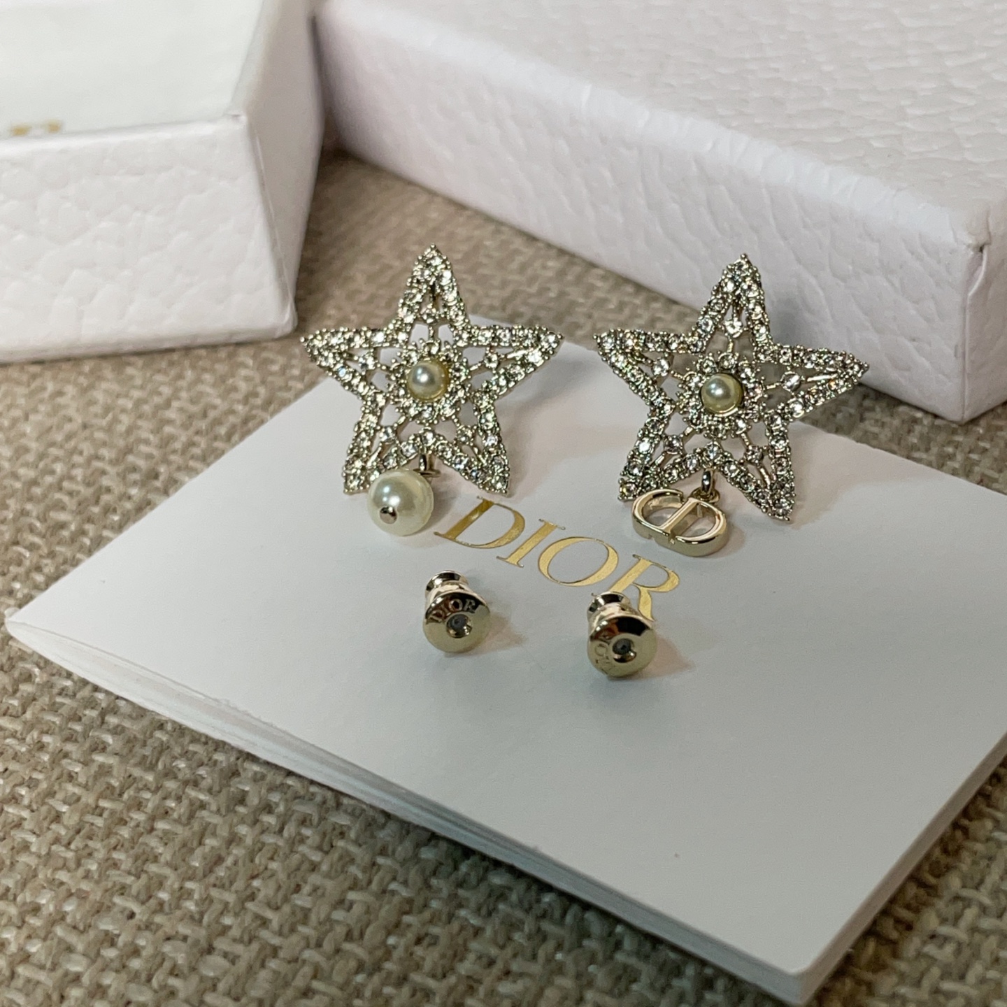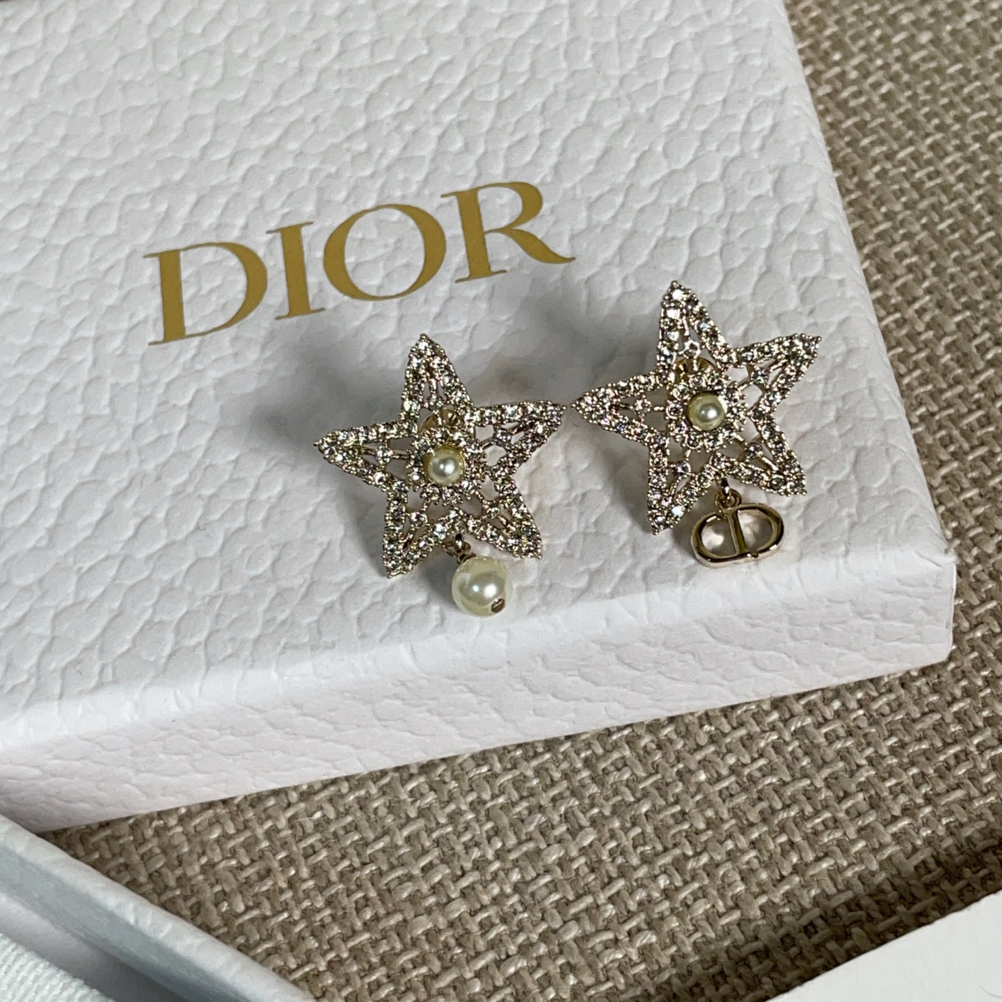 第一眼會被它的配色吸引——柔和的淺金色調,搭配經典 CD 標誌,再加上鏤空滿鑽的五角星設計,視覺層次非常豐富。