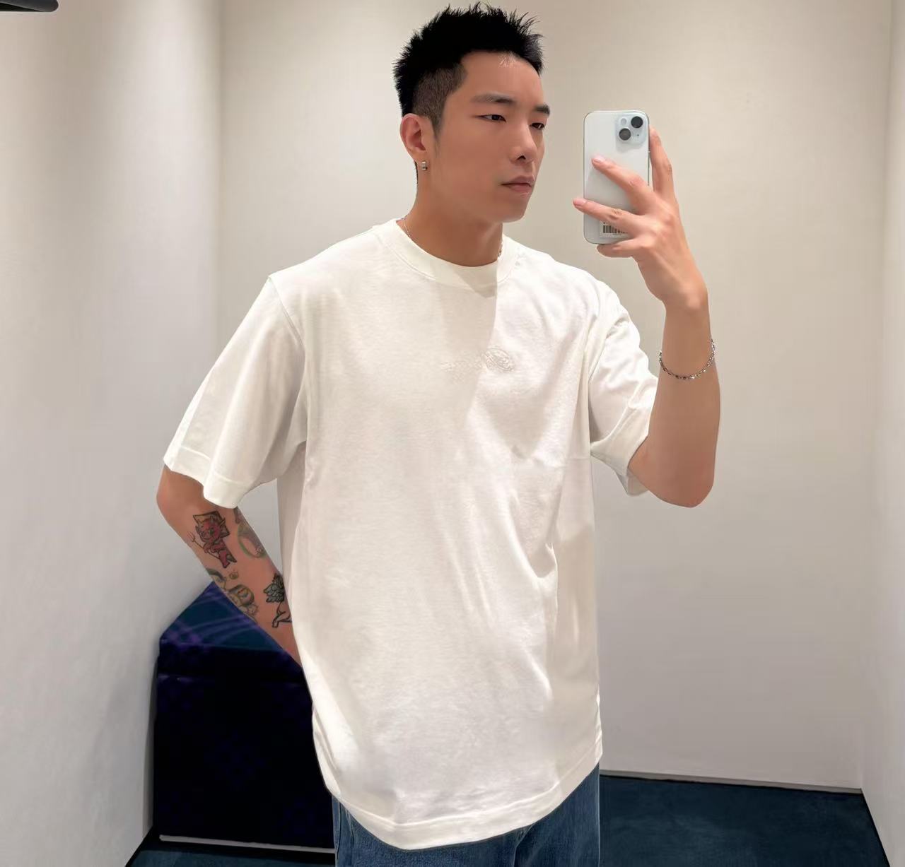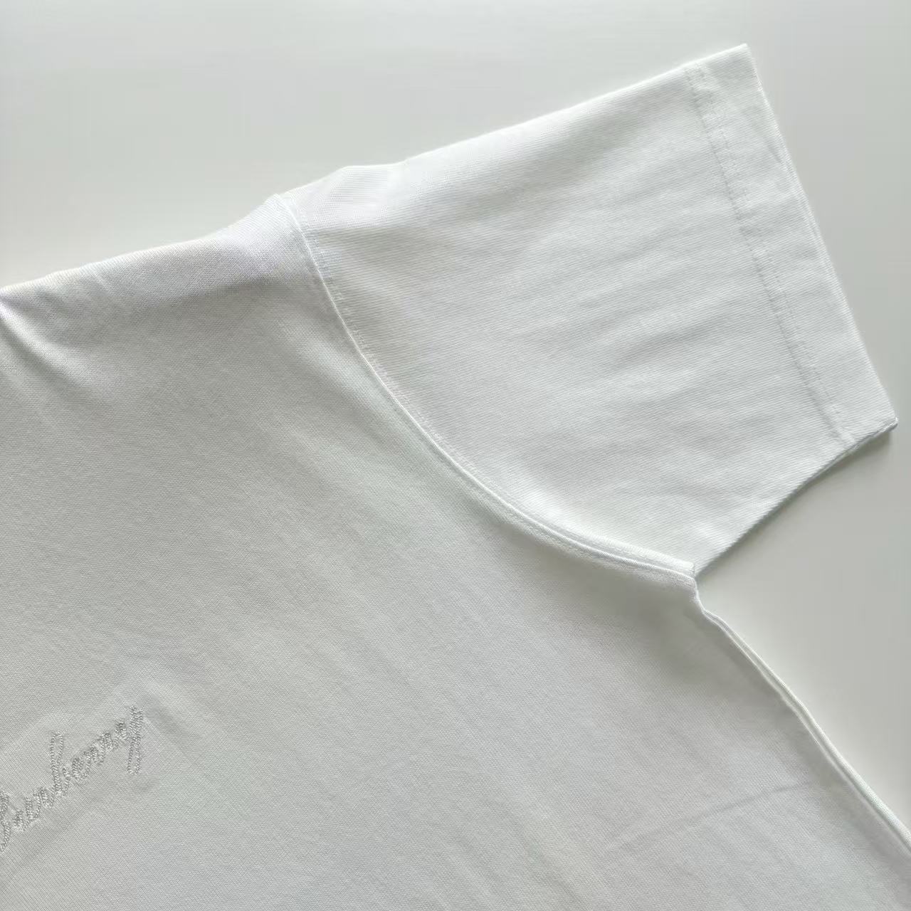 鏈式縫線刺繡:字母格紋專用鏈繡工藝,立體耐洗不掉色,展現高級T恤的持久質感。