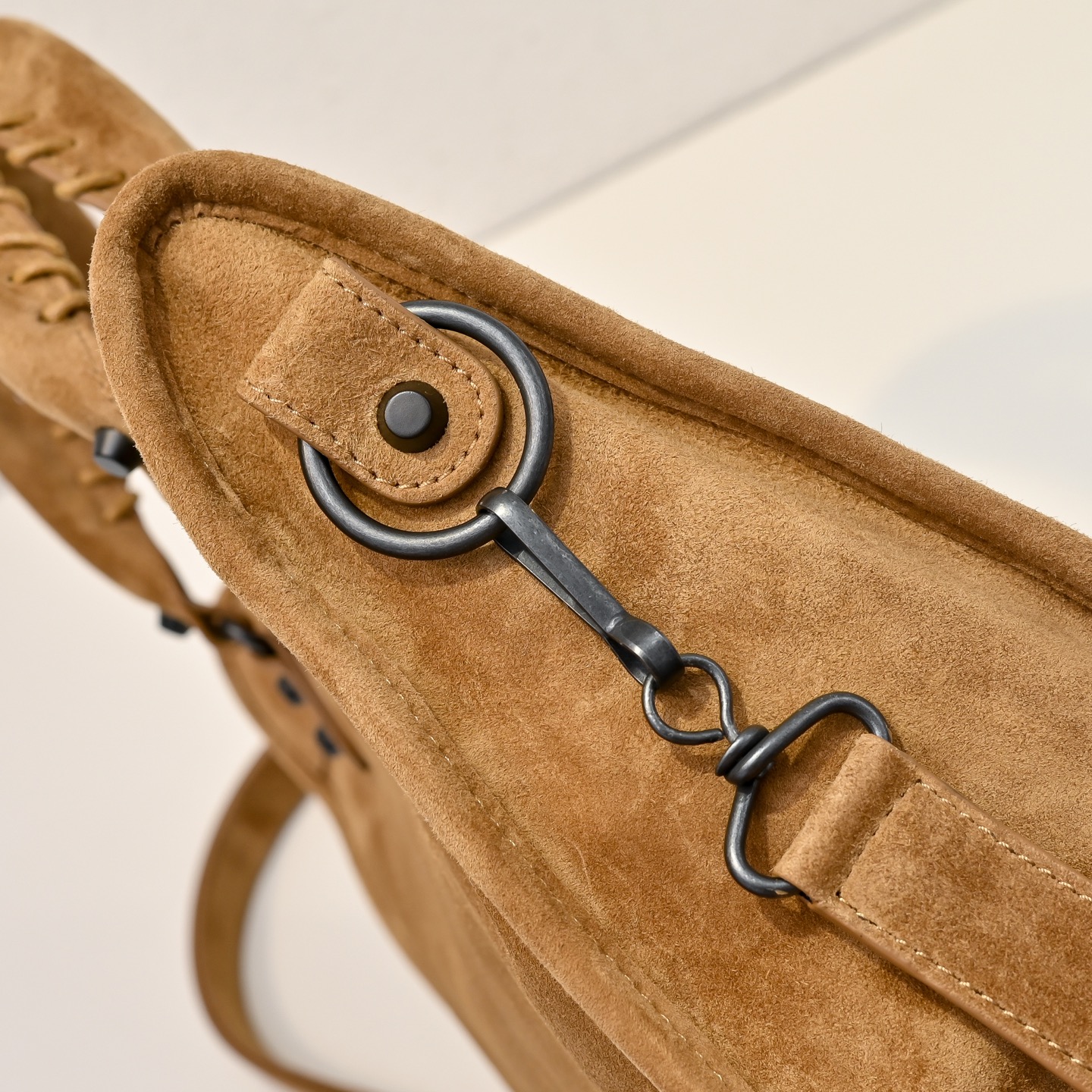 選用高級進口麂皮,手感細膩柔軟,質感高級。麂皮的表面帶有自然霧面光澤,讓整體包型更顯復古氛圍,同時也保有Blcg一貫的酷帥感。